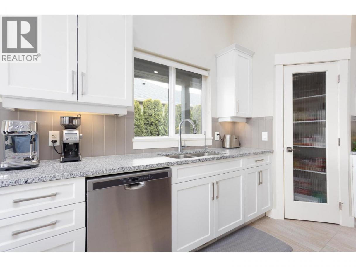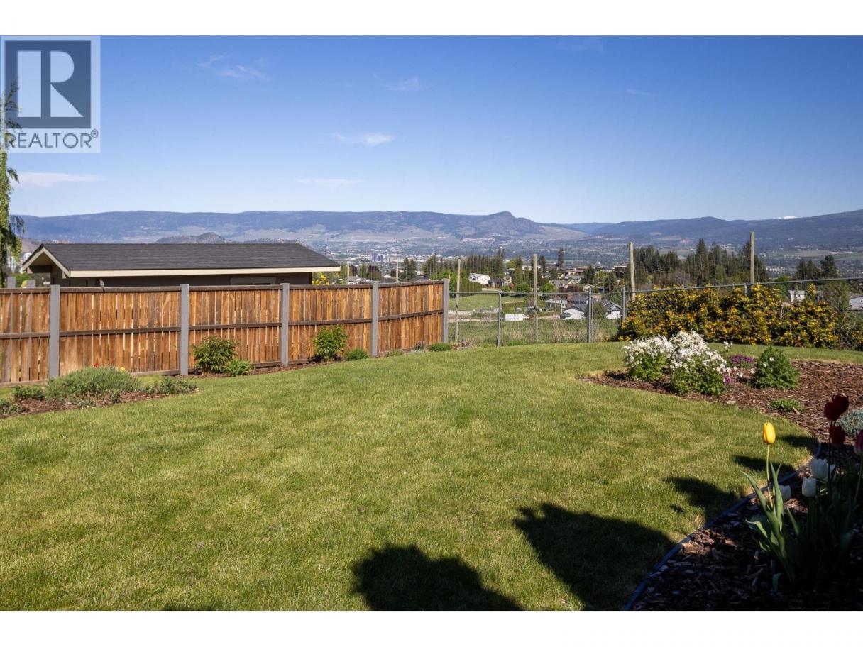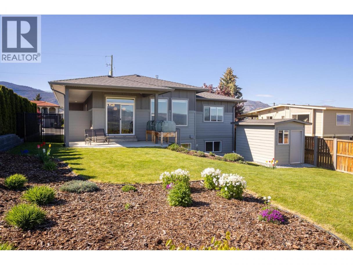 This modern home is set in peaceful Lakeview Heights with a LEGAL 2 BED SUITE mountain views and just a short walk to local vineyards and shopping! Inside you are greeted by hardwood floors and soaring ceilings that span through the open concept living space with large windows and 3-sided gas fireplace. The kitchen has been thoughtfully designed with granite counters, underlit soft close cabinets, walk-in pantry and is plumbed for a gas range. The main level is home to 3 spacious bedrooms including the primary suite with walk in closet and a 5-piece ensuite bath featuring quartz dual sink vanity + tile surround tub/shower combo. Convenient main floor laundry tucked away in the mud room leading to the double garage with built-in vac. Walk straight out to the covered patio with natural gas and continues to the fully fenced, private yard that backs agricultural land. Includes large shed for extra storage! Downstairs you’ll find a 4th bedroom, large unfinished storage area and another 3-piece bathroom with quartz countertops to match both main floor baths. The 2 bed, 1 bath legal suite has it's own yard and no access to your backyard. It's been finished with extra insulation & SONOpan for sound proofing, separate: electrical panel & hot water. The bright above ground windows, gas fireplace & entry closet are welcome additions. Home was finished with ethernet in all rooms, hi-eff furnace with built in air purifier + cost saving HRV, new driveway extension and 2 security cameras. (id:6769)