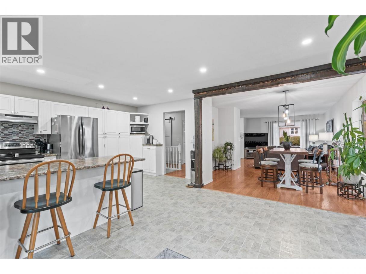 This stunning rancher in a prime, quiet neighbourhood is move-in ready with incredible flexibility! This home is a short drive to Okanagan Lake, world class golfing and all city amenities. Main floor boasts 3 spacious bedrooms and 2 full baths. Downstairs features a 4th bedroom with walk-in closet plus half bath. A bright 1-bed+den in-law suite with full bath, walk-in closet, private laundry, separate entrance, garden boxes & patio—perfect for extended family or rental income! With minor tweaks, combine the 4th bedroom to create a 2-bed, 1.5-bath suite. Entertain on the expansive covered deck overlooking your fully landscaped, fenced backyard with garden shed. RV/boat enthusiasts rejoice—dedicated parking with 30 amp/115V hookup plus double garage! Loaded with upgrades: modern appliances, cozy gas fireplace, renovated bathroom & more. This is flexible living at its finest! (id:6769)