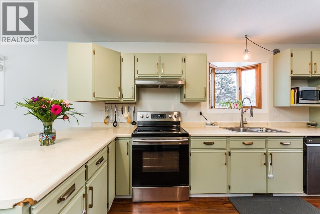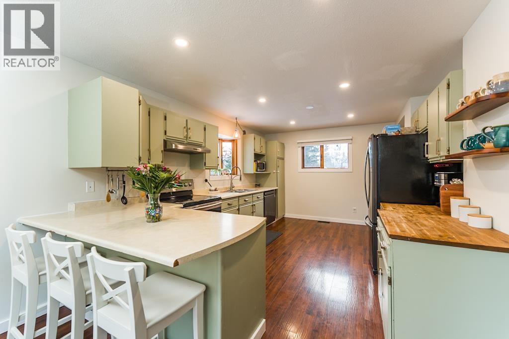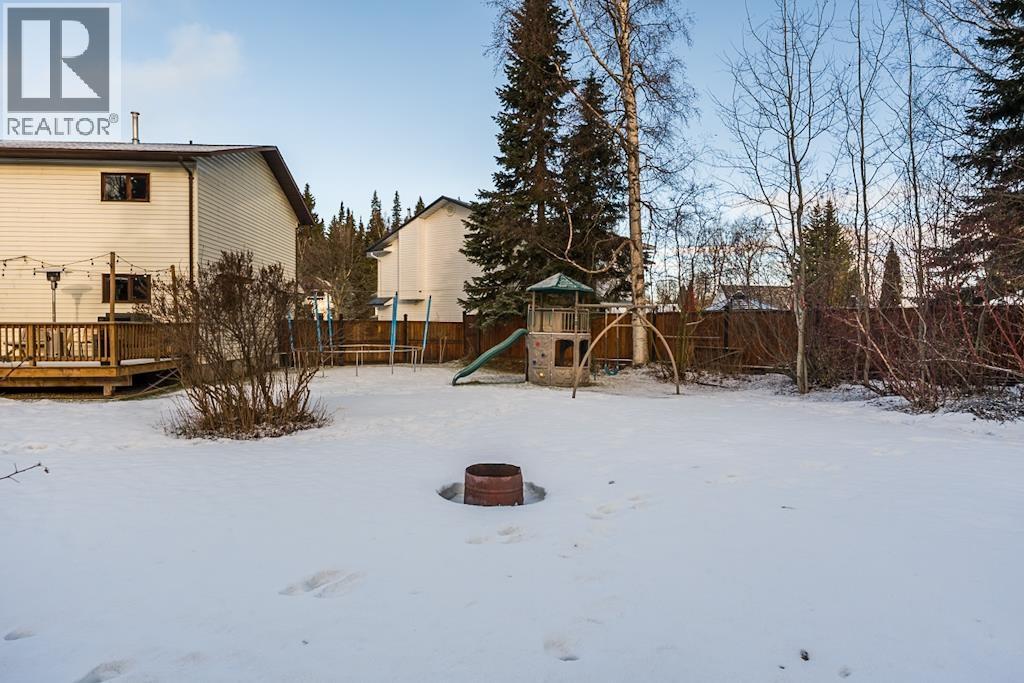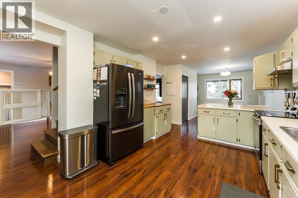 Spacious six-bedroom, three-bathroom home situated on a quiet cul-de-sac on a rare 0.32-acre pie-shaped lot. Enjoy privacy and greenery with mature apple trees, a large fully fenced yard with backyard access, and an extra-large deck—perfect for entertaining or relaxing outdoors. Bright open-concept kitchen with eating area, plus a separate formal dining room. The generous layout offers flexible living space for growing families, home offices, or guests, all in a peaceful neighborhood setting. Large two-bay garage with nine-foot doors offers excellent storage, along with an additional storage shed. Ideal family home within walking distance to the Hart shopping center. All measurements are approximate, buyer to verify if deemed important. (id:6769)