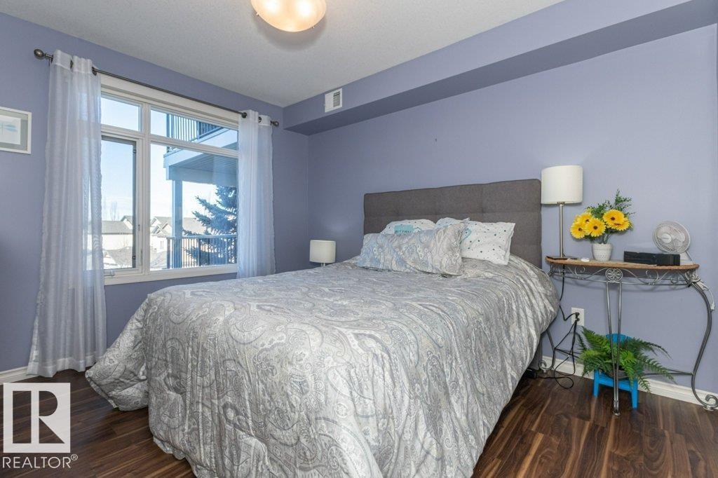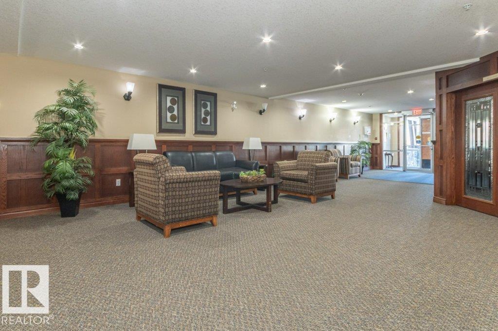Welcome to Glastonbury Village, an established adult living (18+) community conveniently located on Edmonton’s west side steps from public transportation, parks, trails, shopping and more! The building welcomes you with a grand foyer that leads to the social room on the main level, and up the curved stairs to the guest suite + fitness room on the 2nd level. This updated and loved home feat. a very desirable 2 bdrm PLUS den layout! Home features include an open plan w/updated vinyl plank floors, warm colours, and renovated kitchen w/newer SS appl. (inc. full-size fridge), updated cabinets, stone counters + tile backsplash. There are 2 bdrms that are a very nice size, with the master suite featuring his + her closets and a 3pc ensuite w/large walk-in shower. Completing the plan is a spacious living/dining area w/corner gas F/P, den/office + laundry/storage room. West facing balcony with sunset and community views. Home comes with A/C, 1 titled U/G parking stall and storage cage. Well managed building. (id:6769)