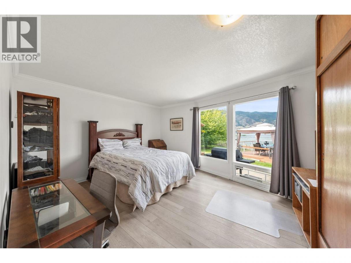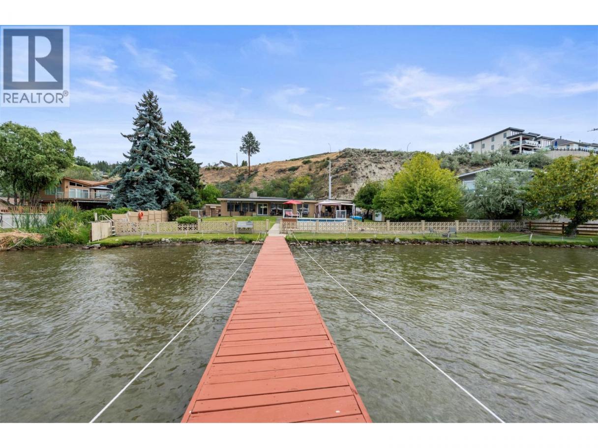 One of a kind massive nearly half Acre waterfront lot zoned R4-L Small-Scale Multi-Unit Residential - Large on exclusive Skaha Lake with approx 123' of waterfront and a dock! This west facing lot is flat, serviced with underground lines, and in the perfect location which is close enough to walk to a waterfront park, public beach, marina, dining, and just far enough away to get away from it all. The 2389 sq ft mid century modern rancher is updated and has 11' vaulted ceilings in the spacious kitchen, massive windows bringing in all the natural light you crave and panoramic lake/mountain/beach views from nearly every room. You will love the private patio courtyard in the front and covered deck with bbq station in the back. There is suite/income potential as primary bedroom has its own wet bar with plenty of space, ensuite, sitting area, separate entrance, and covered deck with lake view. There is ample parking whatever your needs on this beautiful large lot and a detached triple car garage for all your toys, it has development/subdivision potential and a foreshore permit with the potential to extend the current dock to a 120' dock! Secure, gated access, fully fenced, move in ready, perfect for any developer or those looking for a generational or long term holding property. One of the last large waterfront lots left and in one of the most desirable locations in the South Okanagan, this is your chance! (id:6769)