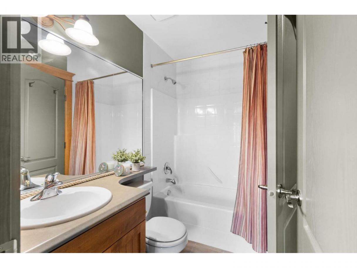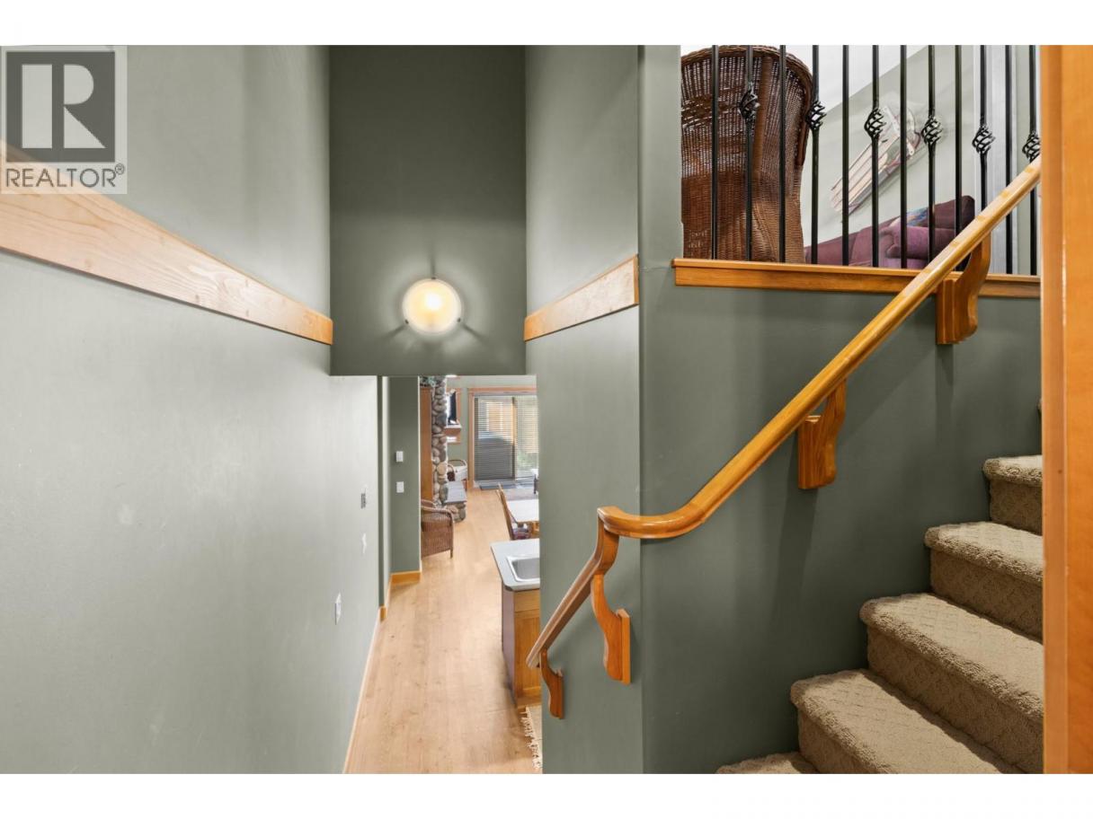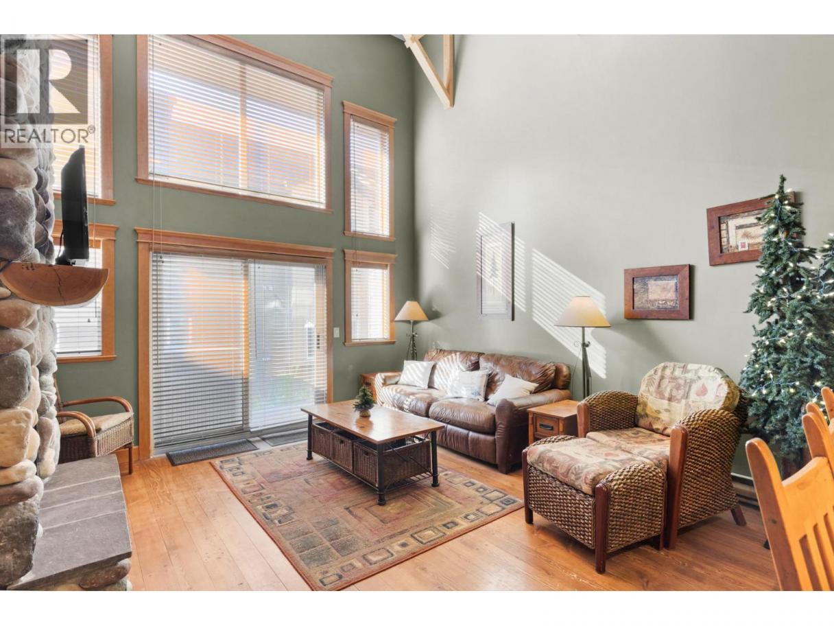 Welcome to Tree Tops, one of Big White’s most sought-after developments offering true ski-in/ski-out convenience via the Mogul Cat Track. This 2 Bed/3 Bath townhome combines mountain charm with modern comfort, making it the perfect getaway for family, friends, or rental guests. Step inside to an airy, open-concept layout highlighted by soaring ceilings & abundance of natural light. The main living area features a stunning floor-to-ceiling river-rock fireplace surrounded by custom built-ins—the ideal centerpiece for cozy evenings after a day on the slopes. Just off the living room, you’ll find your private hot tub, a perfect spot to unwind under the stars. The large kitchen is designed for entertaining with shaker cabinetry, a sit-up island, and plenty of prep space. A versatile loft overlooks the living area, providing a fun hangout for kids and includes a sofa bed for extra sleeping accommodations. Upstairs, both bedrooms offer private ensuites, while one also includes a flex/den space that can easily be used as an additional sleeping area. With a variety of flexible layouts, this home is well-suited to host multiple families or groups. The timeless design blends rich tones, wood accents, & a cozy mountain feel throughout. Additional conveniences include a covered parking stall directly across from the unit & two storage lockers-one for owners and one for guests. This turnkey property is equally perfect as your personal mountain retreat or a high-demand rental investment! (id:6769)