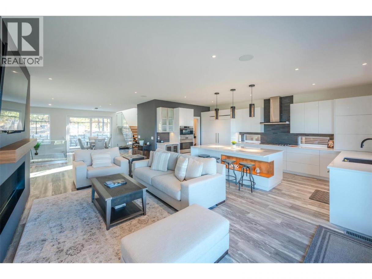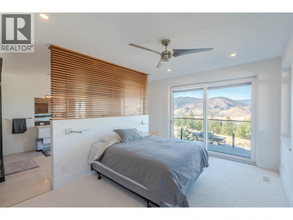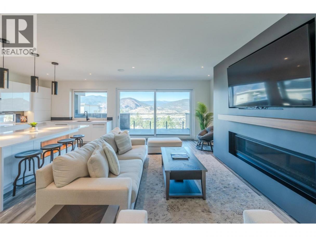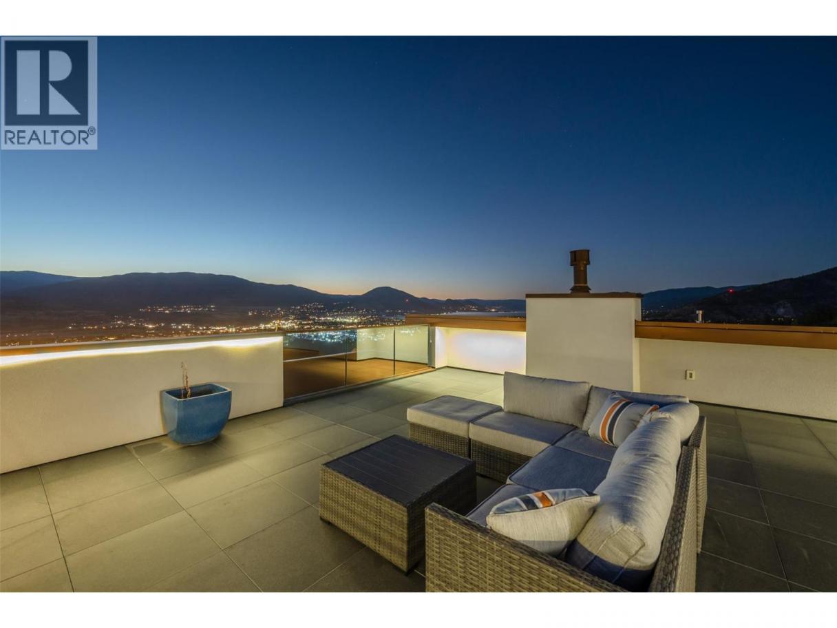 Welcome to this stunning high-end contemporary home perched above Penticton in one of the city’s most exclusive neighborhoods, with hiking and biking trails steps away and downtown Penticton minutes from your door. Designed for luxury living and entertaining, this 4,081 sq ft masterpiece features 10’ ceilings, sleek architectural lines, and panoramic lake and valley views from nearly every room. Inside, the open-concept layout seamlessly connects the living, dining, and kitchen areas, accentuated by floating stairs, an elegant electric fireplace, and walls of windows that flood the home with natural light. The chef- inspired kitchen boasts a large island, high-end appliances, and a full butler’s pantry. The luxurious primary suite offers a spa-like ensuite with deep soaker tub, walk-in shower, and large walk-in closet with lake and city views. The main floor also includes a guest bed and 4-piece bath. The lower levels feature a guest bed, 4 pce bath, private gym, second living room with a walkout patio, and an expansive games room for the kids to play or man cave! Ample storage, wired security, large mud/laundry room and a spacious 24’ x 28’3” garage for all the toys. Outside, the showpiece 25’ x 29’ rooftop deck offers a breathtaking backdrop for evening cocktails or sunset gatherings, while the backyard oasis features an in-ground heated pool, artificial grass, and gorgeous low-maintenance landscaping completing this remarkable home! A true testament of luxury living. (id:6769)