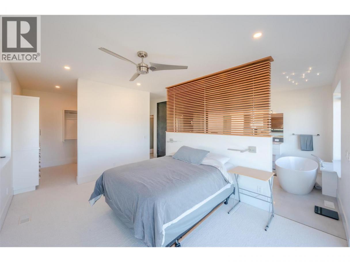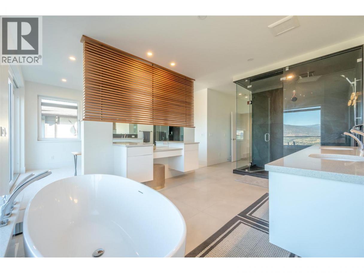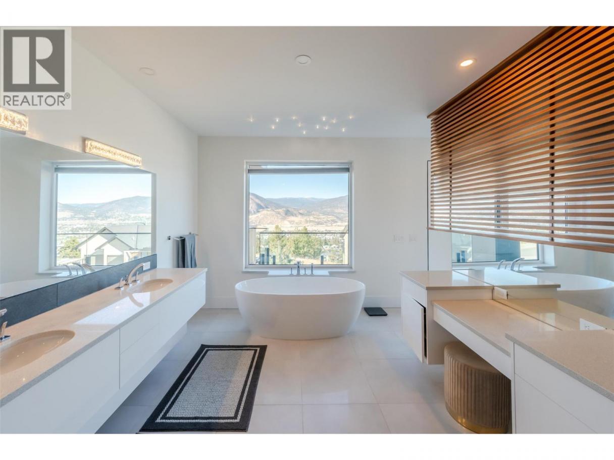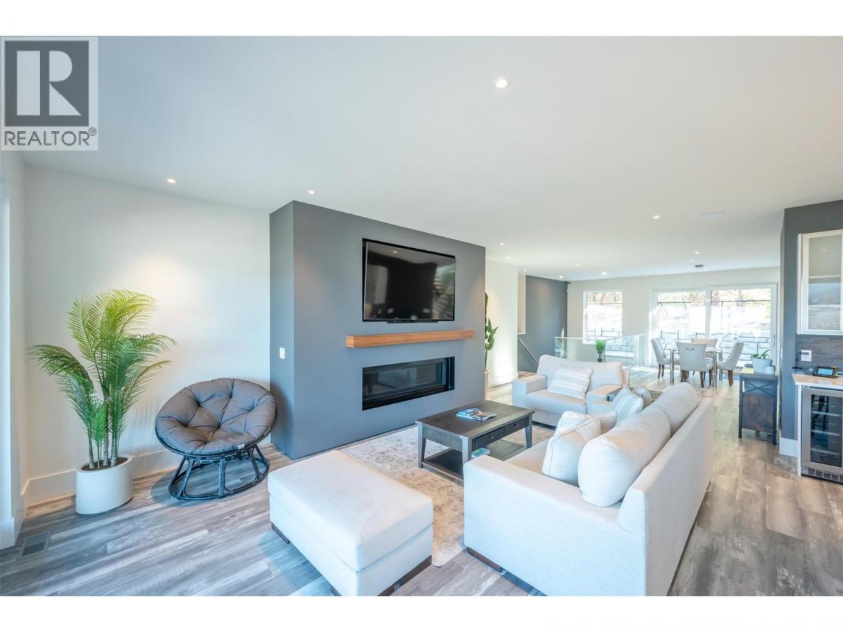 Welcome to this stunning high-end contemporary home perched above Penticton in one of the city’s most exclusive neighborhoods, with hiking and biking trails steps away and downtown Penticton minutes from your door. Designed for luxury living and entertaining, this 4,081 sq ft masterpiece features 10’ ceilings, sleek architectural lines, and panoramic lake and valley views from nearly every room. Inside, the open-concept layout seamlessly connects the living, dining, and kitchen areas, accentuated by floating stairs, an elegant electric fireplace, and walls of windows that flood the home with natural light. The chef- inspired kitchen boasts a large island, high-end appliances, and a full butler’s pantry. The luxurious primary suite offers a spa-like ensuite with deep soaker tub, walk-in shower, and large walk-in closet with lake and city views. The main floor also includes a guest bed and 4-piece bath. The lower levels feature a guest bed, 4 pce bath, private gym, second living room with a walkout patio, and an expansive games room for the kids to play or man cave! Ample storage, wired security, large mud/laundry room and a spacious 24’ x 28’3” garage for all the toys. Outside, the showpiece 25’ x 29’ rooftop deck offers a breathtaking backdrop for evening cocktails or sunset gatherings, while the backyard oasis features an in-ground heated pool, artificial grass, and gorgeous low-maintenance landscaping completing this remarkable home! A true testament of luxury living. (id:6769)