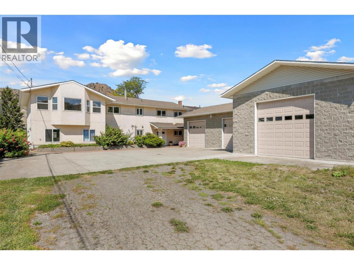 Stunning 3/4 acre South Thompson riverfront property with a spacious home, huge oversized 3-car garage, and subdivision potential. The private driveway is lined with grassy space, fruit trees, and room for development—new build, carriage house? (See City of Kamloops). Inside, a large foyer welcomes you, with an office perfect for a home-based business. Upstairs, the main living space offers breathtaking unobstructed river and mountain views from the living and dining rooms. Hardwood and tile flow through the open plan. Step onto the massive deck leading to the expansive grassy yard—ideal for a pool or landscaping. A secondary deck is off the dining room. The large kitchen boasts a huge island and ample cabinetry. The main floor also includes a 4-piece bath, den (possible 3rd bedroom), and two large bedrooms with ensuites. The primary bedroom features stunning river views. Downstairs offers great potential with a summer kitchen off the foyer, a family room, bedroom, and 2-piece bath. French doors open to unfinished space, ideal for a 2-bedroom suite with separate entry, roughed-in plumbing, and framed bedrooms. The massive heated shop is a mechanic’s dream—three large bays, with the third long enough for an RV/boat. Shop measures 32’8 x 64’9 plus an additional 17’9 x 27’2 storage/garage, offering space for 4+ vehicles. So much potential—bring your ideas! (id:6769)