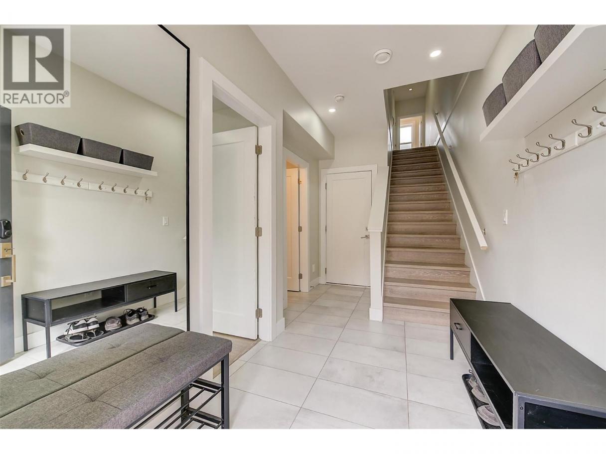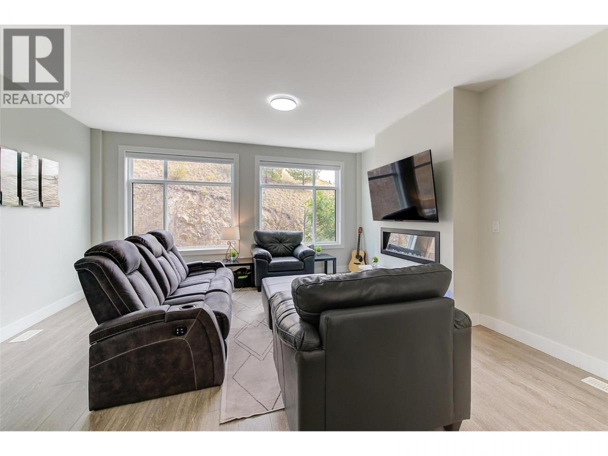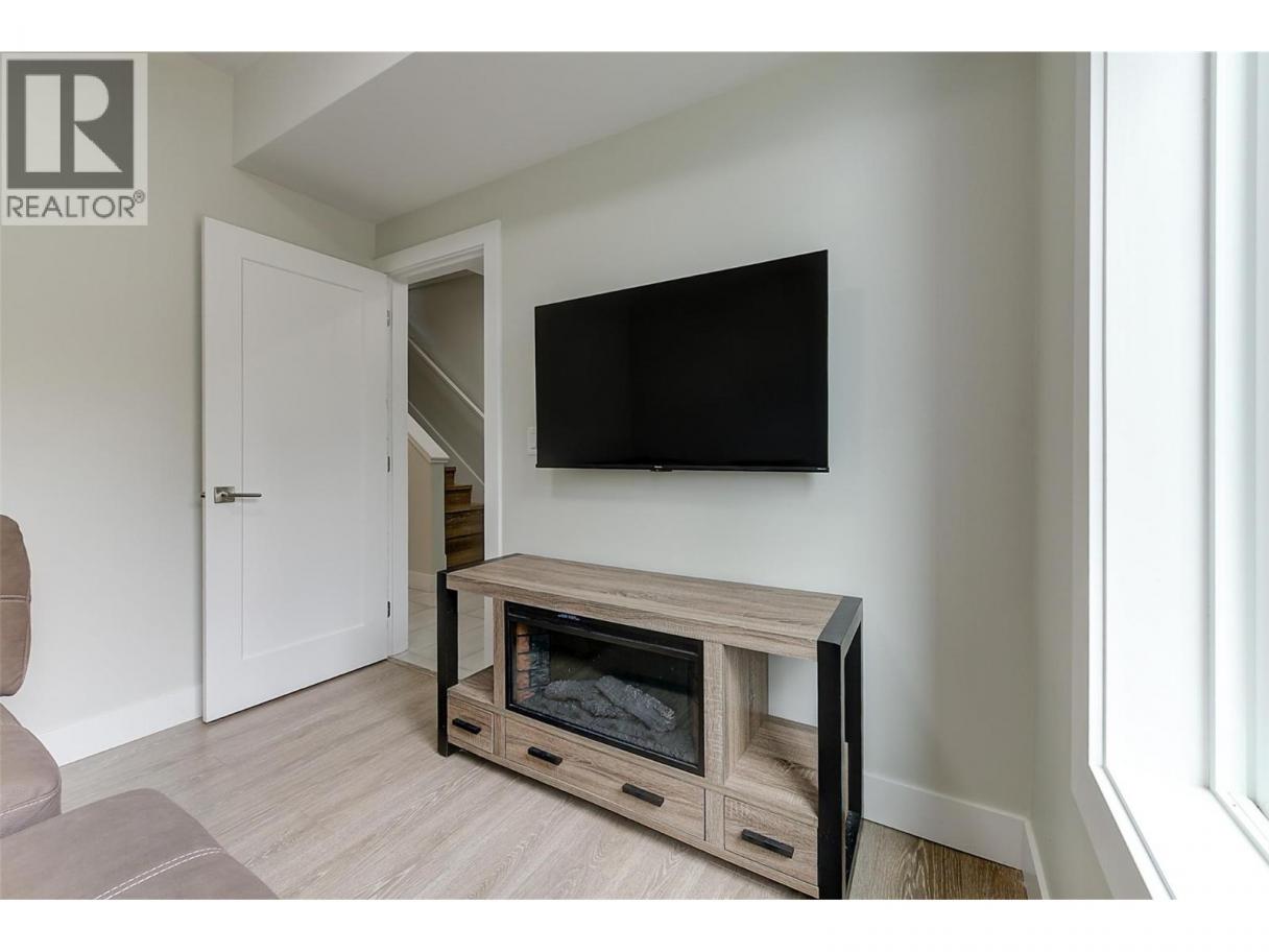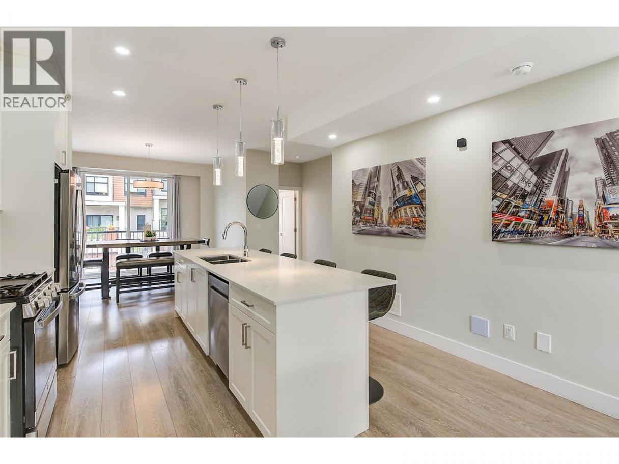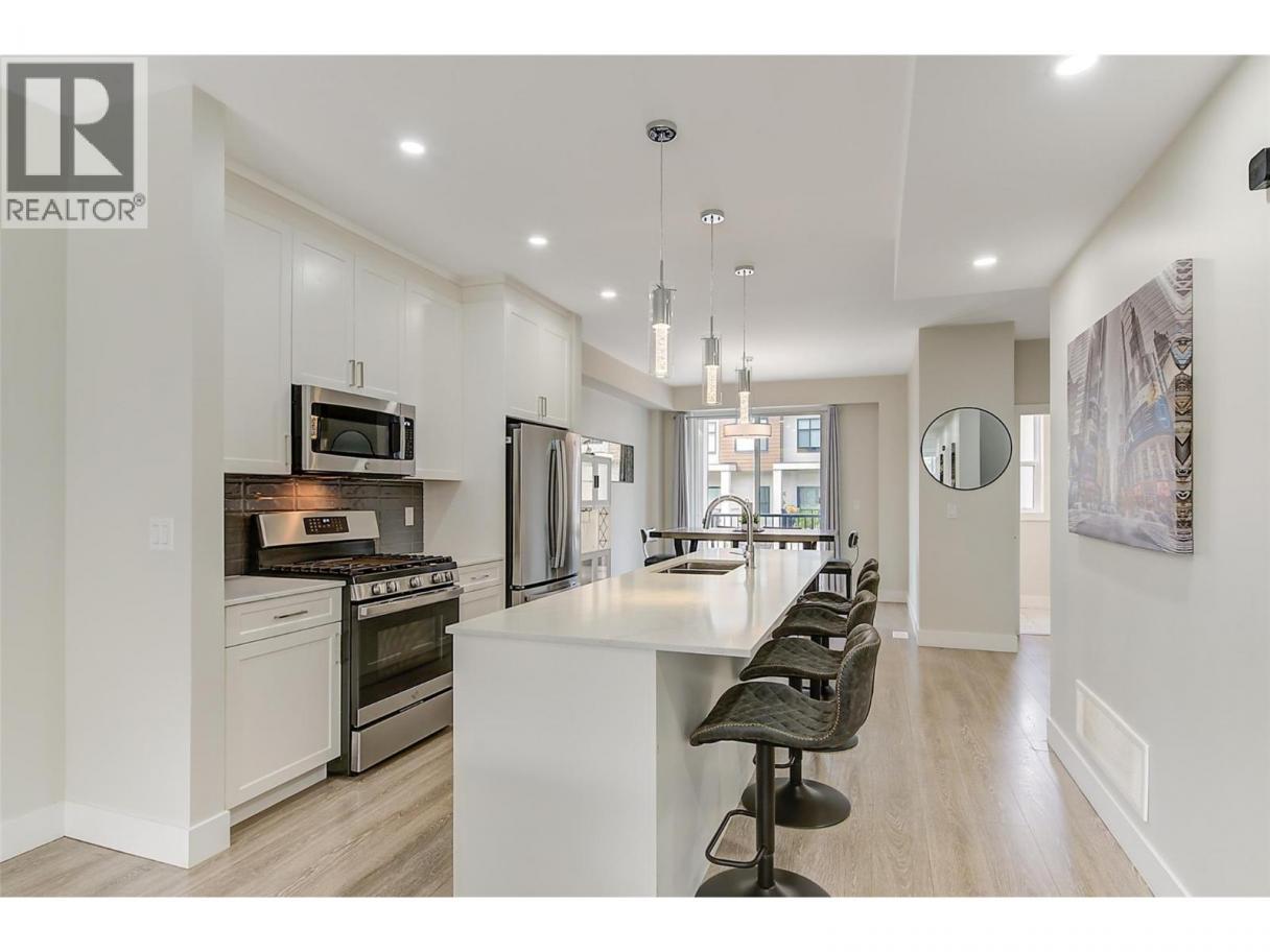3 storey townhome just seconds from Black Mountain Golf Club, offering space, style, and a family friendly layout that feels easy to live in. Laminate flooring runs throughout, creating a bright and cohesive look across all levels. The main floor is open and inviting, designed for everyday living and effortless entertaining. The kitchen is both stylish and practical with stainless steel appliances, a gas stove, and an oversized island that makes cooking and gathering feel natural. Upstairs, the primary bedroom offers generous space, a walk in closet, and a private ensuite. Two additional bedrooms, a full bathroom, and convenient laundry complete the upper level. A fourth bedroom and additional bathroom on the entry level provide flexibility for guests, home office use, or growing families. The large single car garage has new epoxy flooring, adding durability and a polished finish. Centrally located approximately 15 minutes to downtown Kelowna, 15 minutes to the airport, and 30 minutes to Big White Ski Resort. Minutes from the local elementary school and steps to hiking trails and the golf course, this is a location that balances everyday convenience with outdoor living. (id:6769)