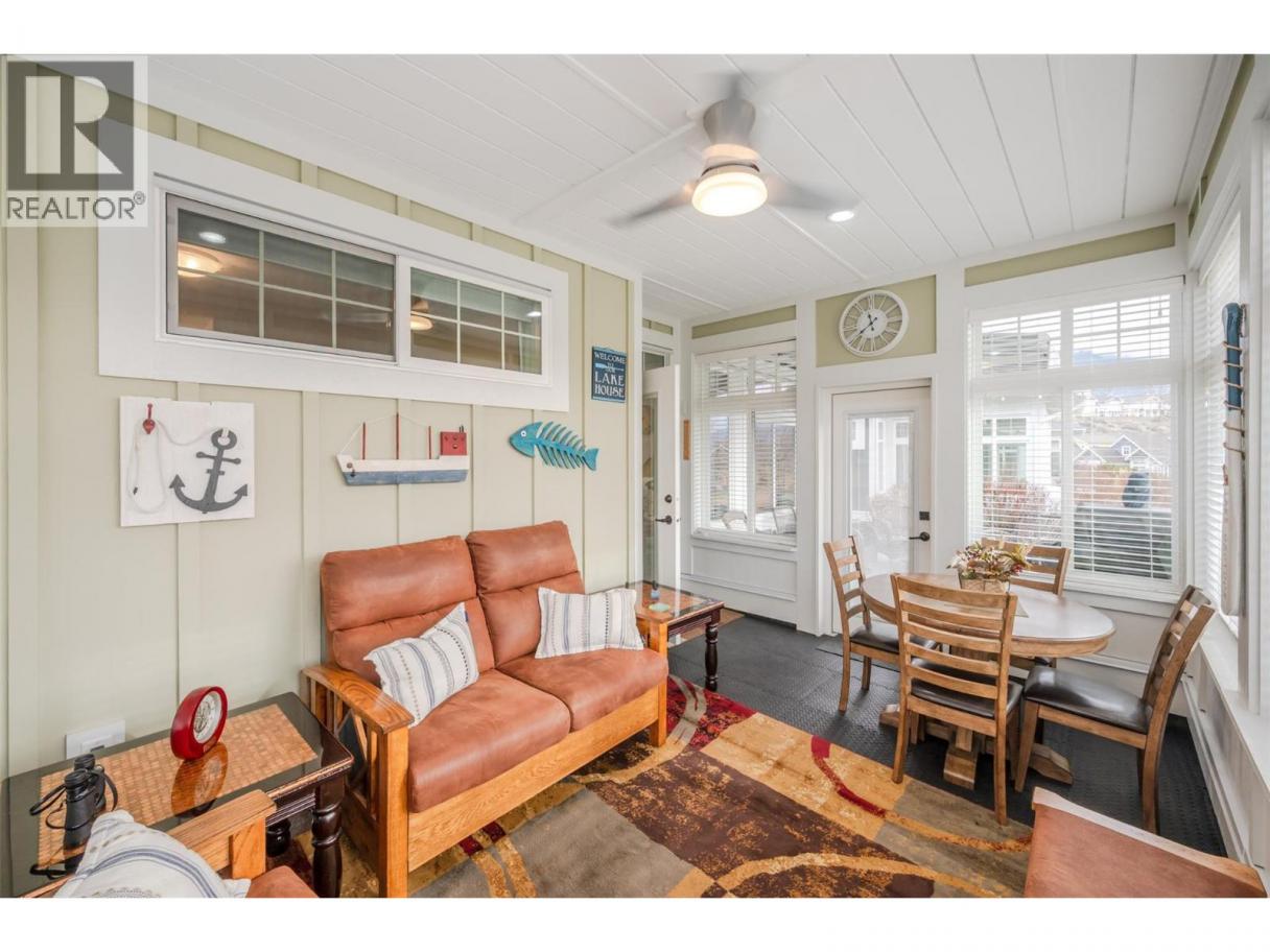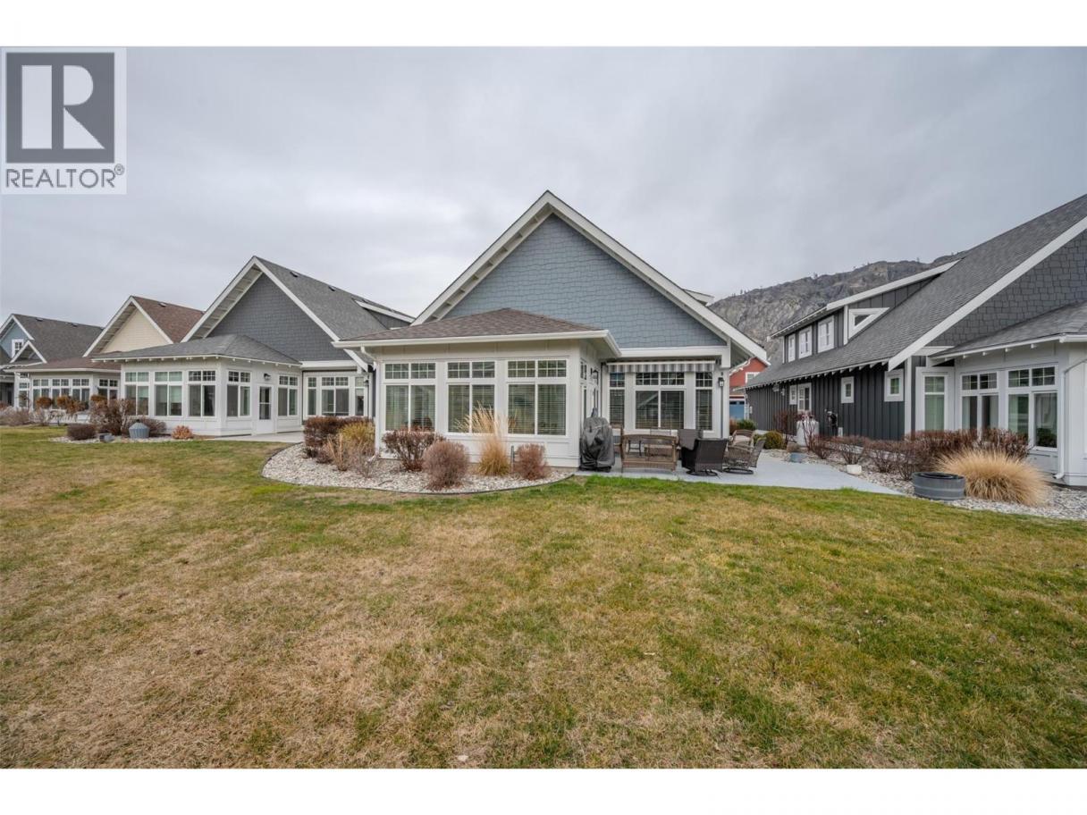 This unique customized ""Burgundy"" floor plan IS UNBELIEVABLE VALUE FOR WHAT'S INCLUDED! It features 3 bedrooms, and 3 bathrooms with a central location near clubhouse, dog park, playground and beachfront. Numerous upgrades include custom pantry in the kitchen, quartz countertop, upgraded appliances, electric fireplace, extra insulation, water softener and large walk thru Mud Room/ Laundry Room that leads into the garage. The garage has been specially designed with bonus storage room, extra man door to outside, Epoxy floor coating and muck sink, baseboard heating and plenty of room to park 2 cars in the driveway. Additional upgrades include 3 season insulated porch with windows and blinds, eavestroughs, retractable patio awning and fabulous south facing backyard that backs onto dog park. This home is being sold with most of the FURNITURE AND HOUSEWARES AND INCLUDES 23' BOAT SLIP AND GOLF CAR!! The Cottages on Osoyoos Lake is a rare find with its lovely walking trails, kids playgrounds, large clubhouse, pools, hot tubs , off-leash dog area, and 500 ft of sandy beach all while in a secure and gated community. Make this your FOREVER HOME, SUMMER GET AWAY OR INCOME INVESTMENT PROPERTY. SHORT TERM RENTALS ALLOWED 5 days or longer. NO GST, NO PTT, NO EMPTY HOMES TAX, PREPAID LEASE. (id:6769)