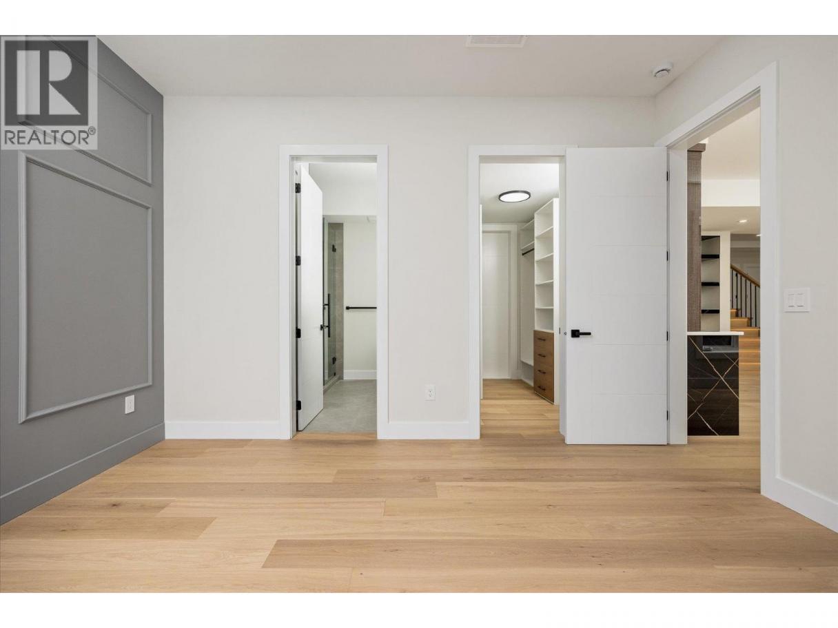 Welcome to this extraordinary brand-new 2026-built luxury residence by Empirical Homes, offering breathtaking mountain views and an uncompromising blend of opulence, innovation, and thoughtful design. This expansive eight-bedroom, six-bathroom estate is perfectly suited for large families, multi-generational living, or those seeking income potential, featuring a fully legal two-bedroom, one-bathroom suite with separate entrance and private laundry, plus a convenient interior access door allowing the main home to incorporate the suite if desired. Inside, dramatic black marble accents, hardwood flooring, custom recessed lighting throughout, and built-in features elevate every space, including custom illuminated closet shelving, designer fireplaces, a sophisticated wet bar, integrated speaker system, and a comprehensive video security system. Custom feature walls enhance the bedrooms, while the custom-designed cabinetry in all bathrooms and the spice kitchen reflect exceptional luxury craftsmanship. Beneath the suspended slab garage, a fully outfitted blackout media room with built-in accent lighting creates the ultimate private theatre experience. The primary suite offers a true sanctuary with a massive custom-lit walk-in closet and a spa-inspired ensuite complete with a soaker tub, glass-encased shower, dual vanities, radiant heated flooring, and a heated towel holder. Completing the package is a three-car garage with epoxy flooring. Blending bold modern elegance with high-end craftsmanship and panoramic surroundings, this stunning Black Mountain home delivers luxury living at its finest. Book a showing to see the extensive upgrade list in person. GST applicable. (id:6769)