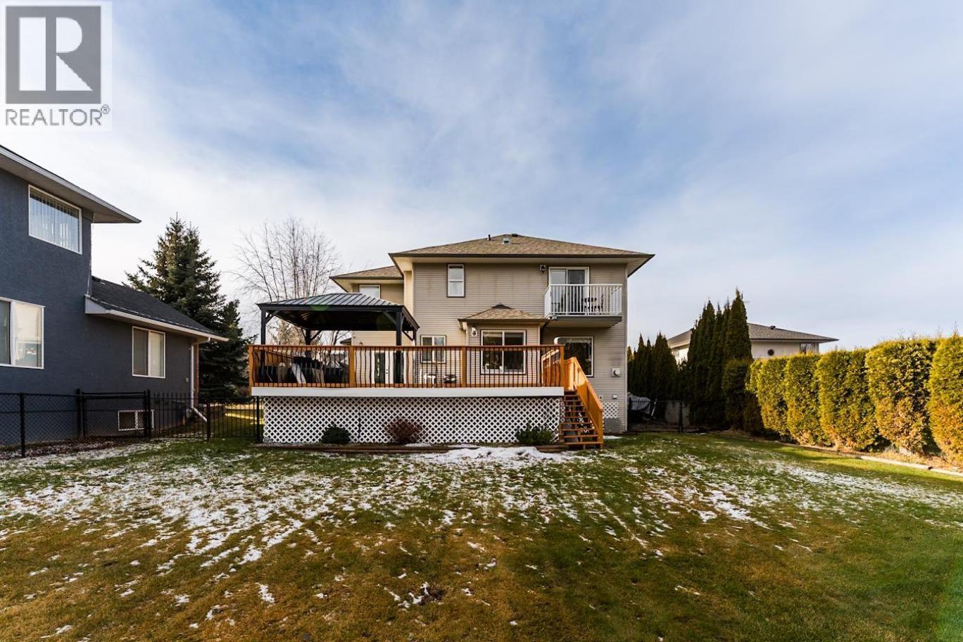 Located in the desirable Westgate subdivision and backing onto a greenbelt, this Craftsman-inspired two-storey home with basement offers nearly 3,000 sq ft of well-designed living space on a quarter-acre lot. The main floor features large windows, an updated kitchen with custom quartz island, pullouts in every cupboard, stainless steel appliances, and a dining area with garden doors. The great room and living room provide welcoming spaces for everyday living and entertaining. Upstairs offers four bedrooms on one level, including a Primary suite with walk-in closet and full four-piece ensuite with soaker tub. An east-facing balcony off the Primary overlooks the backyard and greenbelt, while a covered front balcony captures the evening sun. The fully finished basement includes a large family/rec room, office, and hobby room. The fenced yard features a deck, fixed gazebo, hot tub wiring, double garage, oversized driveway, and backyard access for RV or boat parking. Close to parks, trails, schools, and shopping. (id:6769)