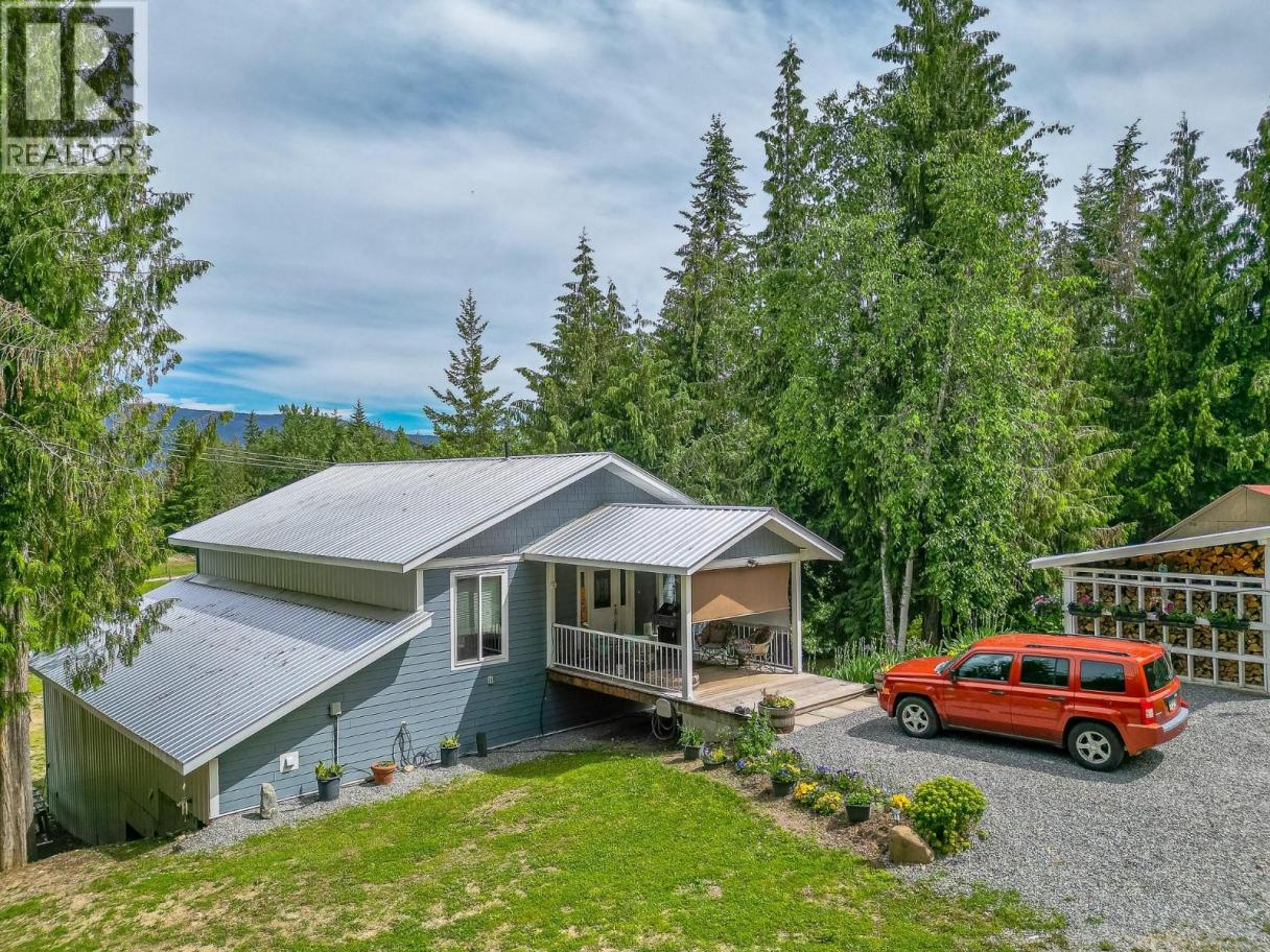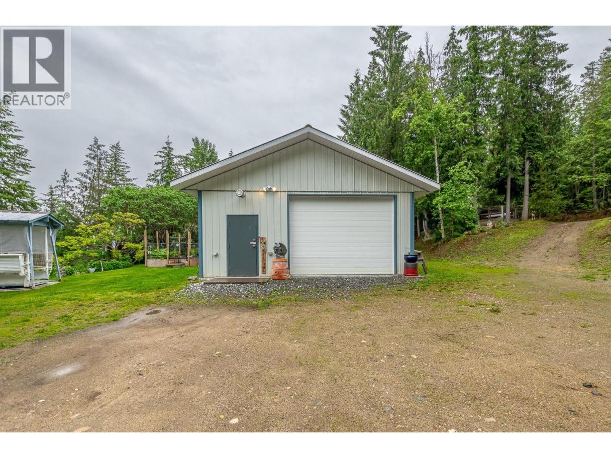 2 HOMES! 2 SHOPS! FULLY FENCED! 30 GPM WELL! Discover the perfect blend of privacy, versatility, and rural charm on this fully fenced and gated 5-acre property in the desirable Gardom Lake area, featuring two separate homes and exceptional outbuildings. Just 15 minutes to either Enderby or Salmon Arm, the main 2-bedroom, 2-bathroom modular home offers a spacious sunken addition with a large living room, office, and welcoming mudroom. The beautifully renovated kitchen is a true showstopper with a massive marble island, while the cozy sunken living room with a wood-burning fireplace creates the perfect place to relax. Step outside to a stamped concrete covered patio complete with a hot tub, ideal for year-round enjoyment. Adding incredible flexibility, the oversized detached garage includes a fully self-contained 2-bedroom, 1-bathroom in-law suite above, while the garage below is a mechanic’s dream with two bays—one with a double door and the other large enough for RV storage—plus its own half bathroom. A second heated detached double garage offers a treatment room or den, generous storage, and another half bath. Additional features include a high-producing 30 GPM well, powered and watered chicken coop, raised garden beds, scenic views, and total privacy, making this an ideal country property with endless potential. (id:6769)