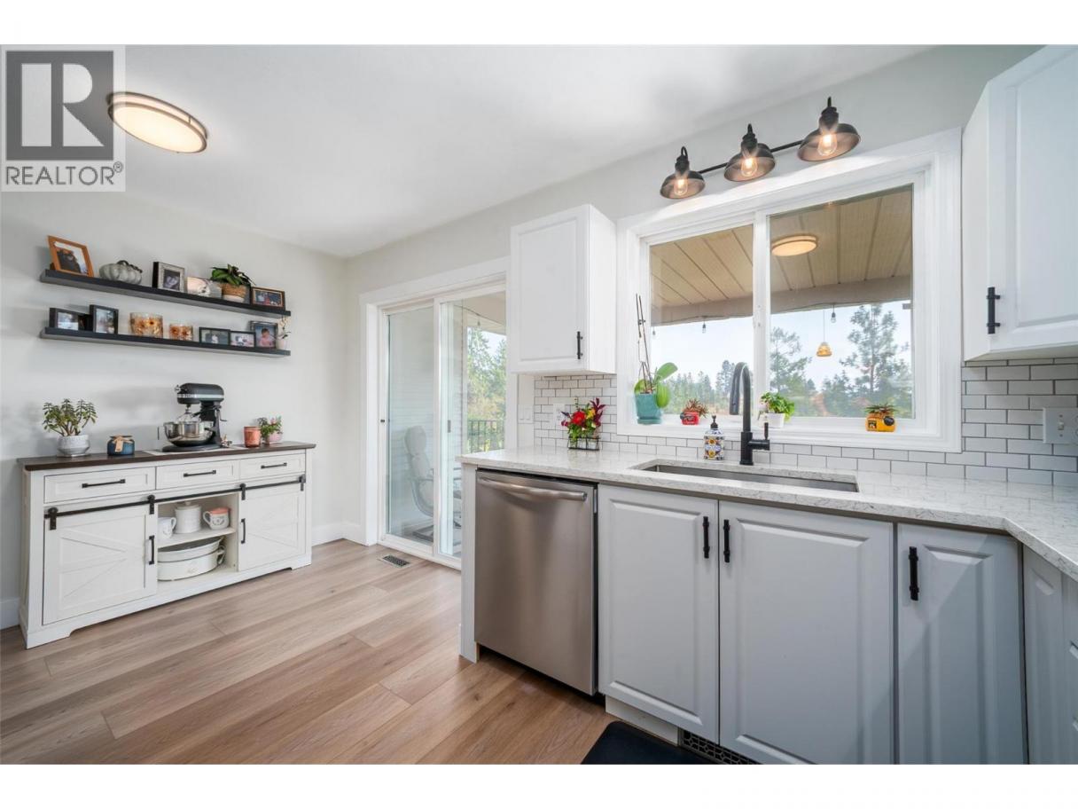 Don’t miss this beautifully renovated canyon-backing home in West Kelowna! Nestled in a peaceful community just minutes from Westbank Town Centre and the lake, this property offers the perfect balance of tranquility and convenience. Inside, you’ll find stylish updates including 9” Cortex luxury vinyl plank flooring with modern updates throughout. The spacious living area features a cozy gas fireplace, while the updated kitchen impresses with quartz countertops, tile backsplash, Frigidaire gas range, stainless steel appliances, and 2 pantries: built-in and wall. Step out from the breakfast nook onto the covered deck to enjoy the surrounding Mountain View’s overlooking the yard below. The main level is also home to two bedrooms, including a primary suite with a walk-in closet, ceiling fan, and 4-piece ensuite. The second bedroom is conveniently located next to the updated bathroom, perfect for guests. Enjoy having main floor laundry with Electrolux washer & dryer plus ample room for storage. Downstairs offers a large rec room with its own gas fireplace, an oversized bedroom, renovated 4-piece bath, gym/den/home theater room and additional storage. The private, fully fenced backyard is perfect for the kids or pets, complete with large grassed area, garden shed, covered patio and a new 6-person Jacuzzi hot tub. Enjoy unlimited hot water on demand with the tankless hot water system (2023) and stay cool in the warm Okanagan summers with central AC. (id:6769)