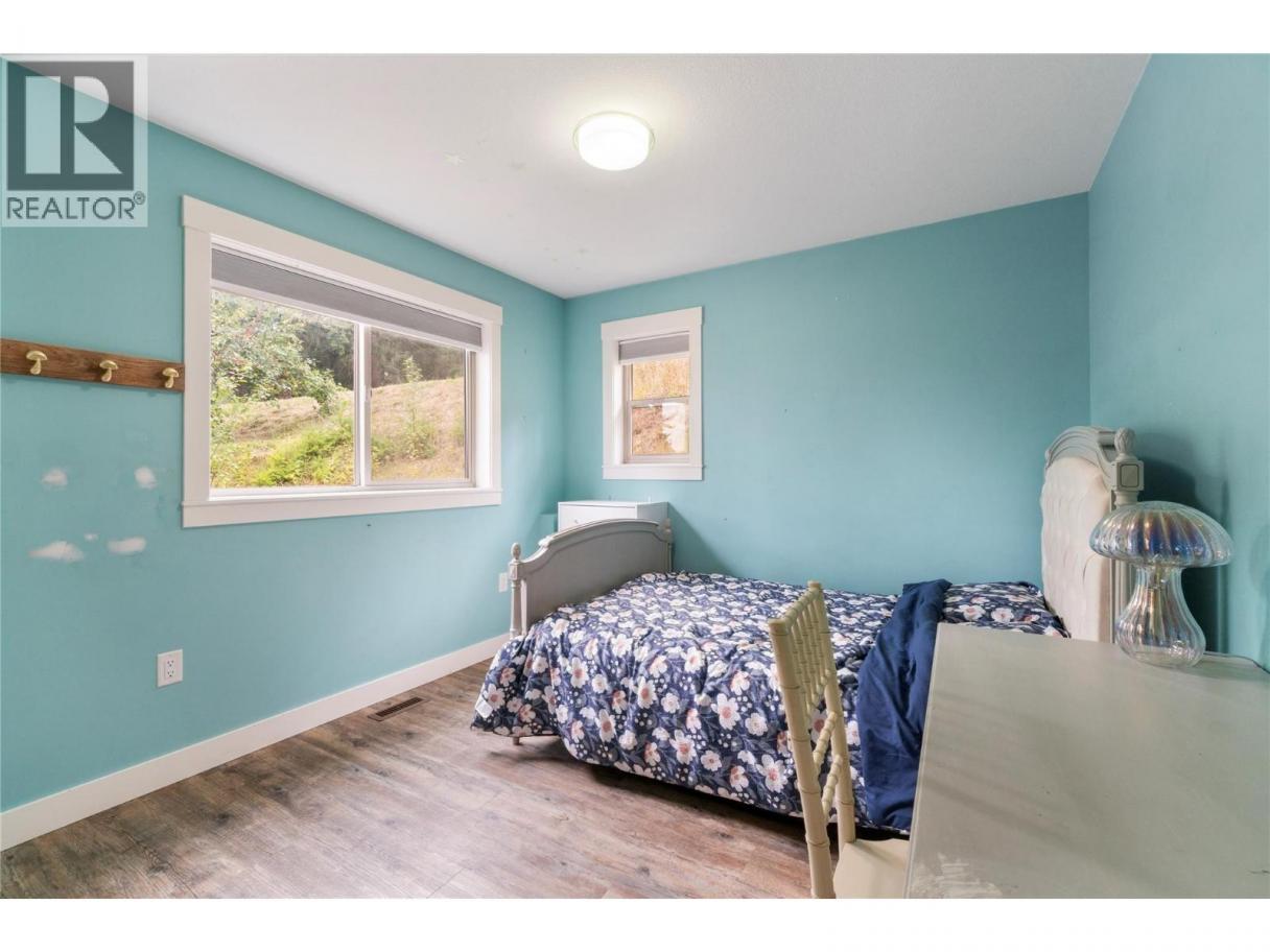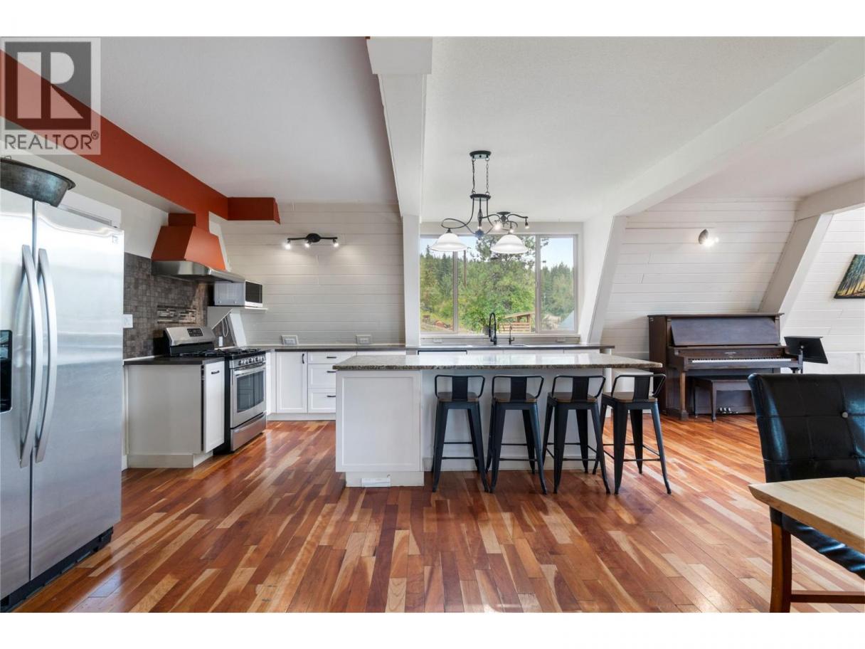 MODERN COMFORT MEETS RUSTIC CHARM – This 4-bedroom A-frame style home sits on nearly 8 acres offering the perfect blend of comfort, space, and views. Enter through a spacious foyer into a beautifully designed kitchen with quartz island, gas stove, two pantries, and a generous dining area ideal for gatherings. The open-concept design flows into a living room with a soaring vaulted ceiling and a wall of windows framing city, lake, and mountain views. A cozy wood stove warms cooler evenings, while sliding doors open to an expansive deck finished with sleek metal railings and steel strands—perfect for entertaining or soaking in the scenery. A 2016 addition added three bedrooms, a large family room, full bath, and a well-appointed laundry with sink and built-ins. Upstairs, the primary suite includes a 3-piece en-suite, while the unfinished partial basement provides ample storage and access to outside. OUTDOORS - unique acreage is ready for “those ponies you’ve been promising the kids,” plus a 15' x 15' guesthouse/studio with loft and bath offers flexible space for a home office, guests or creative pursuits. The older 15' x 22' workshop provides dry storage or a place for projects. A stamped concrete patio with firepit and a generous garden complete the setting. This is a unique opportunity to enjoy modern comfort, rustic charm, and acreage living—all in one. (id:6769)