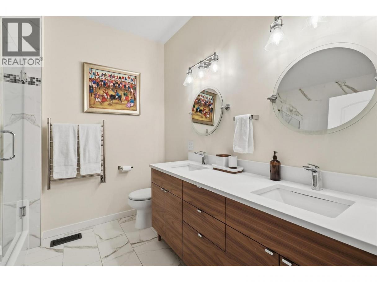 Experience Golf Ridge in Sun Rivers. The moment you enter into this development you can feel the difference of upgraded craftsmanship. A west coast appeal, bursting with mature landscaping. Walk through the front door and be greeted with a spacious entry way with an abundance of light. Separate 1+1 garages on either side with space for your golf cart or extra shelving. Downstairs has a spare bedroom with custom cabinets as well as a large media room and full bathroom. Upstairs, you will find tasteful 2-tone kitchen cabinets with quartz countertops, gas range with double oven, tile backsplash, island with extra storage and a large pantry. Enjoy the spacious living room with an electric fireplace and an outside deck with -- perfect for those summer evenings. There is a separate dining area that could also be used as a Den or close it off for an additional 4th bedroom. The covered patio at the rear includes a Gas barbecue hook up for a secondary entertaining space. Down the hallway, you will find a spacious bedroom with excellent shelving in the closet and a great view of the golf course, and the third main bathroom. The primary bedroom has a luxury style 5pc ensuite bathroom and a walk-in closet. Extra perks include Custom Hunter Douglas Blinds and Ecobee thermostat with geothermal heating and cooling. All meas are approx, buyer to confirm if important. Book your private showing today! (id:6769)