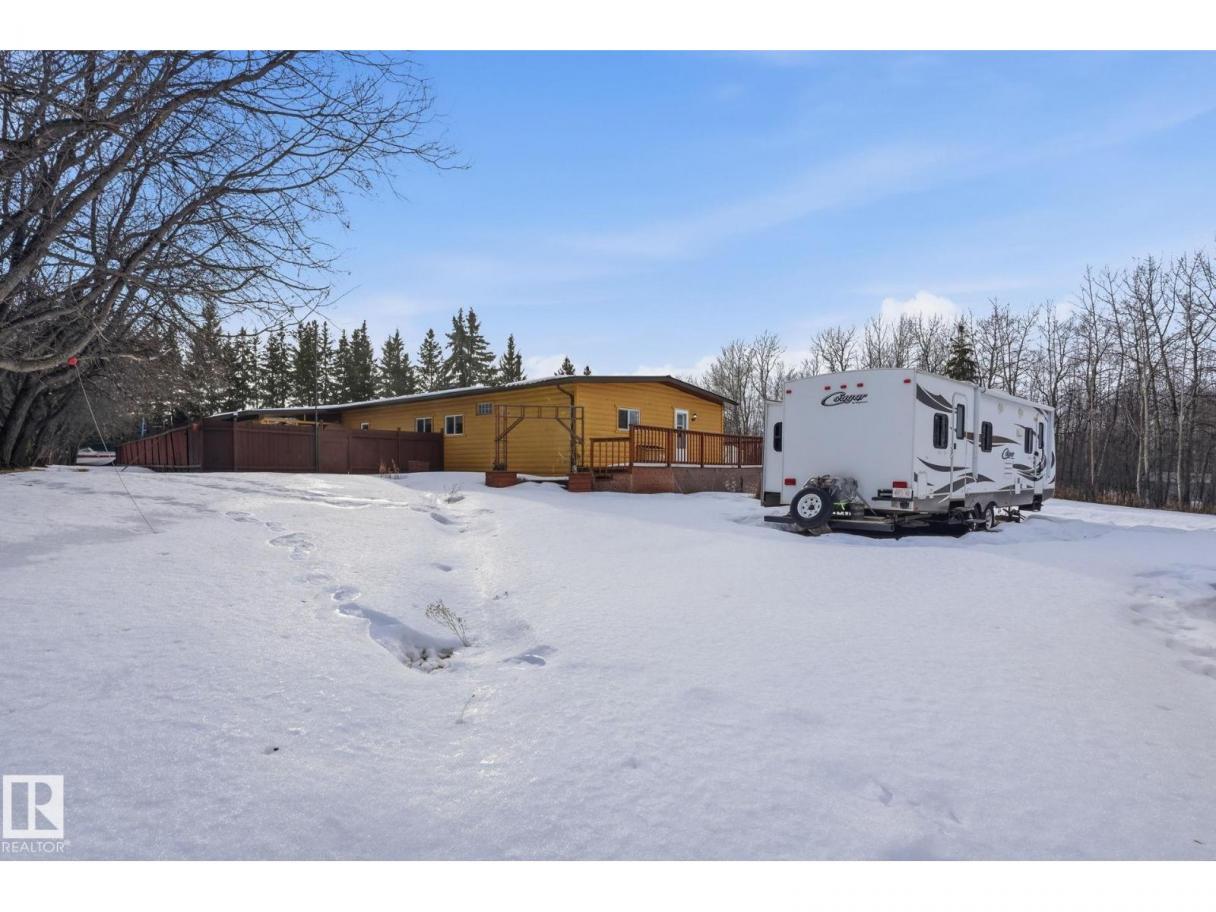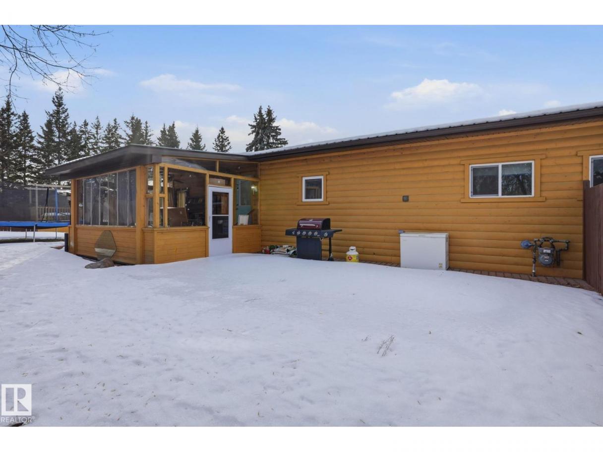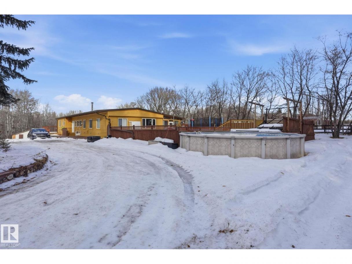 Trade the noise for nature & step into the peaceful country lifestyle your family has been dreaming of. Set on over 3 private acres backing onto an environmental reserve & just a short drive from Lake Wabamun, this peaceful country property offers space to grow, explore, & truly unwind. A charming wrap-around deck offers the perfect place for morning coffee or relaxing evening sunsets. Inside, abundant windows flood the bungalow w/natural light & showcase sweeping countryside views in every direction. Featuring 4 bedrooms & 1.5 baths, there’s room for everyone. The warm country kitchen w/dine-in island is made for family gatherings, while the cozy wood stove adds comfort all winter long. A three-season sunroom provides extra space to relax or watch the kids run & play. Outside, enjoy the beautiful pool area, wide open green space, & two versatile sheds ideal for hobby farming, storage, or animals. With room to grow, space to gather, & peace all around - country living truly begins here! (id:6769)