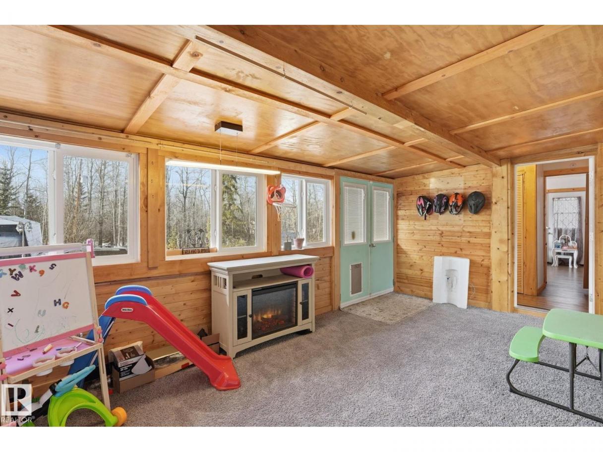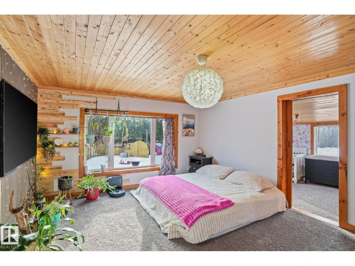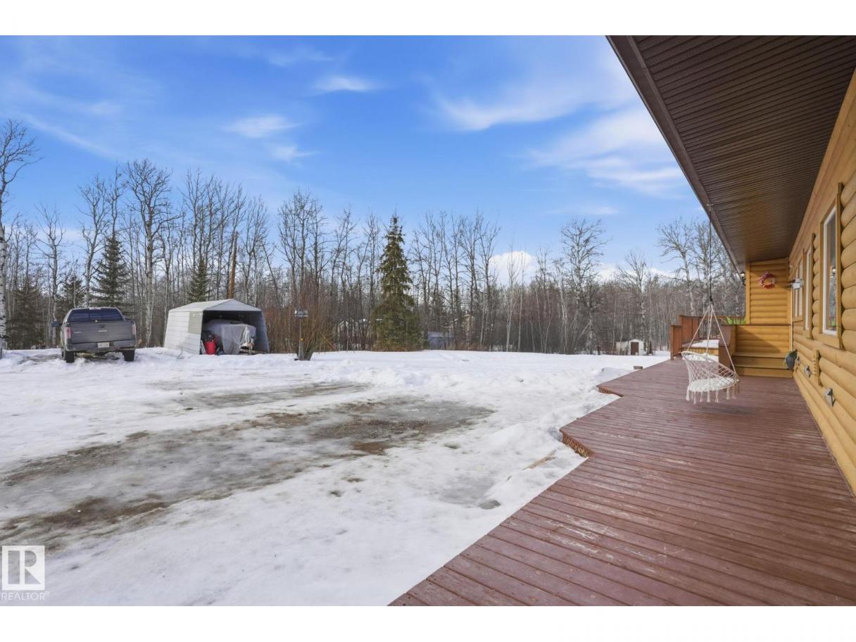 Trade the noise for nature & step into the peaceful country lifestyle your family has been dreaming of. Set on over 3 private acres backing onto an environmental reserve & just a short drive from Lake Wabamun, this peaceful country property offers space to grow, explore, & truly unwind. A charming wrap-around deck offers the perfect place for morning coffee or relaxing evening sunsets. Inside, abundant windows flood the bungalow w/natural light & showcase sweeping countryside views in every direction. Featuring 4 bedrooms & 1.5 baths, there’s room for everyone. The warm country kitchen w/dine-in island is made for family gatherings, while the cozy wood stove adds comfort all winter long. A three-season sunroom provides extra space to relax or watch the kids run & play. Outside, enjoy the beautiful pool area, wide open green space, & two versatile sheds ideal for hobby farming, storage, or animals. With room to grow, space to gather, & peace all around - country living truly begins here! (id:6769)
