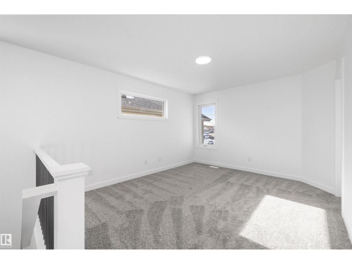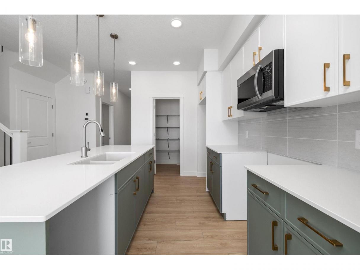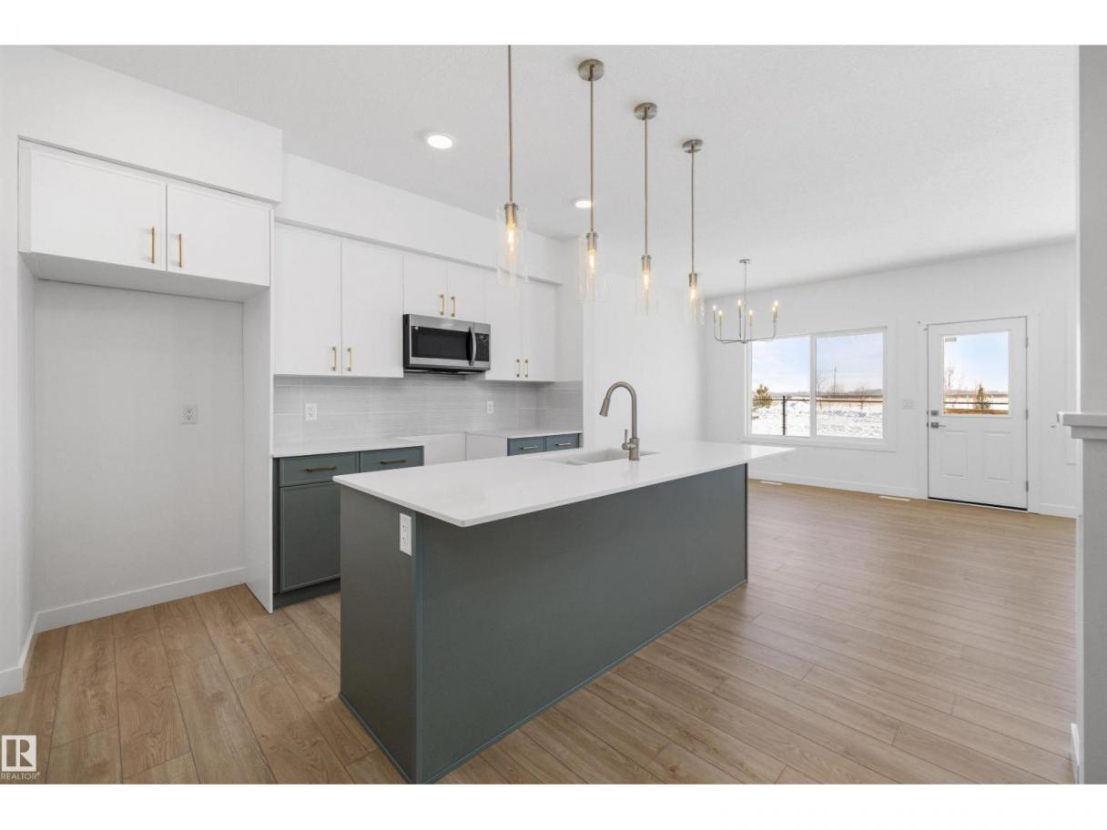 Built by Sterling Homes, this beautifully finished front-attached home in Sienna blends modern style, comfort, and thoughtful design in one of Fort Saskatchewan’s most welcoming family communities. Triple pane windows and 9’ ceilings flood the main floor with natural light. A main-floor bedroom and full 3-piece bath offer flexibility for guests or extended family. The open-concept kitchen features quartz countertops, a large island, upgraded cabinetry, tiled backsplash, corner pantry, and over-the-range microwave, flowing seamlessly into the dining area and great room with backyard access. Upstairs, the bright primary suite includes a spa-inspired 5-piece ensuite and walk-in closet, along with a bonus room, upper-floor laundry, full bath, and two additional bedrooms. Luxury vinyl plank flooring, upgraded railings, a separate side entrance, oversized double attached garage with floor drain, and basement rough-ins complete this stylish, family-friendly home. (id:6769)