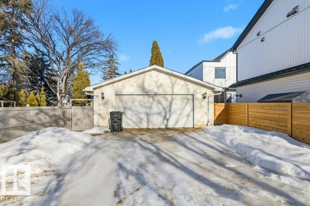 CLASSIC CLARENDON Built Home offered for sale from the Original Owner! Located in family friendly OLD RIVERBEND with quiet tree-lined streets, top-tier schools, river valley trails, and quick access to Whitemud, U of A, and downtown. The main floor offers exceptional flow and scale with a large front living room, formal dining space, a bright kitchen, and an oversized family room with fireplace—ideal for both everyday living and entertaining. A main-floor bedroom and convenient 2-piece bath add flexibility for guests or a home office. Upstairs features a spacious primary retreat with ensuite, two additional bedrooms, and a full bath - basement hosts a massive open utility/recreation area, laundry, and abundant storage—perfect for hobbies, extended family, or future customization. MASSiVE lot, facing William Bradley Moore park, backing greenspace with SUNNY SOUTH EXPOSURE and OVERSiZED Detached garage. A rare opportunity to make this property your own. (id:6769)