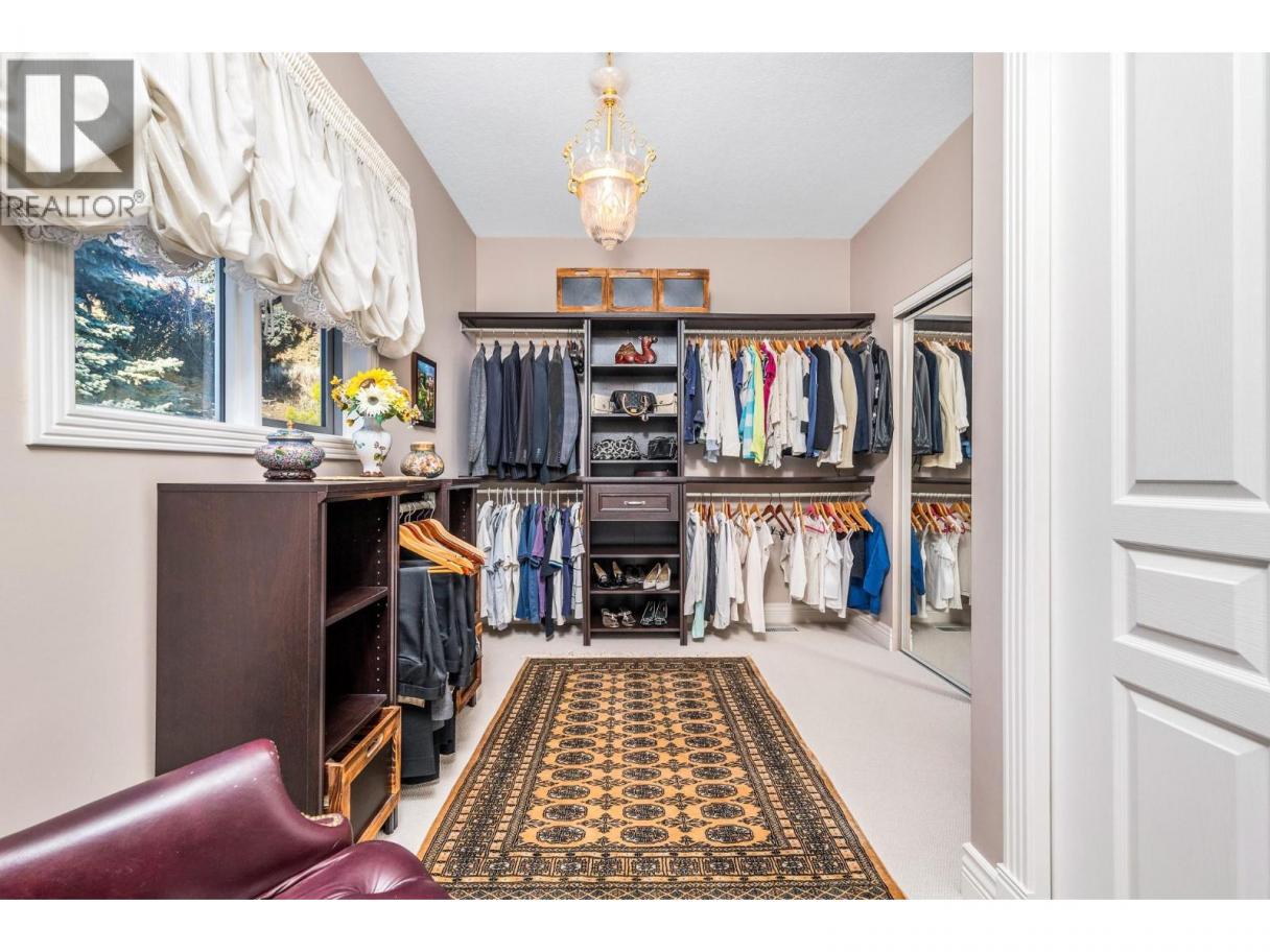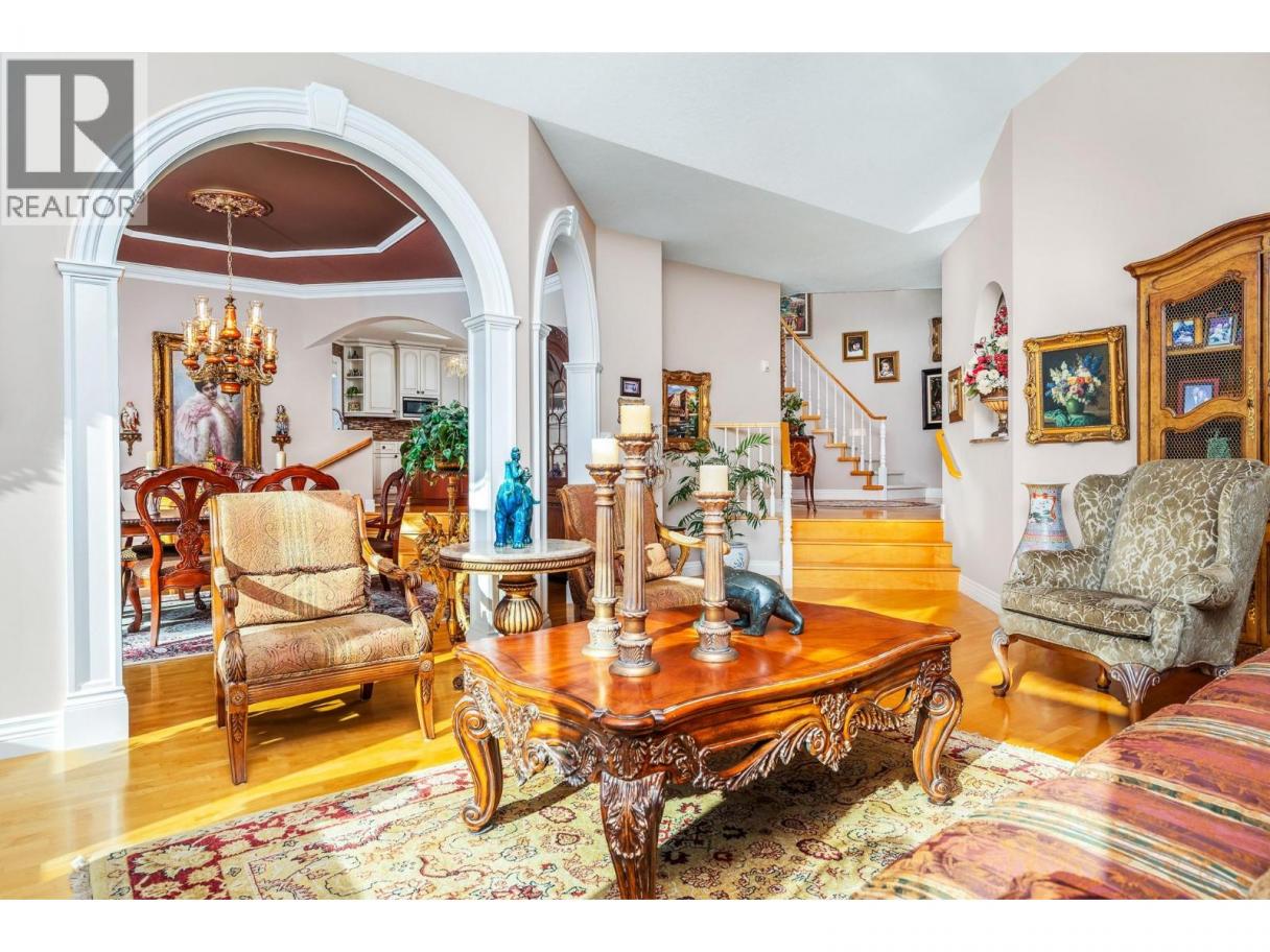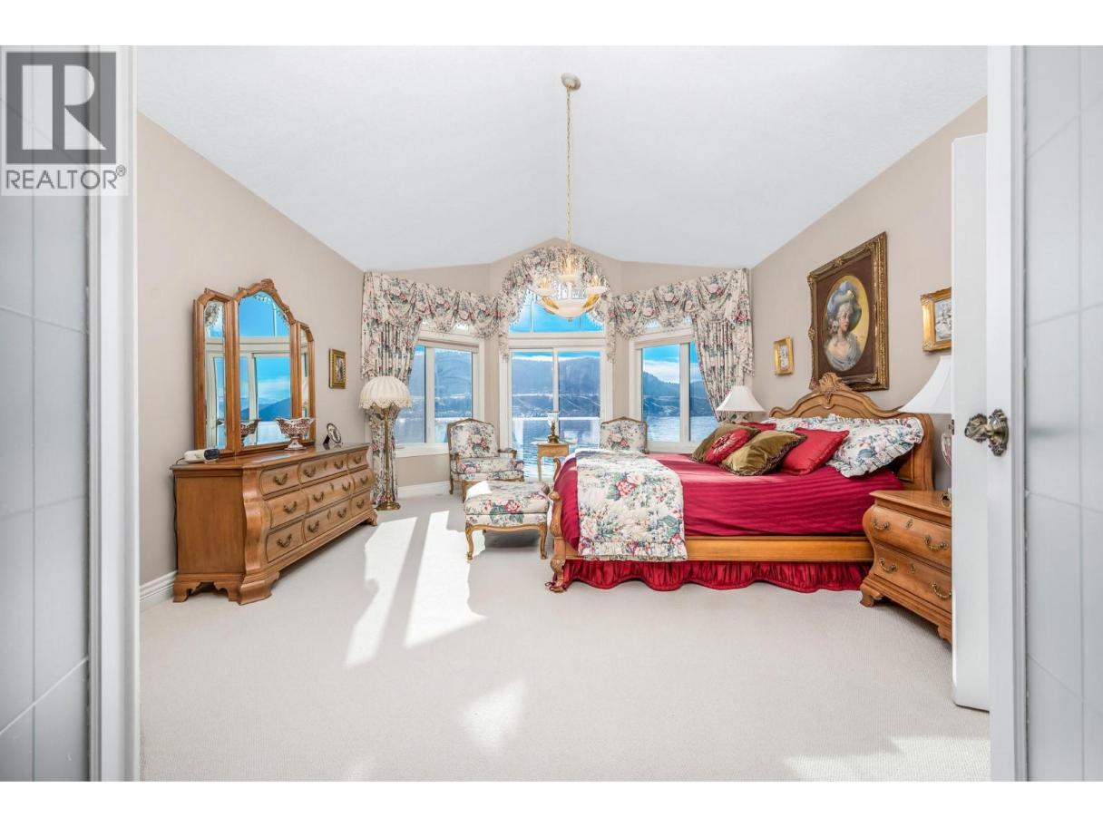 Okanagan lake shore living with so much privacy! Barely 10 minutes from the Vernon city center, just past the popular Kin Beach, watch for the gates to this .56 acre estate. The south/west facing lake views are inspirational and promise sun right until sunset! Follow the walkways through the mature landscape, past the bridged waterscape and take the 42 easy steps to your 79ft of completely level waterfront! Check out the pergola for shaded respite! The home offers a comfortable yet serene elegance with hardwood floors, heated tile floors, elevated and coffered ceilings, impressive arches to define living areas, unique hand picked lighting fixtures & windows everywhere to drink in the lake views. Entertainment sized deck off the main level and partially covered tiled deck of the lower level! Updated kitchen with impressive granite island and gas range and bay window breakfast nook. Step down to the formal dining room and living rooms or escape behind the french doors to the family room with its cozy gas fireplace and built in library. Follow the curved stairway to the open landing of the upper level – reserved entirely for the primary suite with decadent 5 piece ensuite and his and hers dressing room. The lower level can be a completely closed for a private 3 bedroom suite for family or lingering guests! Full kitchen and family room that opens to huge private deck and beach access. Double garage and loads of level parking! Mature, colourful landscaping with sprinkler system. (id:6769)