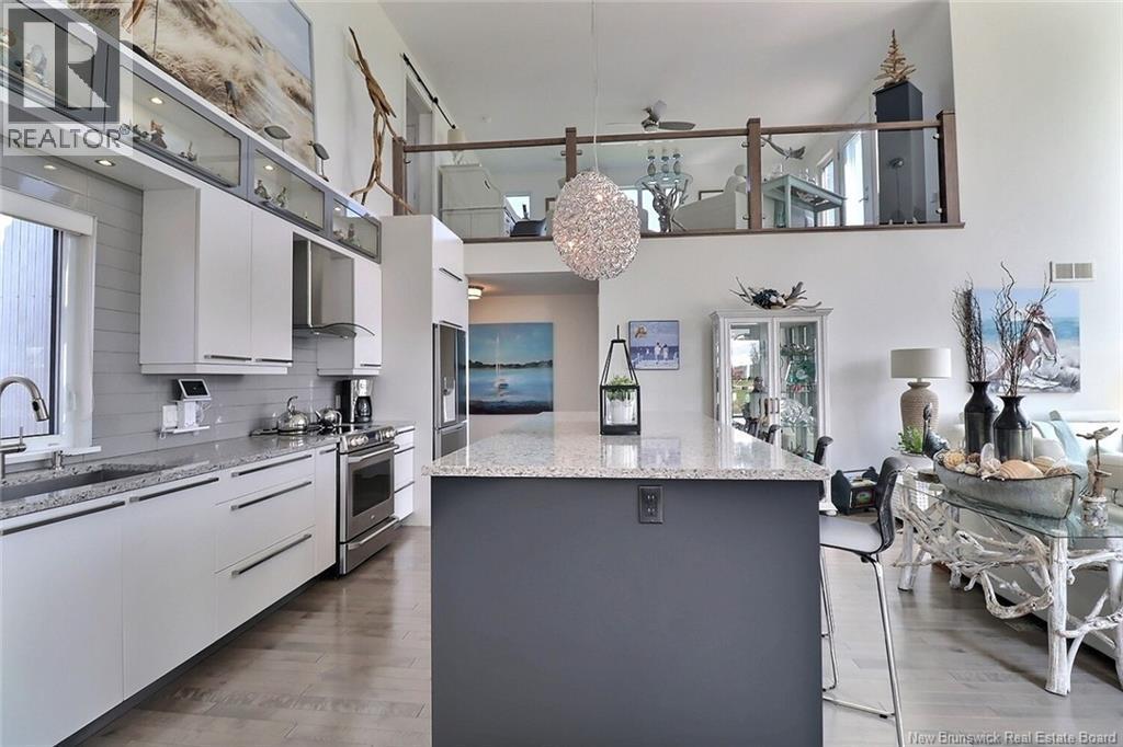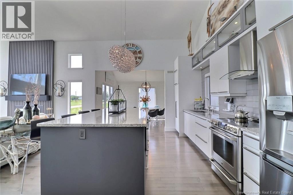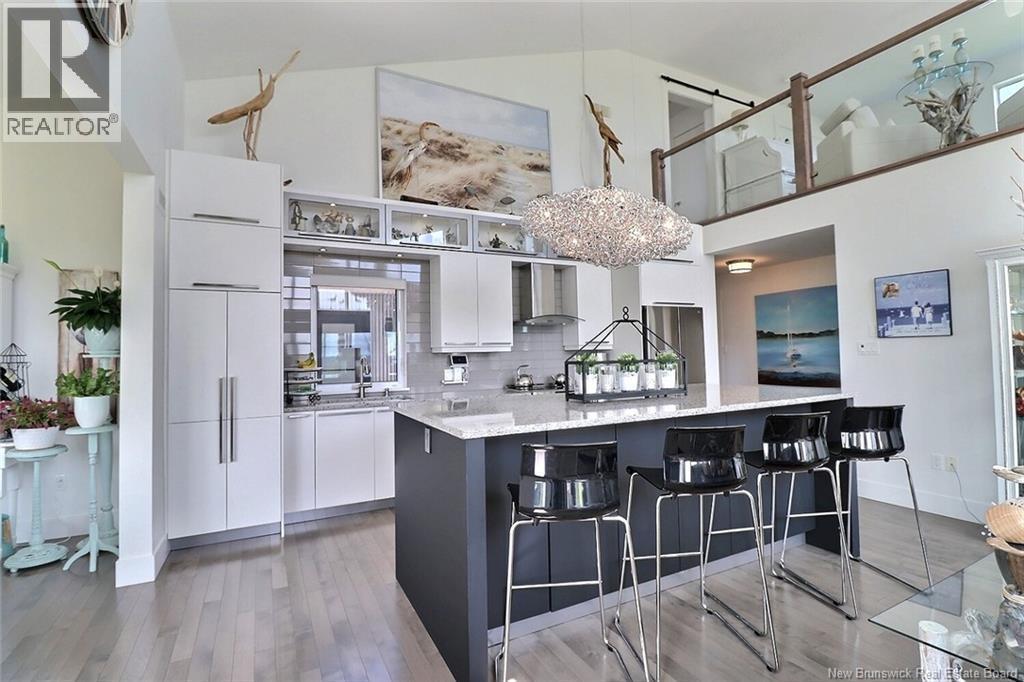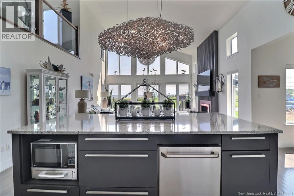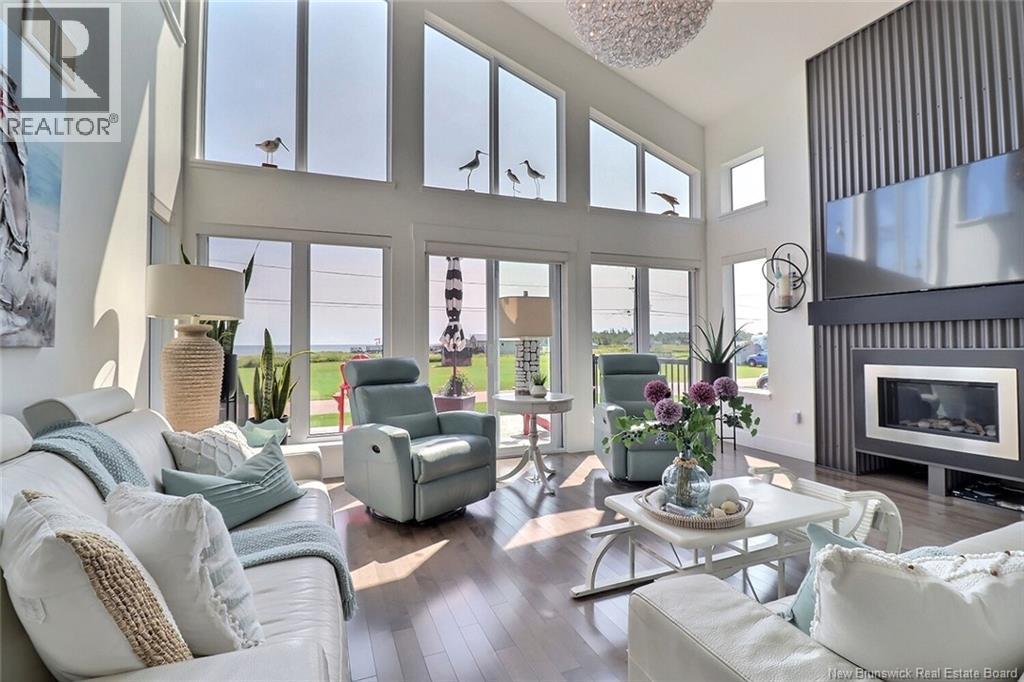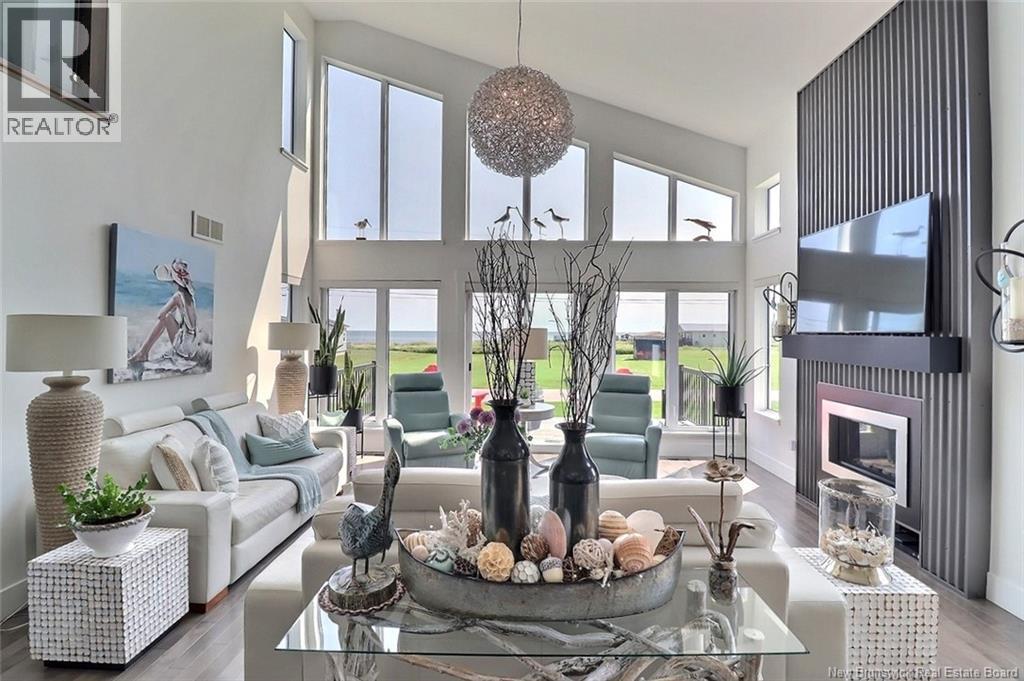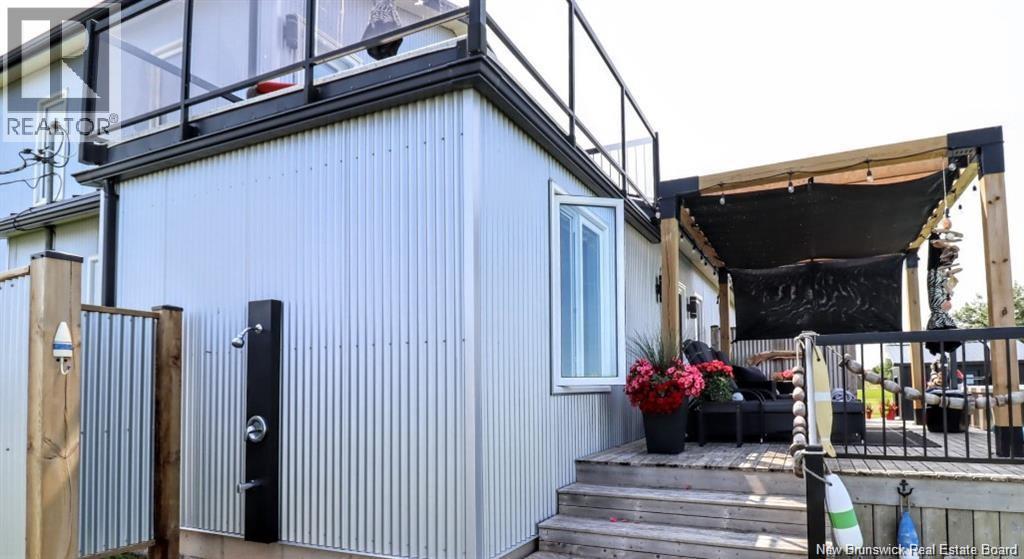 Welcome to 52 Connie, an extraordinary custom-built home offering panoramic water views, deeded beach access, and thoughtful design throughout. Built in 2016 with quality and energy efficiency in mind, this stunning property boasts low-maintenance materials including a durable corrugated steel exterior and metal roof. Step inside and be greeted by soaring ceilings, expansive windows, and a bright, open-concept layout that floods the space with natural light. The chefs kitchen features quartz countertops, custom cabinetry, and premium stainless steel appliances, seamlessly flowing into the living and dining areas; perfect for entertaining. The primary suite offers water views, three double closets, and a spa-like 5-piece ensuite. Two additional bedrooms include generous closet space and a cedar-lined closet upstairs for your seasonal storage needs. Enjoy year-round comfort with the central air heat pump and interior hardwood and ceramic tile throughout. Outside, two oversized decks showcase spectacular sunsets and sunrises. The meticulously landscaped 0.47-acre lot includes a swim spa, a custom fire pit, RV hookup, shed, and a large attached garage with room for two vehicles, toys & workshop. (id:6769)