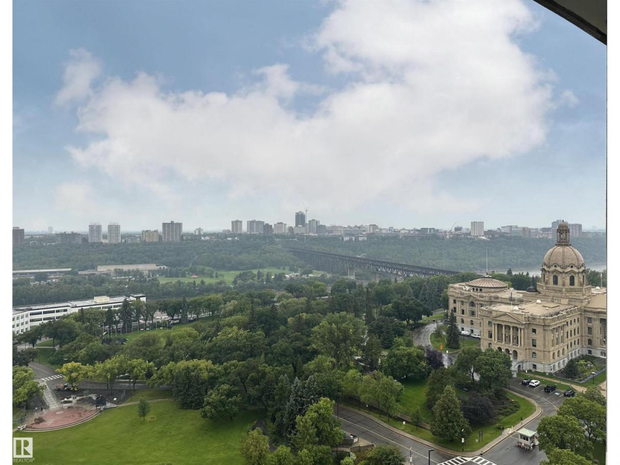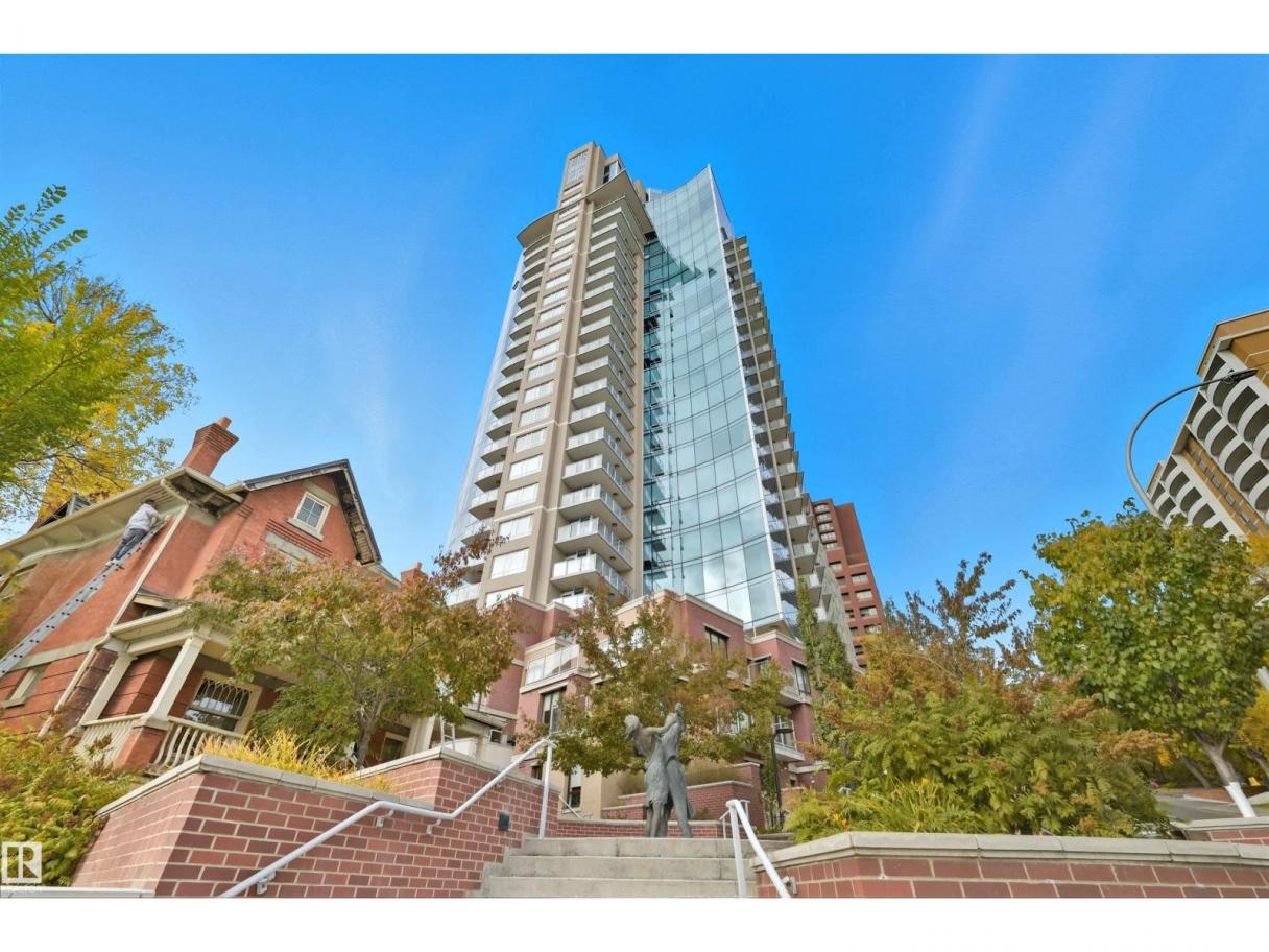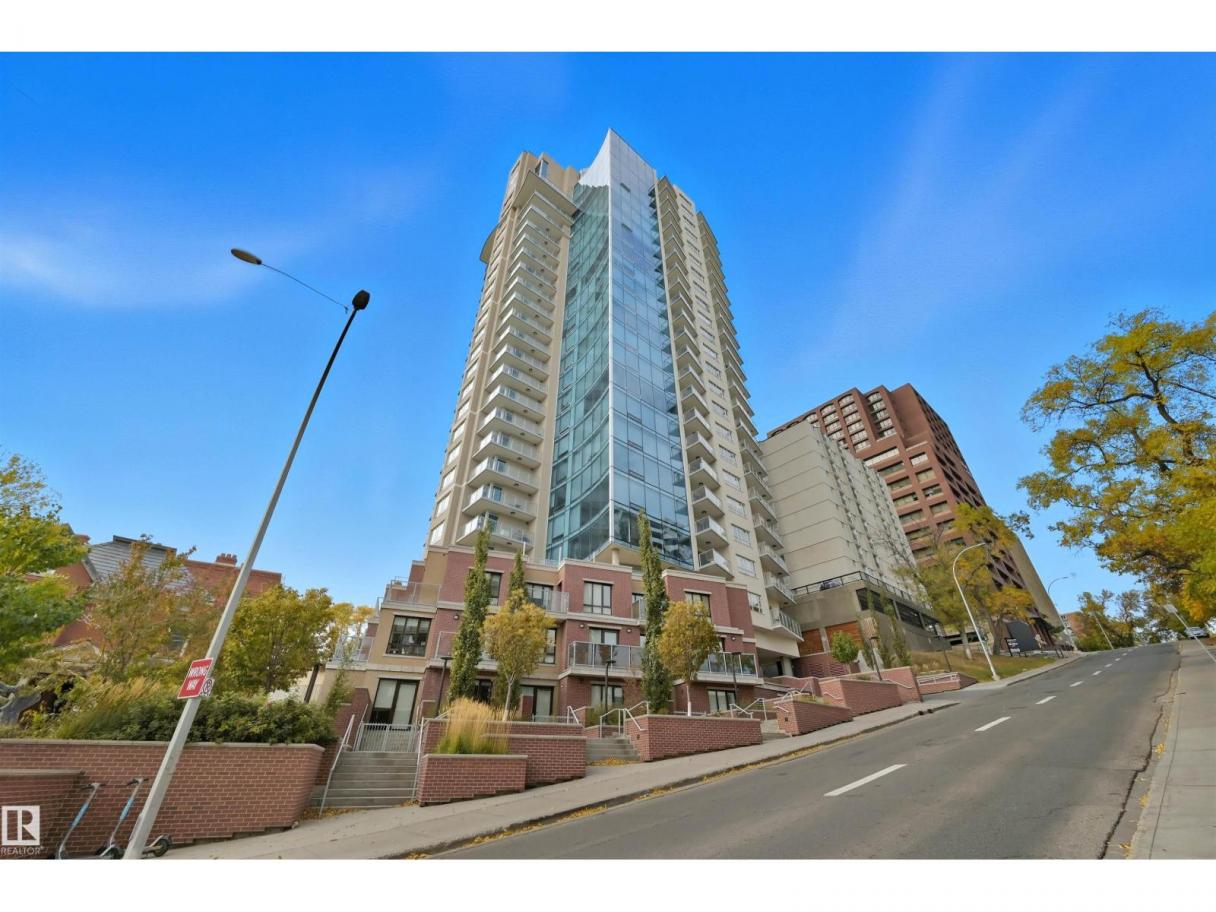DOWNTOWN VIEWS from this gorgeous 1-bedroom unit in a prime location! Quick access to downtown core, but with a location nestled up to the Legislature and River Valley. Welcome to Symphony Tower! 20TH FLOOR UNIT boasts an open concept. Kitchen has a large island, plenty of cabinetry and gas stove. Living room offers downtown and east river valley views! Primary bedroom has a sizeable walk-in closet with brand new custom built-ins and ensuite w/ granite and tile surround. Well-sized balcony to enjoy downtown and river valley views! Added features include INSUITE LAUNDRY, window coverings & balcony gas line! Enjoy the convenience and safety of UNDERGROUND PARKING with CAGE. This building has it all: River Valley & Downtown location w/ secured & direct access to AB Legislature grounds, immaculate gym, contemporary social room w/ balcony access & sun-filled, atrium-like lobby. (id:6769)