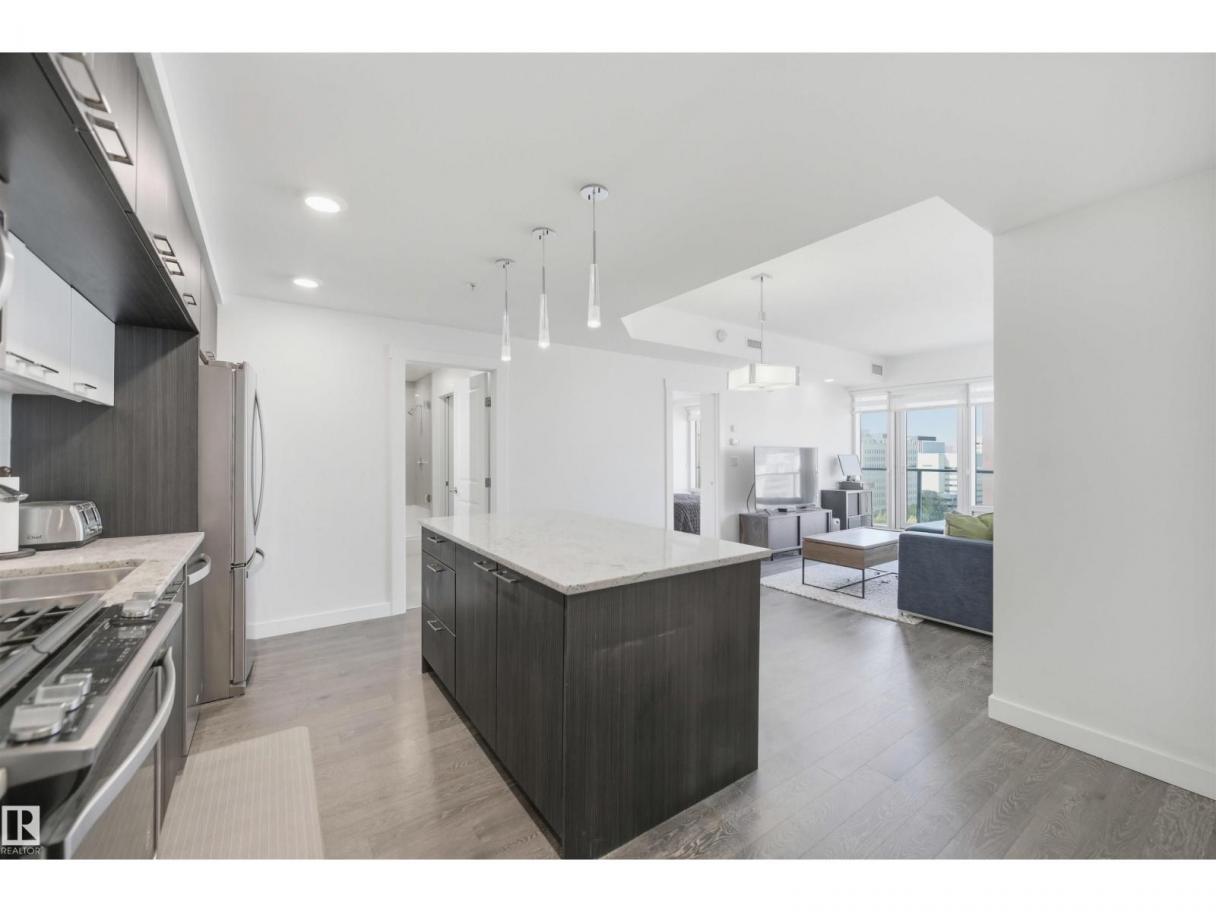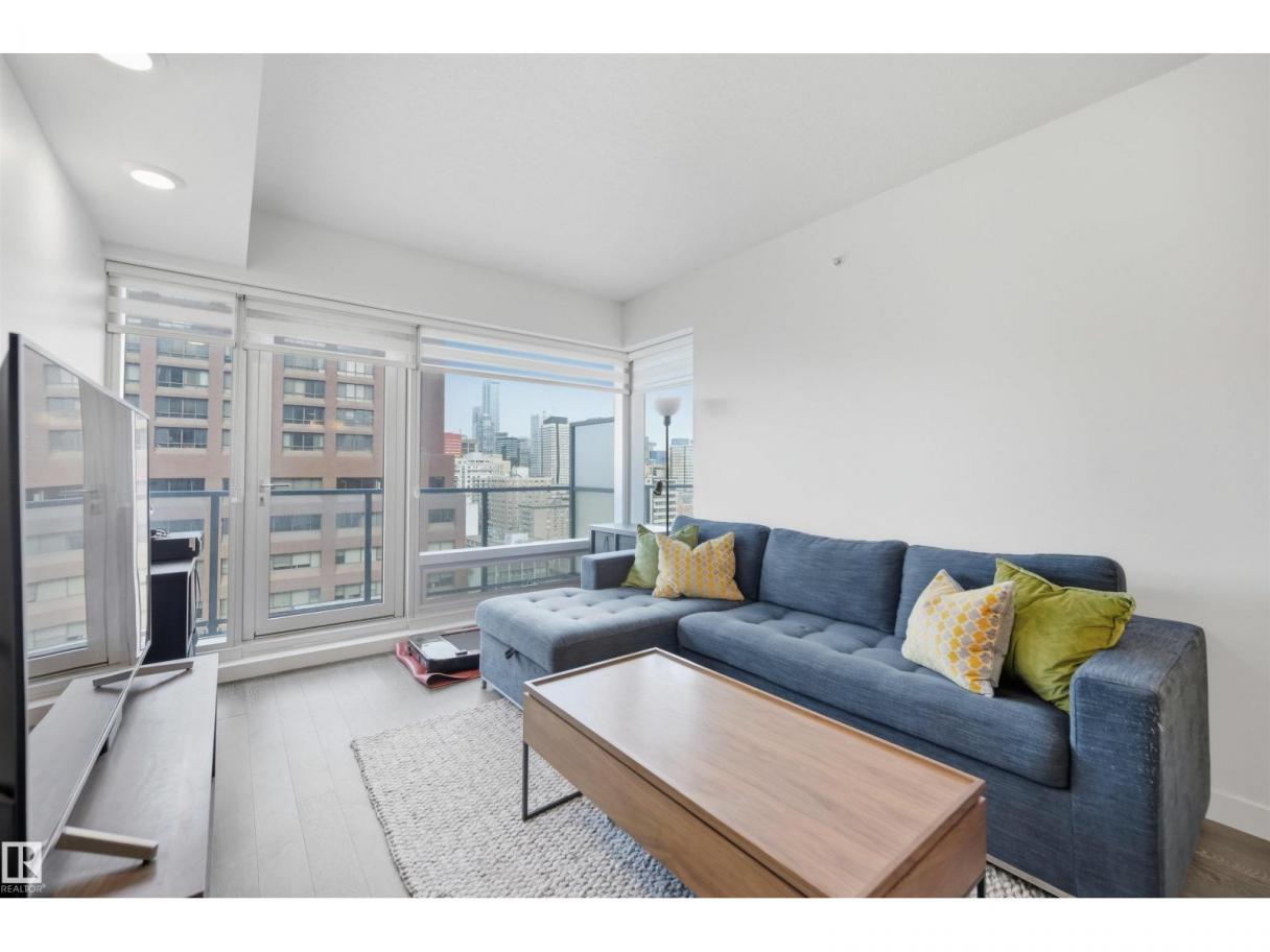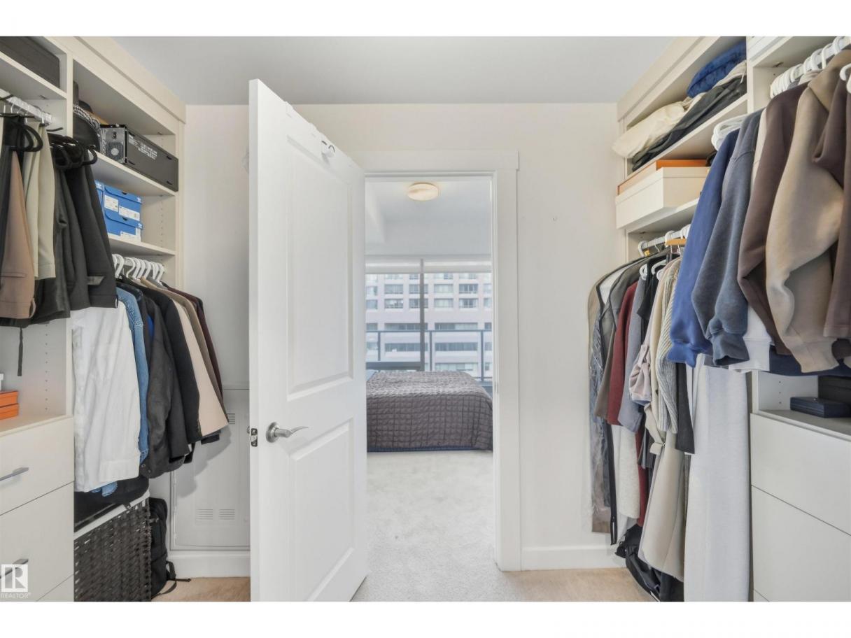 DOWNTOWN VIEWS from this gorgeous 1-bedroom unit in a prime location! Quick access to downtown core, but with a location nestled up to the Legislature and River Valley. Welcome to Symphony Tower! 20TH FLOOR UNIT boasts an open concept. Kitchen has a large island, plenty of cabinetry and gas stove. Living room offers downtown and east river valley views! Primary bedroom has a sizeable walk-in closet with brand new custom built-ins and ensuite w/ granite and tile surround. Well-sized balcony to enjoy downtown and river valley views! Added features include INSUITE LAUNDRY, window coverings & balcony gas line! Enjoy the convenience and safety of UNDERGROUND PARKING with CAGE. This building has it all: River Valley & Downtown location w/ secured & direct access to AB Legislature grounds, immaculate gym, contemporary social room w/ balcony access & sun-filled, atrium-like lobby. (id:6769)