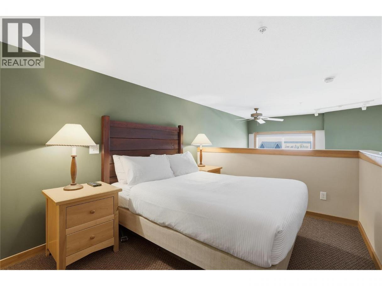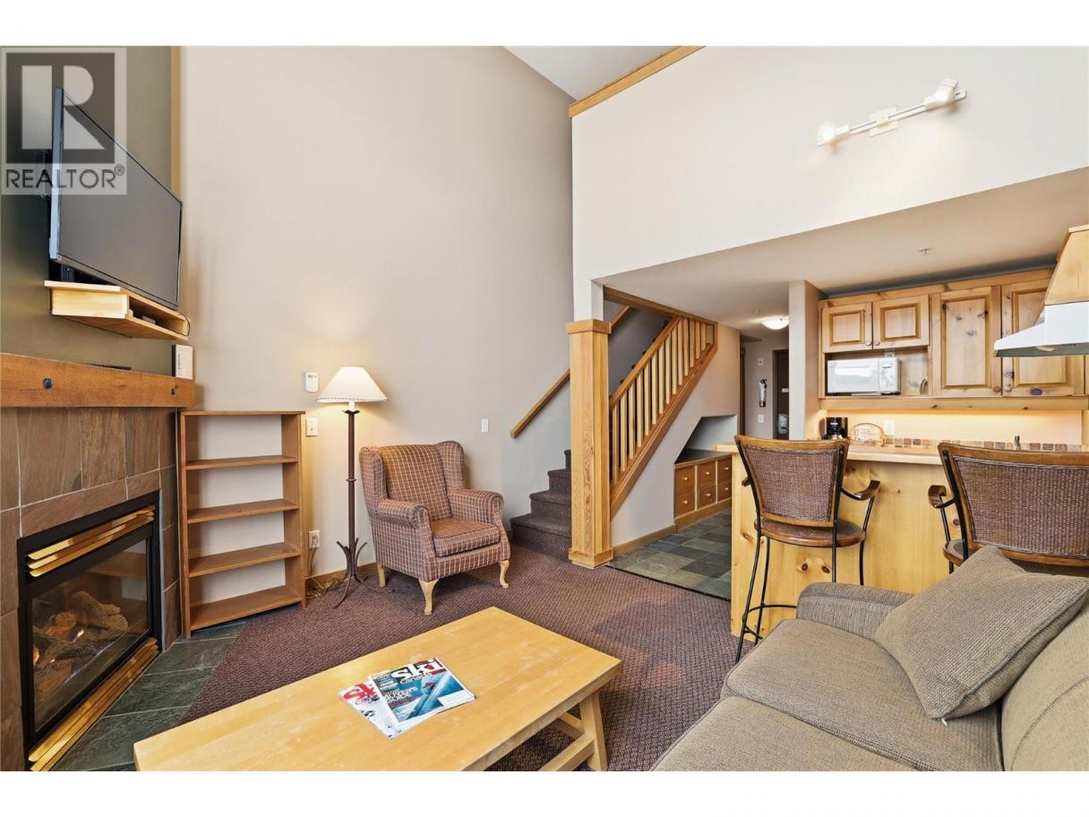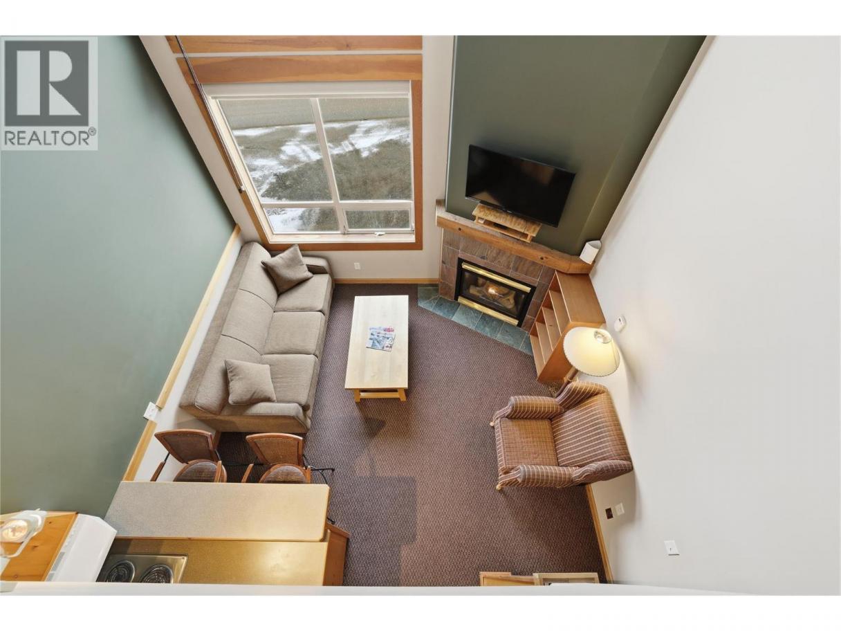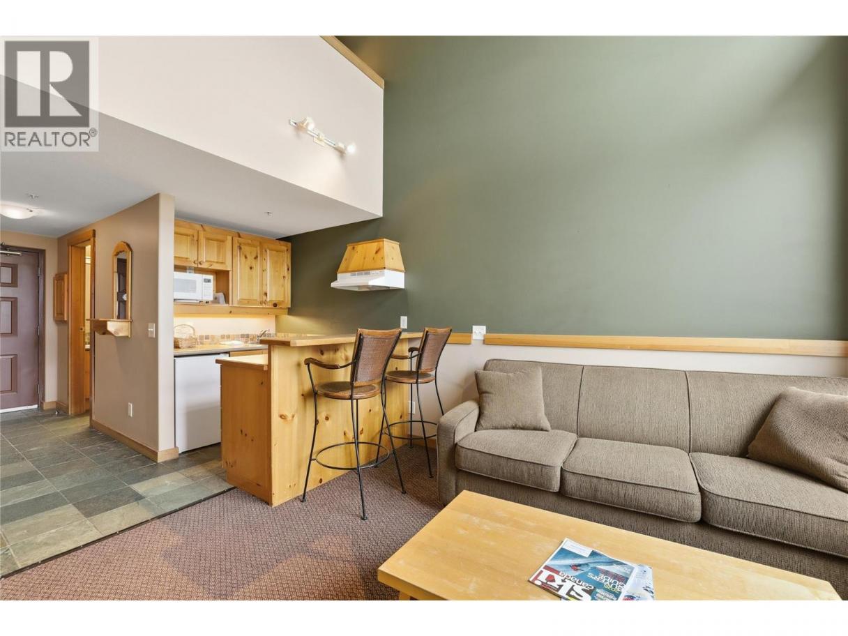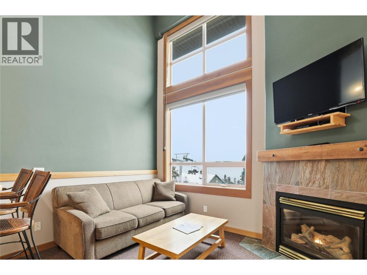Experience the best of Big White from this prime village location at Chateau Big White. Just steps from shops and restaurants, you can also ski directly from your front door to the Plaza Chair for effortless access to the slopes. This one-bedroom loft offers a spacious feel at an affordable price point. Featuring vaulted ceilings and a cozy fireplace, it’s an inviting retreat—perfect as a weekend getaway or an attractive rental investment. The building also offers convenient amenities including underground parking, secure ski and snowboard storage, and a shared hot tub to relax in after a day on the mountain. (id:6769)