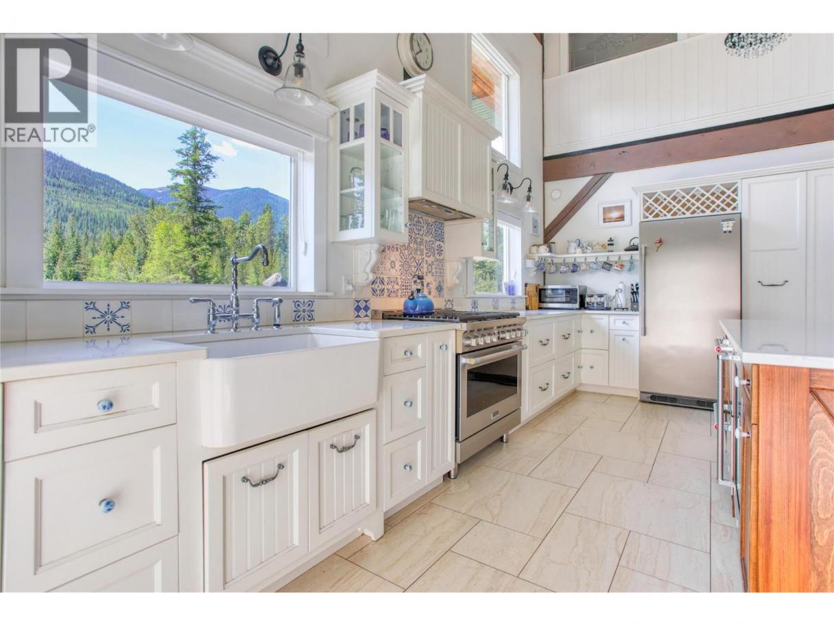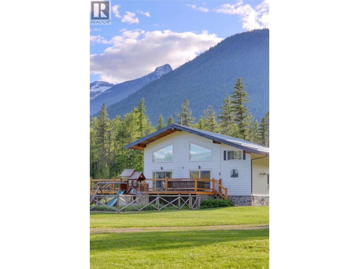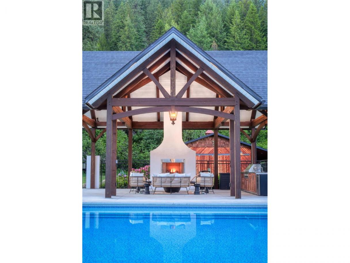 Stunning 20-Acre Riverfront Ranch in the Slocan Valley – Foreign Buyers Welcome! This extraordinary 20-acre estate offers over 1,400 feet of frontage on the Little Slocan River, showcasing panoramic views of Frog Peak and unmatched privacy. The custom-designed 4-bedroom main residence is masterfully crafted from a reclaimed vintage barn. It features exposed timbers, soaring vaulted ceilings, and expansive windows that frame the surrounding mountains and river. Inside, the chef’s kitchen is equipped with high-end appliances, and a charming European wood cookstove. Artistic accents and an open-concept layout create a warm and inviting living space with thoughtful character throughout. Complementing the main home is a charming 2-bedroom original residence with its own driveway—ideal for guests, extended family, or rental income—alongside a separate caretaker’s suite located in the Barn. Outdoor living is elevated with a large 8-foot deep pool, an elegant Purcell timber-frame pavilion, a custom stone fireplace, a fully equipped outdoor kitchen area, and a wood fired sauna - perfect for entertaining or peaceful retreat-style living. The grounds are beautifully developed and set up for a hobby farm or entrepreneurial venture, including a state-of-the-art barn with stalls, fencing, and a year round animal self-watering system. The property also boasts expansive perennial gardens, a large greenhouse, raised garden beds, and a deer-fenced orchard with berries and fruit trees. Additional infrastructure includes a garage/workshop, a professional underground sprinkler system, and extensive rockwork and landscaping. Located just 30 minutes from both Nelson and Castlegar, this south-facing, unzoned, and non-ALR property provides excellent sun exposure and limitless potential for agriculture, recreation, or tourism use. A rare opportunity to own a riverfront sanctuary that seamlessly blends privacy, sustainability, and lifestyle—truly one-of-a-kind. (id:6769)