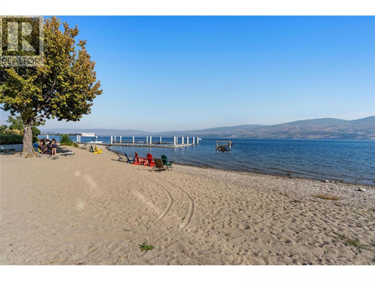 Lakeside Luxury at The Cove – Massive Wraparound Balcony! This rare corner/end suite at The Cove Lakeside Resort offers the perfect blend of comfort and lifestyle with a massive 730 sq ft wraparound covered balcony—one of the largest at the resort! Enjoy peek-a-boo lake views, serene park-side tranquility, and exposures in all directions (E/N/S/W), making this a truly special space to relax and entertain. The intelligently designed floor plan features 3 bedrooms and 3 full bathrooms, including two primary suites with ensuites, plus a guest bedroom and full bath. The “U”-shaped kitchen with bar seating flows into the dining, family, and living areas, flooded with natural light from expansive windows. The living room boasts a stylish “Don Quixote” feature wall, while the cozy family room offers peaceful park views. Extras include an independent laundry/storage room, three lock-off closets, and 3 balcony access points. Whether you're looking for a full-time residence, vacation home, or a profitable rental, this suite offers it all. Enjoy resort-style amenities: outdoor pool, 2 hot tubs, putting green, tennis court, gym, theatre, restaurant/bar, marina, and 600' of Okanagan Lake waterfront on 6.5 acres. Don't miss this opportunity to own one of The Cove's finest suites! (id:6769)