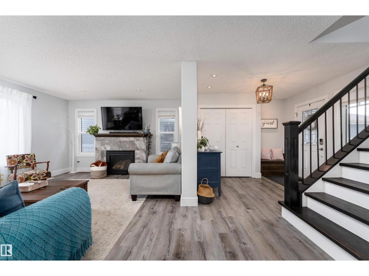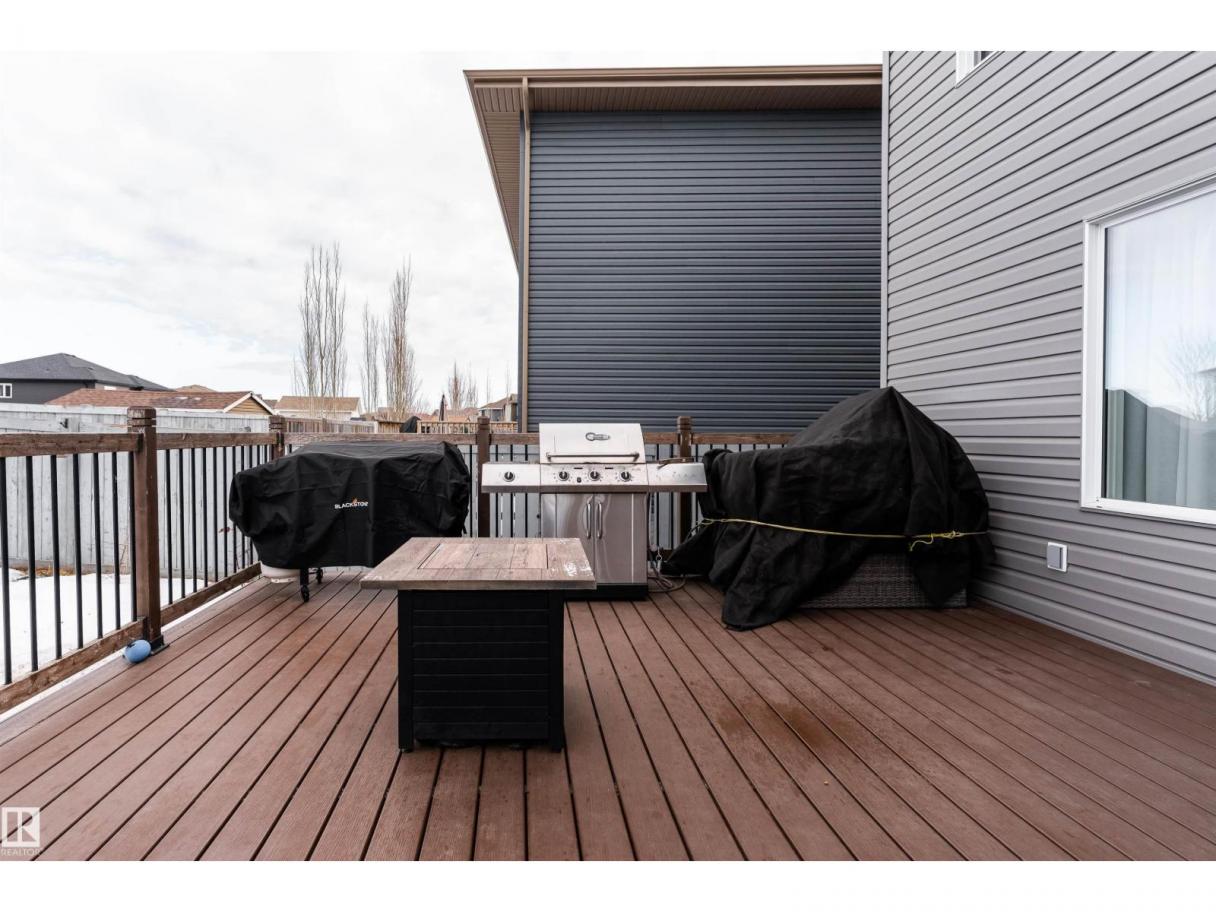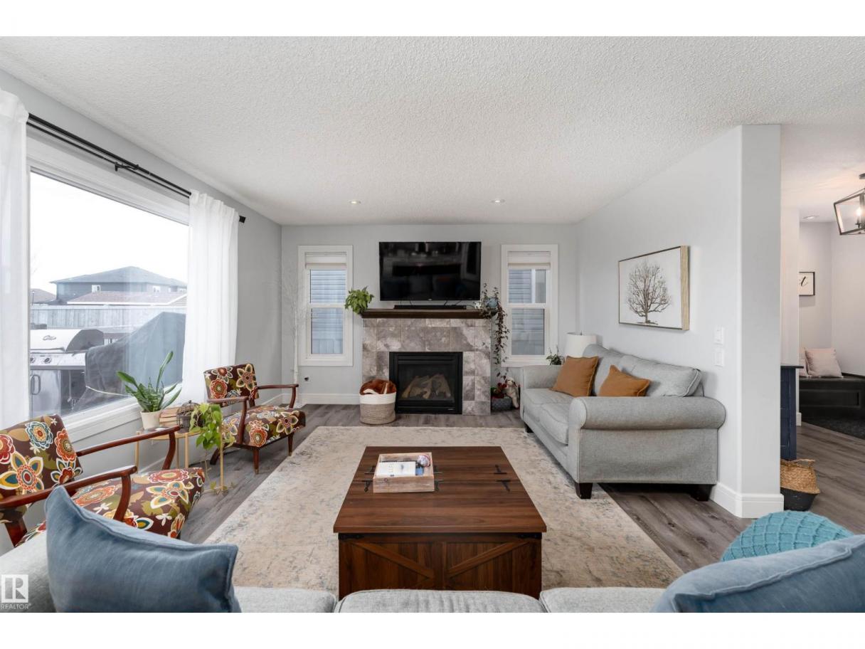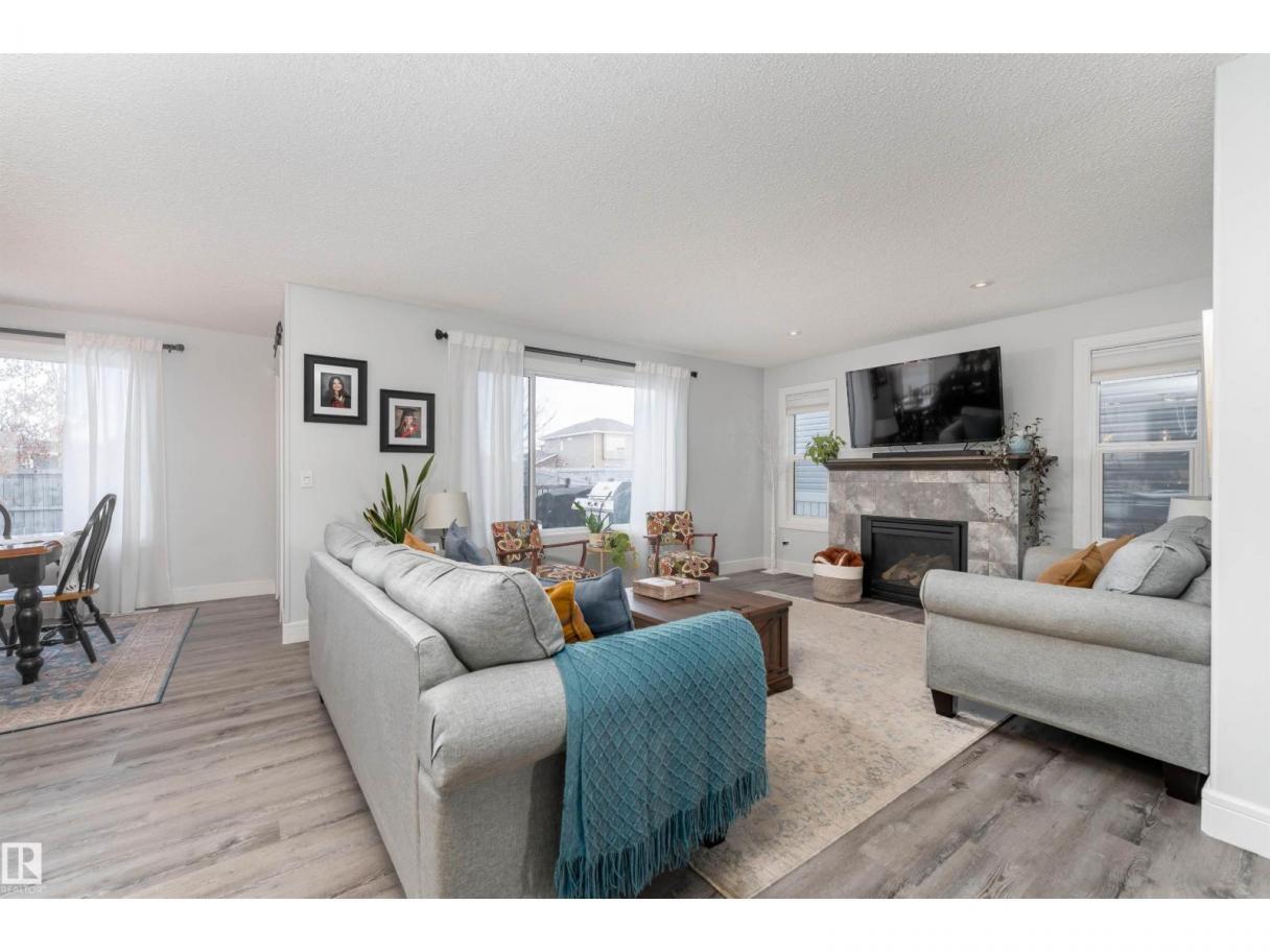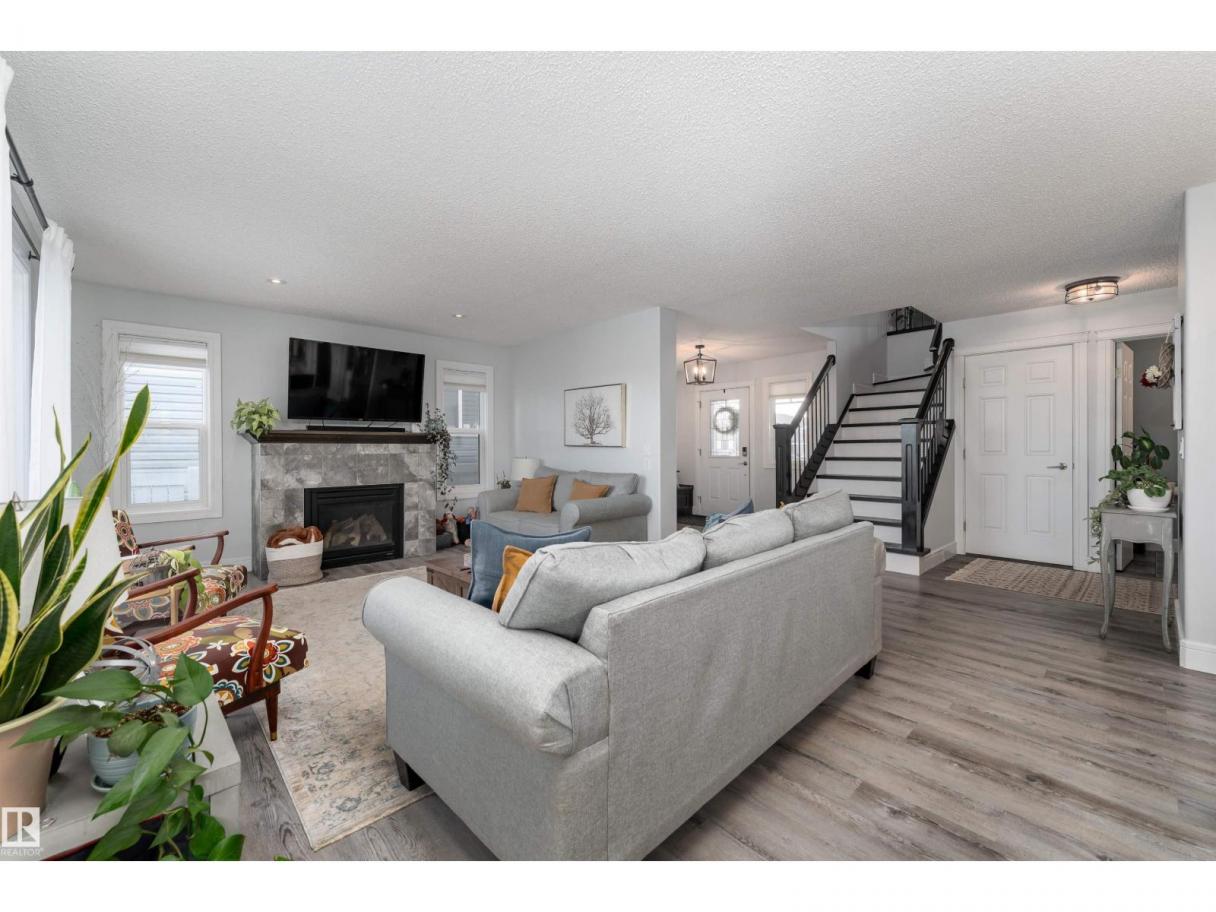 This beautiful home is located in Southfort Meadows in Fort Saskatchewan! The main floor features an open concept with updated vinyl plank flooring the living room featuring a gas fireplace, beautiful white kitchen cabinets with granite countertops. All appliances come with including a beautiful gas range. The dining room has a garden door to the spacious composite deck for those summer nights. The dog run is built in for you already and the yard is spacious without back neighbours looking directly in on you. A 2-pc bath and main floor laundry complete this level. The upper floor has a large bonus room at the front of the house, primary bedroom with a beautiful 5 pc ensuite, 2 more bedrooms and a large 4 pc main bath (perfect for sharing). The fully finished basement is complete with rec room, 4th bedroom and a 3 piece bath. A/C and garage heat included in the sale. (id:6769)