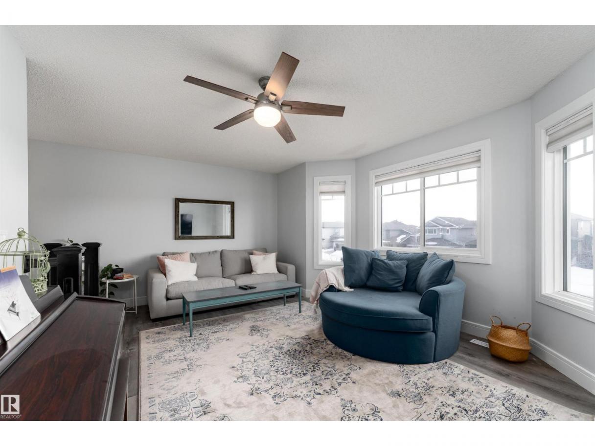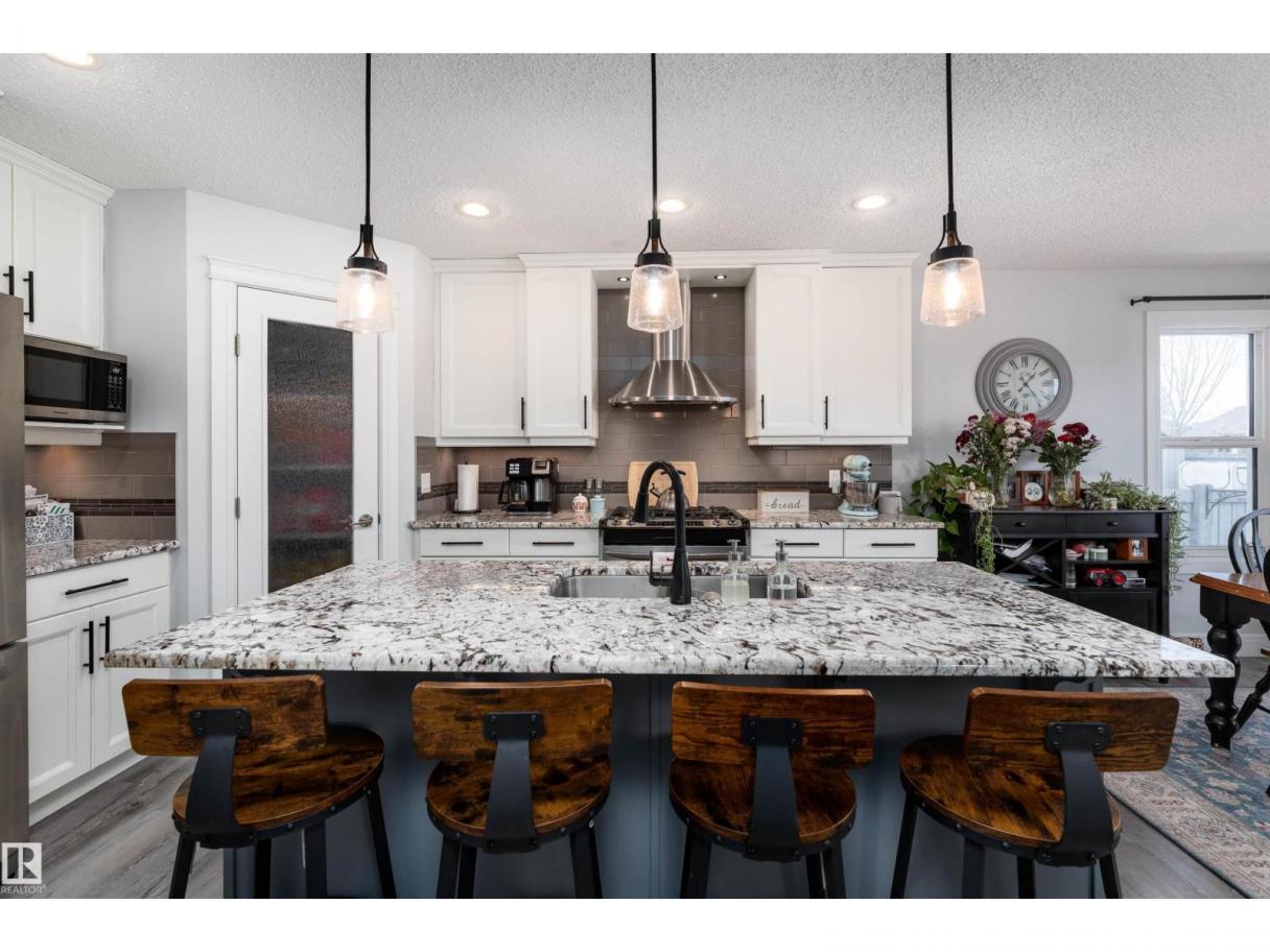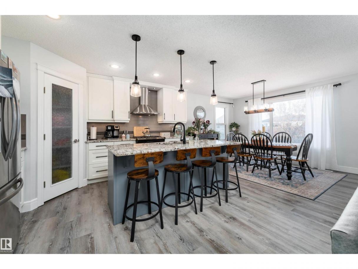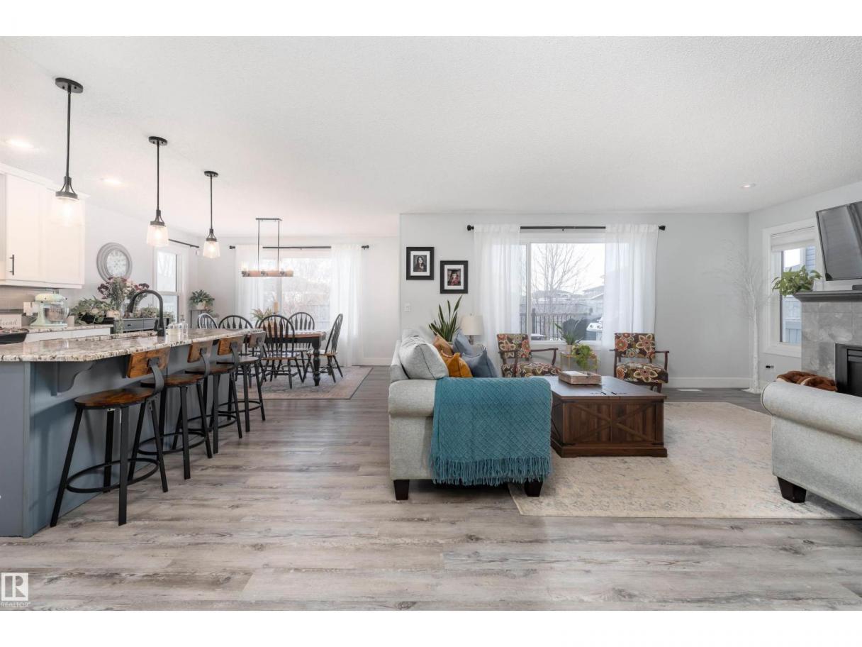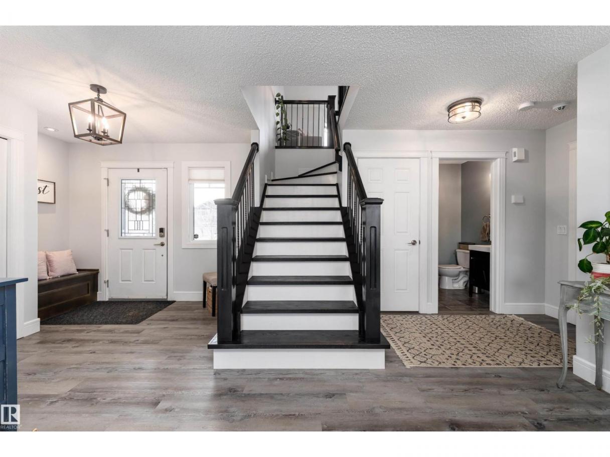 This beautiful home is located in Southfort Meadows in Fort Saskatchewan! The main floor features an open concept with updated vinyl plank flooring the living room featuring a gas fireplace, beautiful white kitchen cabinets with granite countertops. All appliances come with including a beautiful gas range. The dining room has a garden door to the spacious composite deck for those summer nights. The dog run is built in for you already and the yard is spacious without back neighbours looking directly in on you. A 2-pc bath and main floor laundry complete this level. The upper floor has a large bonus room at the front of the house, primary bedroom with a beautiful 5 pc ensuite, 2 more bedrooms and a large 4 pc main bath (perfect for sharing). The fully finished basement is complete with rec room, 4th bedroom and a 3 piece bath. A/C and garage heat included in the sale. (id:6769)
