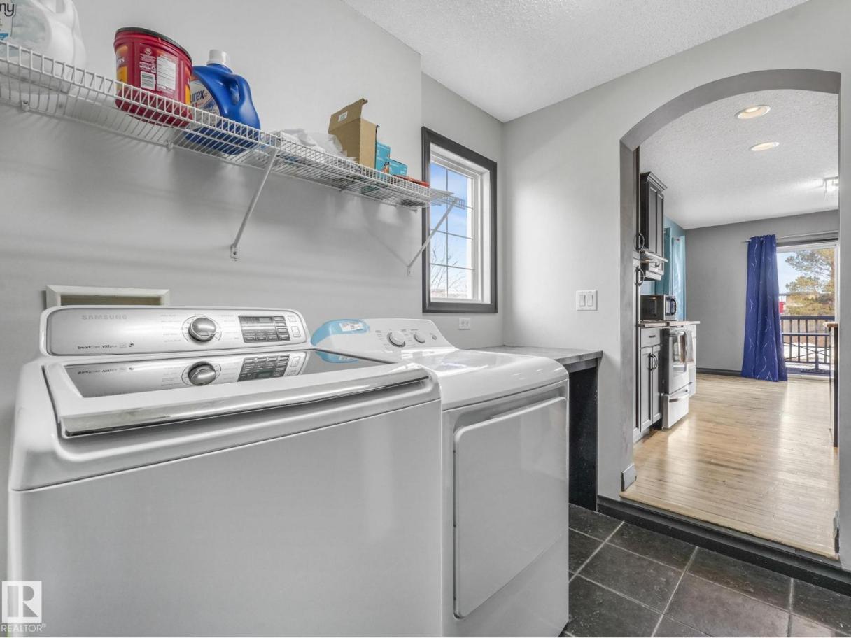 PREMIUM LOCATION! Backing directly onto greenspace & scenic walking trails in Fort Saskatchewan, this stunning home with A/C in sought-after South Fort offers the lifestyle you’ve been waiting for. Imagine morning coffee on your tiered deck with uninterrupted views & no rear neighbours. The bright, open-concept main floor is designed for connection—featuring a beautiful kitchen with stainless steel appliances, stone countertops, spacious dining area, convenient main floor laundry & cozy gas fireplace for winter nights. Upstairs, unwind in the generous primary retreat with spa-inspired ensuite, plus two additional bedrooms, family bathroom, bonus room for movie nights & flex workspace. The partially finished basement offers endless possibilities for a gym, studio or rec room. Heated double garage included. Close to major shopping, South Point School and lovely parks. This is more than a home—it’s a lifestyle. (id:6769)