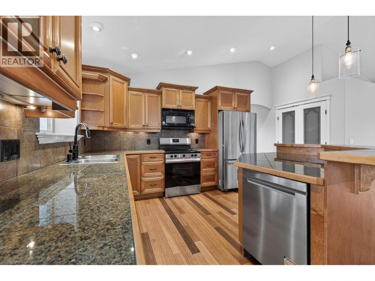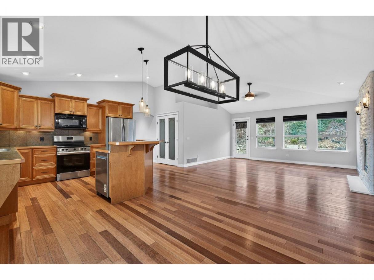 Welcome to 327 Quilchena Drive — a well-designed family home in a highly desirable neighbourhood. The main level features vaulted ceilings and a bright, open-concept kitchen, dining, and living area that keeps everyone connected. The kitchen offers direct access to a large covered balcony with lake, mountain, and city views — also accessible from the primary bedroom. Upstairs includes the primary suite with a 4-piece ensuite, a second bedroom, and an additional full bathroom — ideal for young children or a home office setup. The walk-out lower level adds valuable living space with a generous family room, two additional bedrooms, a full bathroom, laundry, and ample storage. This layout provides flexibility for growing families, teenagers, guests, or multi-use space. The fully landscaped yard is easy to maintain and offers space for outdoor play and entertaining. Located steps from parks, transit, and Chute Lake Elementary, this home combines practical living space with everyday convenience. Functional, spacious, and move-in ready — a solid option for families looking for room to grow. All information and measurements are approximate. (id:6769)
