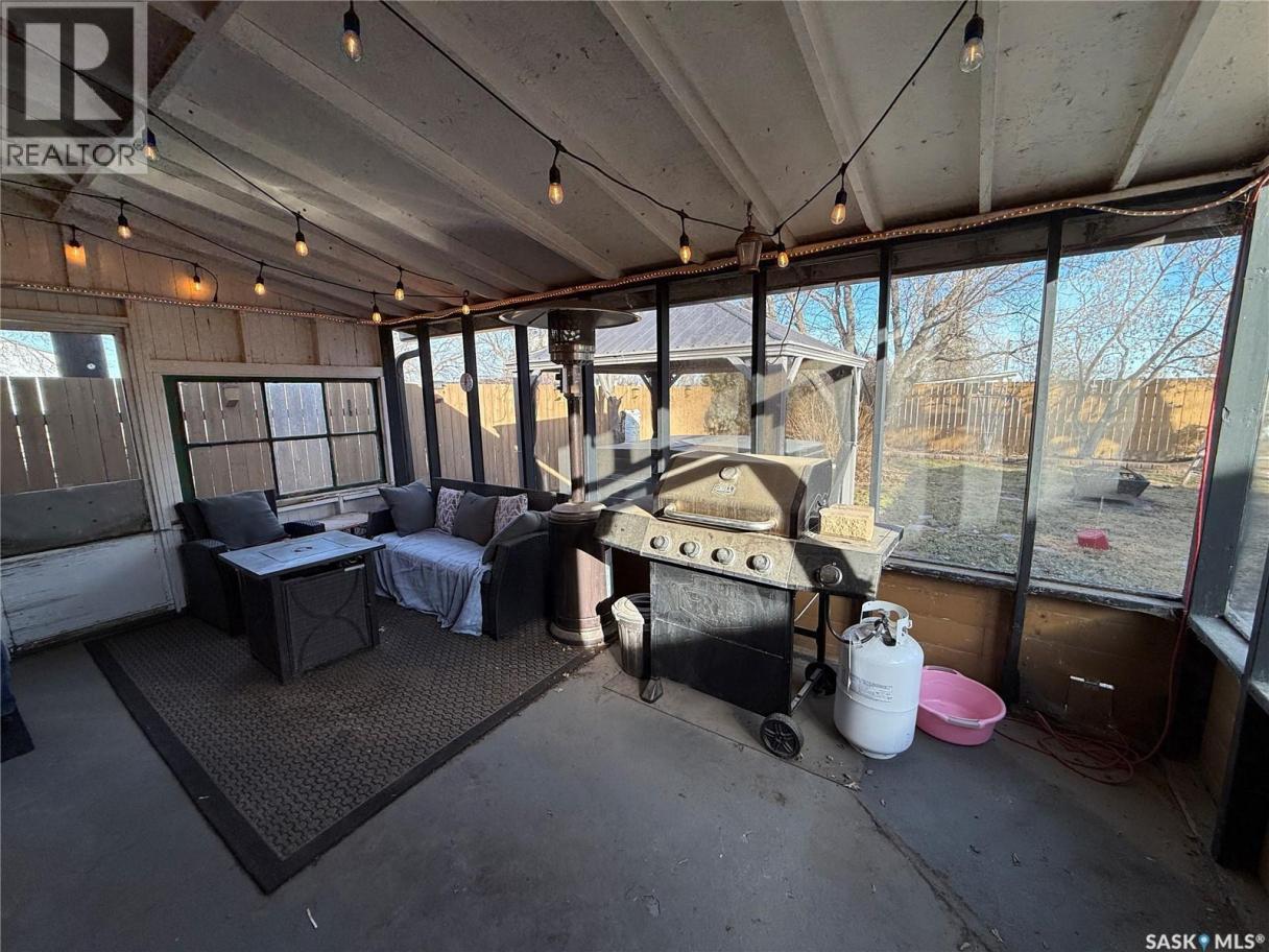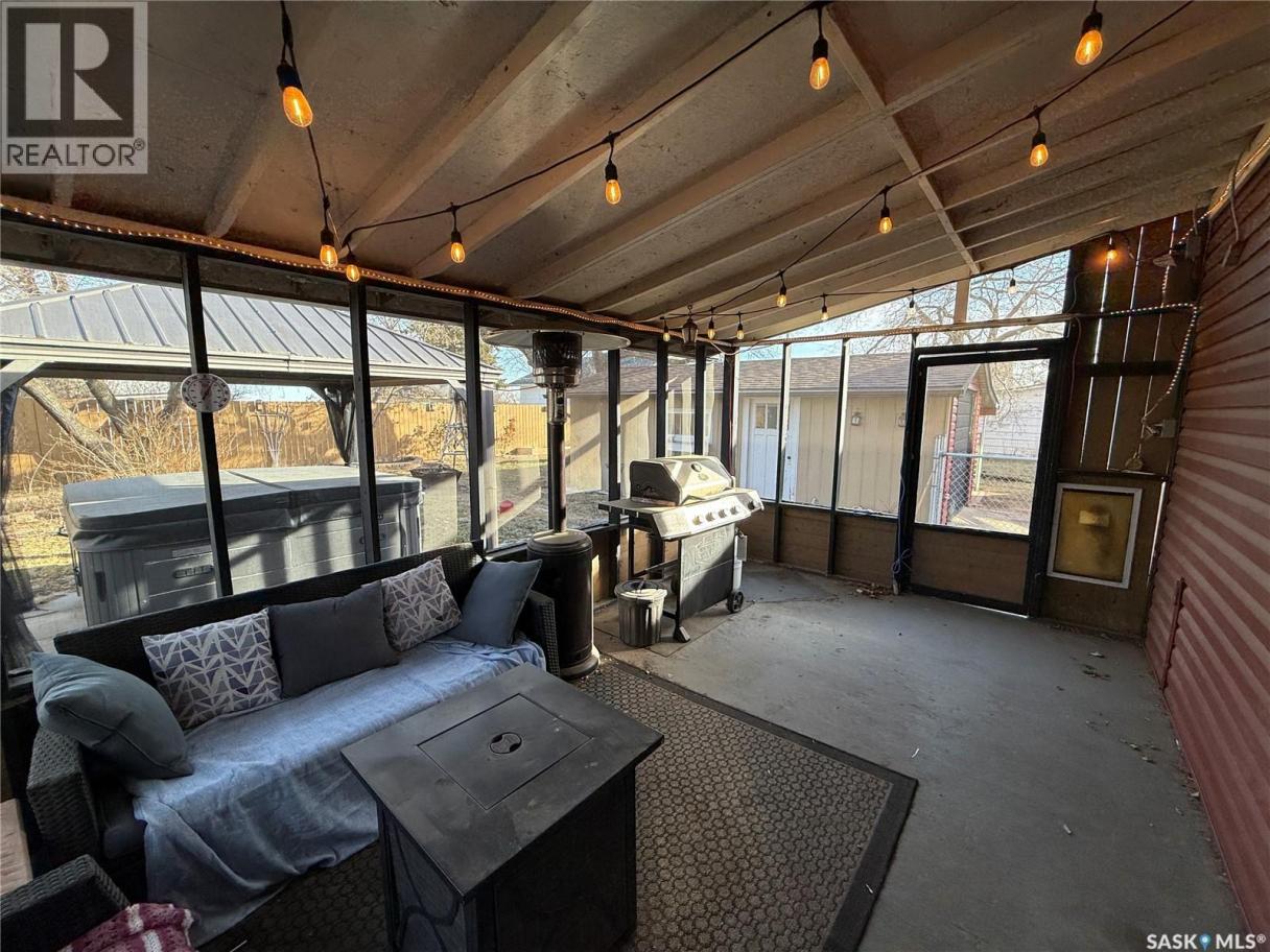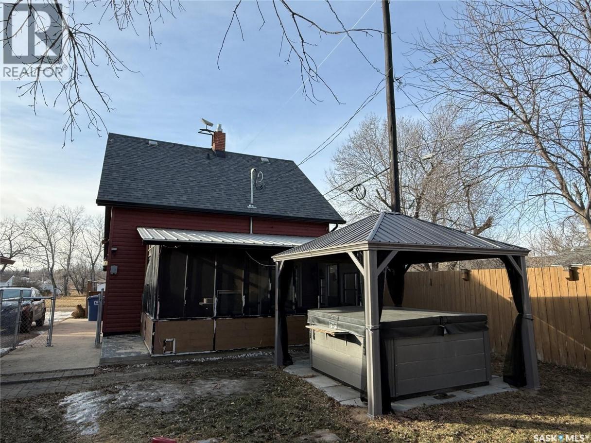 Well-kept and welcoming Radville home with great curb appeal and extensive updates in a quiet area of town. This 1 1/2 storey property features 3 bedrooms on the second floor, a renovated main floor bathroom, and a functional layout with a front entrance mudroom. Enjoy the fully developed, fenced yard with a screened patio, plus a hot tub with gazebo included. The detached garage is great for storage and projects, heated with an included pellet stove. Bonus newly built 15x30’ multi-purpose building has endless potential and was originally planned to be a simulator room. Key updates: furnace (2013), fence (2015), most windows & patio door (2016/17), shingles (2018), siding/soffit/fascia & front door (2019), bathroom (2019), cork foundation coating (2019), electrical panel (2020), RO system (2020), central air (2021), water softener and on demand water heater (2024). Move-in ready with comfort and value throughout. (id:6769)