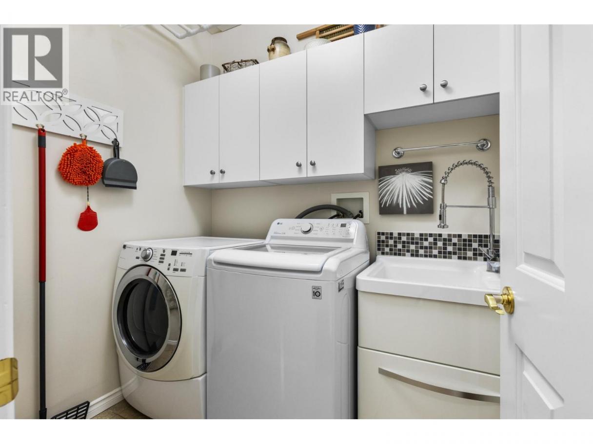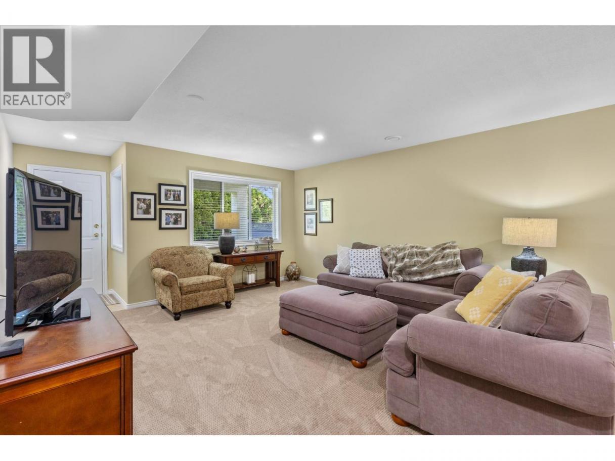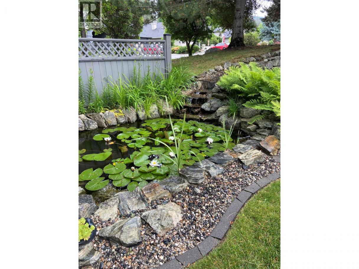 Beautiful Walkout Rancher in the Gallaghers Canyon Golf Community. From the moment you step inside, you’ll be captivated by the grand interior, featuring gleaming hardwood floors, soaring ceilings and large picture windows. The updated kitchen boasts stylish two-tone cabinetry, stainless steel appliances, a functional layout and a striking 3-sided gas fireplace. The living room is a sophisticated retreat, perfect for unwinding after a round of golf or hosting friends and family. The primary suite is complete with a spa-inspired ensuite, a massive walk-in tiled shower, and a generous walk-in closet. Also on the main level is a bright second bedroom and a convenient laundry room. Downstairs, the fully finished walkout lower level offers suite potential with a separate entrance, two additional bedrooms, a den/media room, a spacious family room, and a summer kitchen—ideal for guests or extended family. The outdoor living space is nothing short of spectacular. At the front, a large courtyard sets the tone for relaxed mornings & evening gatherings, while a tranquil water feature with a stream and pond adds to the peaceful ambiance. Additional upgrades include a new exposed aggregate driveway, new asphalt roof, and a recently replaced hot water tank. Enjoy top-tier amenities including an indoor pool, whirlpool, fitness center, pickleball, games room, club rooms, and library. In addition, there is a ""coming soon"" daycare to serve the families of the East Kelowna Area! (id:6769)