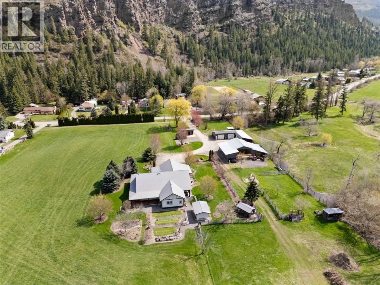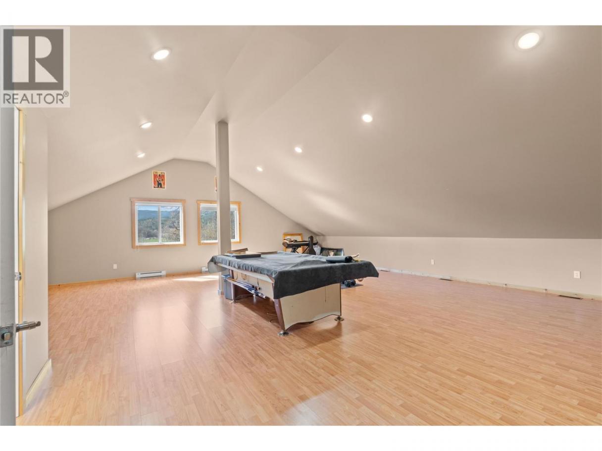 An extraordinary private retreat awaits with this impeccably built custom home set on 17 level, fertile acres with frontage on the Salmon River. This property offers the perfect balance of luxury, comfort, and outstanding functionality in a truly breathtaking setting. The spacious 3-bedroom plus den, 4-bath home features an open-concept design with soaring pine ceilings in the living and dining areas. At the heart of the home is a stunning kitchen complete with custom birch cabinetry, a large eat-up island with quartz countertops, walk-in pantry, and coffee station. The inviting living room offers a cozy wood stove, expansive windows that fill the space with light, and access to a wraparound deck. The main level includes a generous primary suite with walk-in closet and ensuite, two additional bedrooms connected by a Jack-and-Jill bathroom, a spacious office/den, and a large laundry room. Upstairs, a finished bonus room provides excellent space for a family or games room and includes its own bathroom and pool table. Additional highlights include geothermal heating and cooling, polished concrete floors, and a triple-car garage. Outside, the property has multiple shops, workshops, and storage buildings including two shops with overhead doors (27x21 and 27x18), additional shops (24x19 and 20x20), two open pole barns (40x19 and 40x26), and a massive RV storage building (52x15) with a 12'10"" overhead door. The main shops are serviced with dedicated 200 amp power. GST applicable. (id:6769)