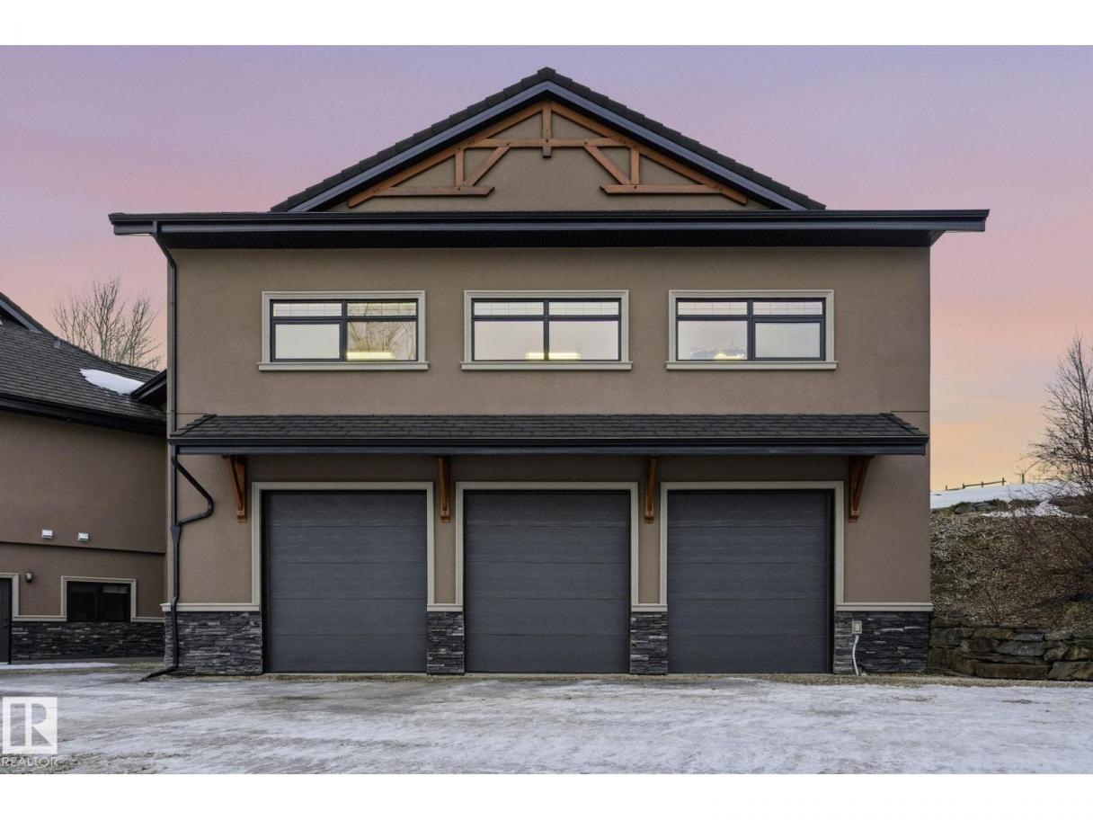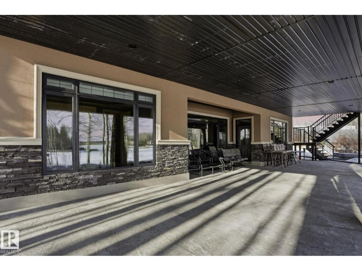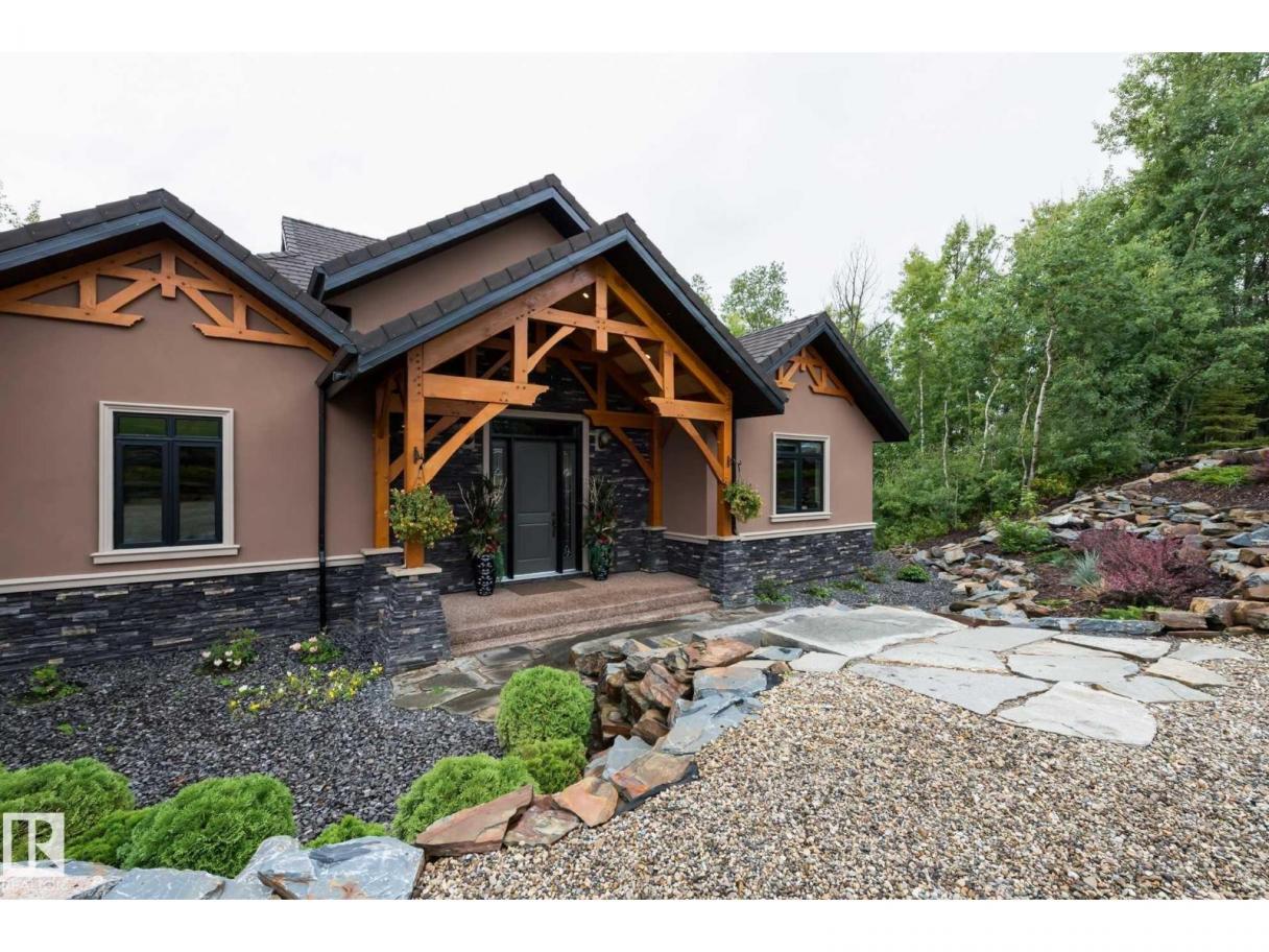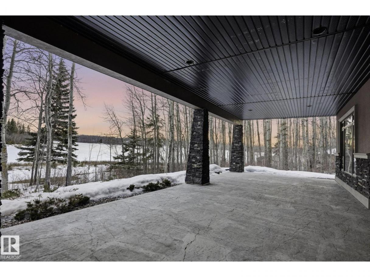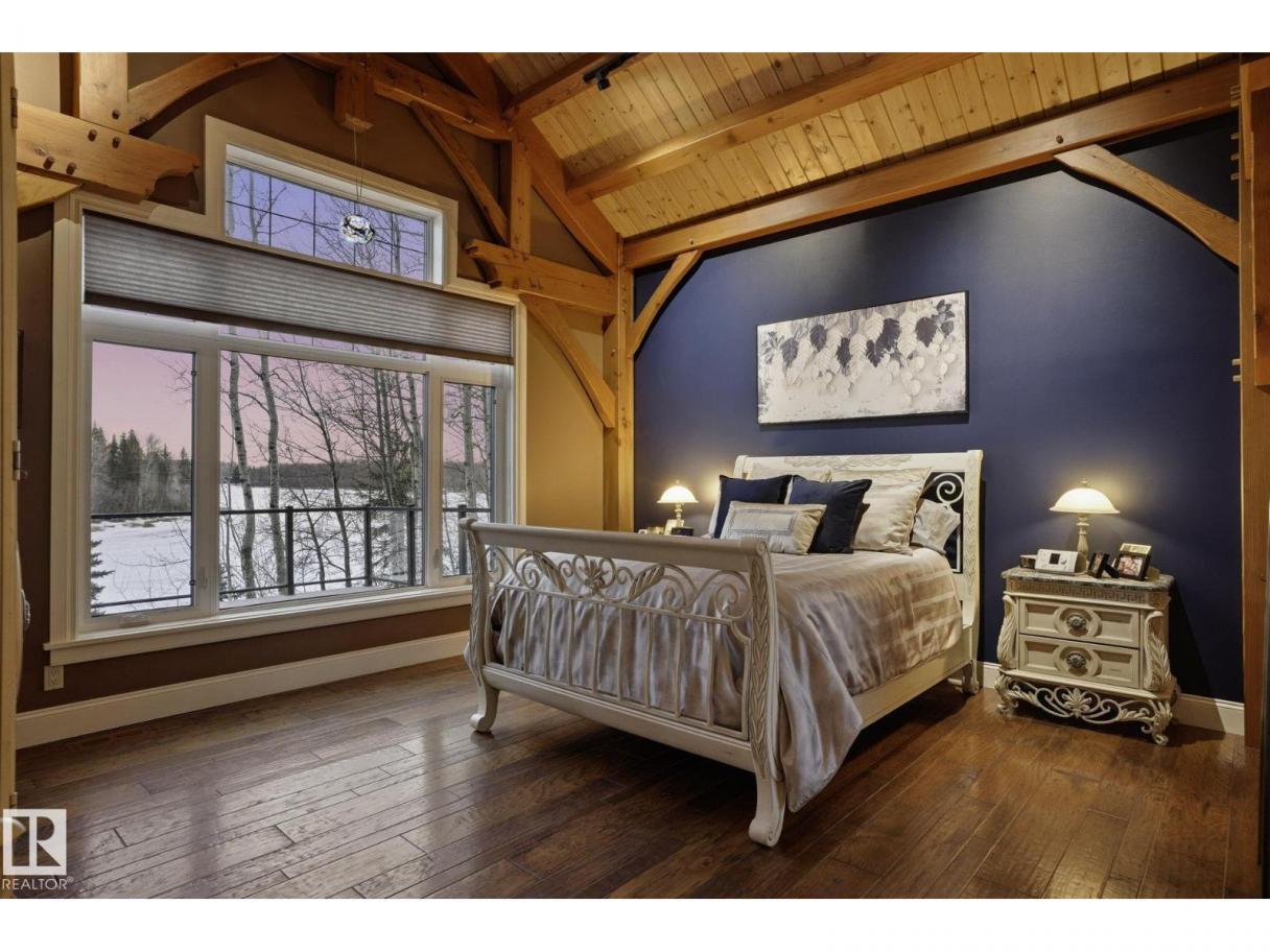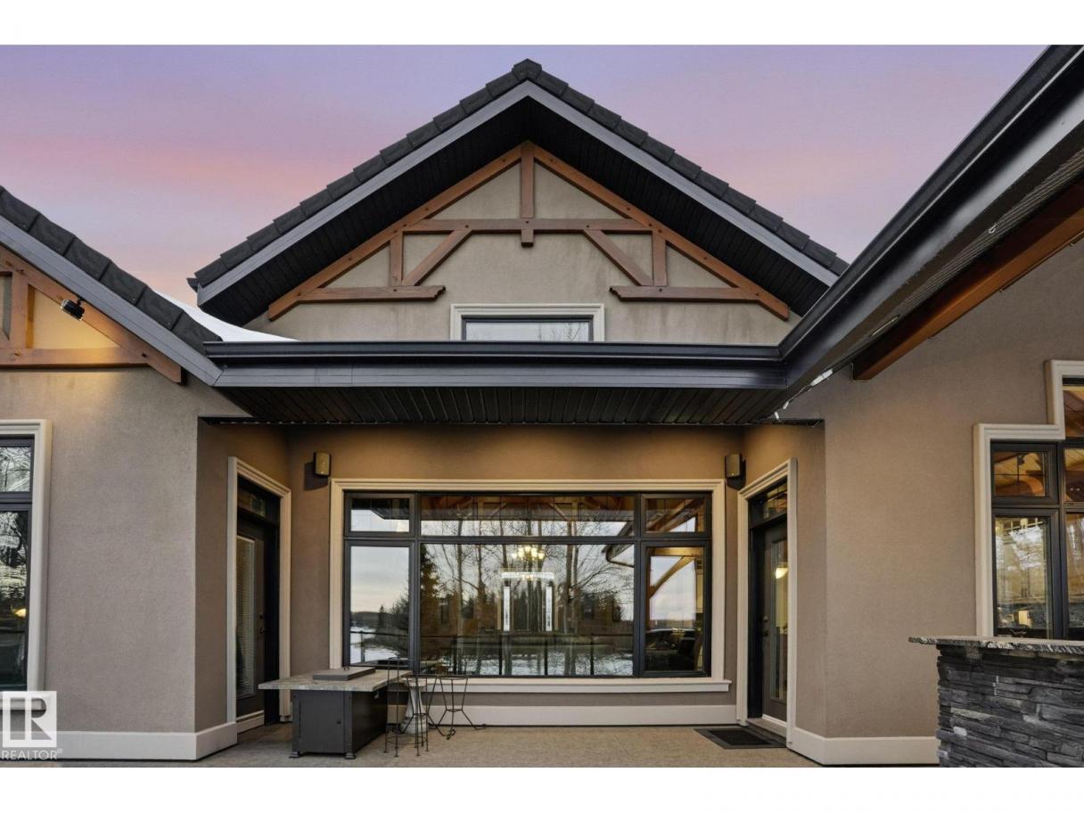 This timber frame home sits on over 500 feet of lakefront shoreline in a quiet, private corner of Jackfish Lake. The design centers on lake views, w/the structure carefully placed among the surrounding woods for a natural, integrated feel. The property includes two large stacked 30' x 40' garages: one set up as a clean showroom space, the other as a functional workshop. With 11–12 foot ceilings, 9'x9' upper doors & 9'x10' lower doors. In-floor heating runs throughout the home, including the basement, both garages, & the main floor (which required pouring 3 inches of concrete across the entire level). Outside, the fully equipped outdoor kitchen is covered & heated, so you can cook and gather comfortably in any weather while enjoying the lake views and peaceful surroundings. With a designated RV area, you're all set up to handle guests. Jackfish Lake is known to be clean & calm, with many bays & only short docks required. 20 mins to Spruce Grove, 35 mins to Edmonton. Your natural oasis awaits. (id:6769)