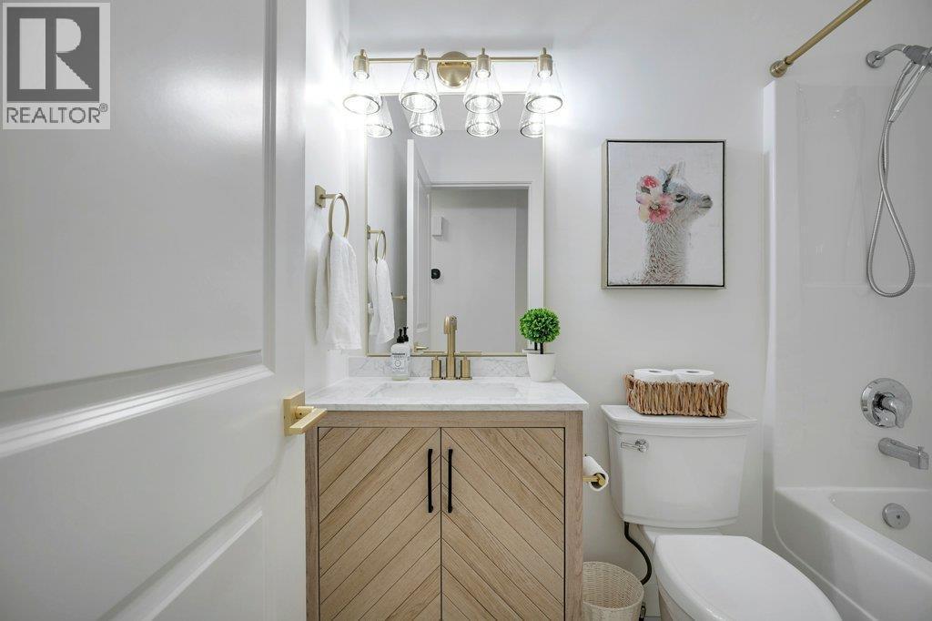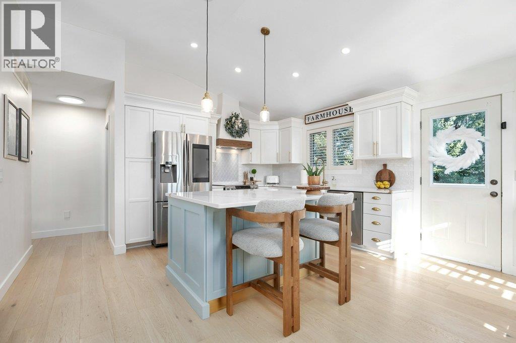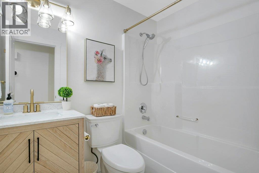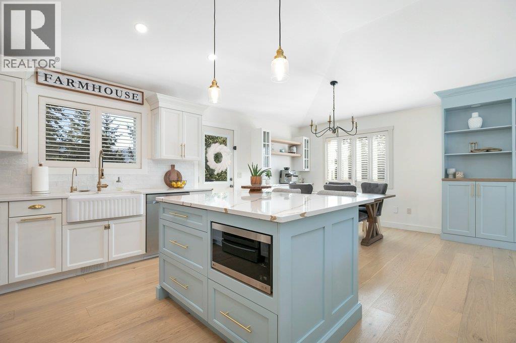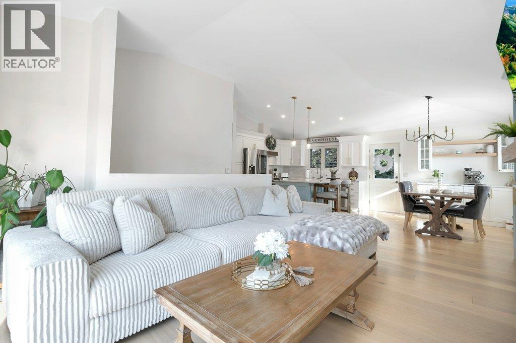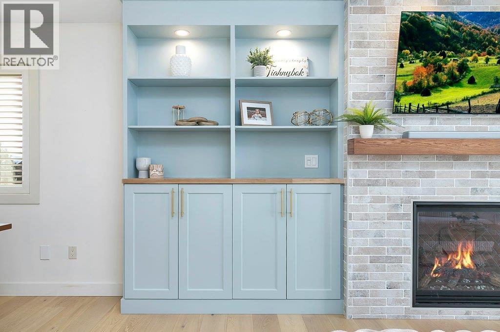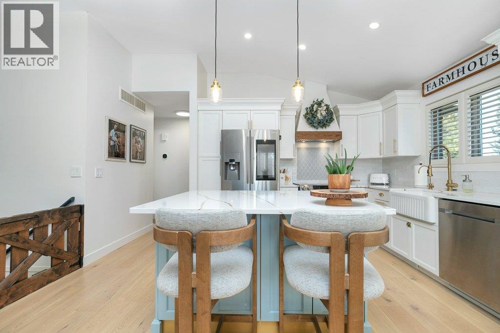 Welcome to this beautifully updated family home in the highly sought-after The Lakes community. Set against a backdrop of stunning mountain views, this 5-bedroom, 3-bathroom home offers the perfect blend of modern upgrades, comfort, and privacy—complete with a spacious, fully fenced backyard ideal for kids, pets, and outdoor entertaining. The bright main living area has been thoughtfully refreshed with elegant white oak hardwood flooring, fresh paint, and stylish new light fixtures. The updated kitchen is both functional and inviting, featuring quartz countertops, a large farmhouse sink, new faucets, a spacious island, and a dedicated coffee bar—perfect for busy mornings or relaxed weekends at home. A new gas fireplace with custom built-in cabinetry creates a warm, welcoming focal point in the living space. Downstairs, the lower-level bathroom offers the added luxury of heated floors. Additional upgrades include a new washer and dryer, an efficient hot-water-on-demand system, reverse osmosis water filtration, and a full irrigation system for both the front and backyard. The exterior has also been freshly painted in a modern midnight blue, adding to the home’s standout curb appeal. There is plenty of parking with a double attached garage and generous RV parking along the side to accommodate your large toys. This move-in-ready home offers stylish updates, practical features, and a prime location in one of Lake Country’s most desirable neighbourhoods. (id:6769)