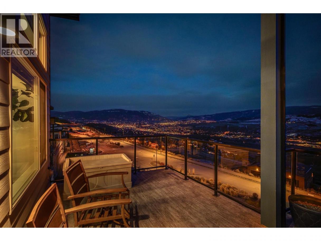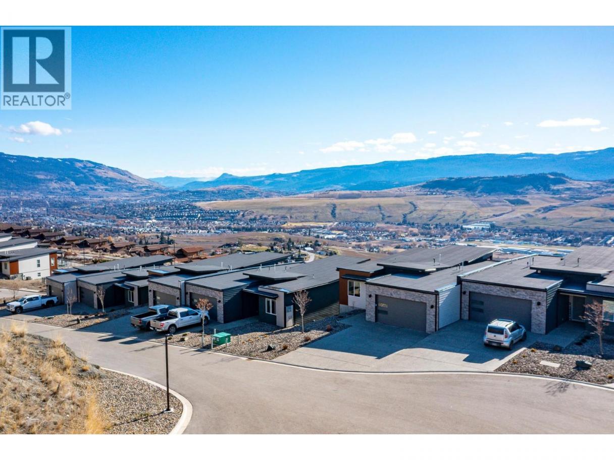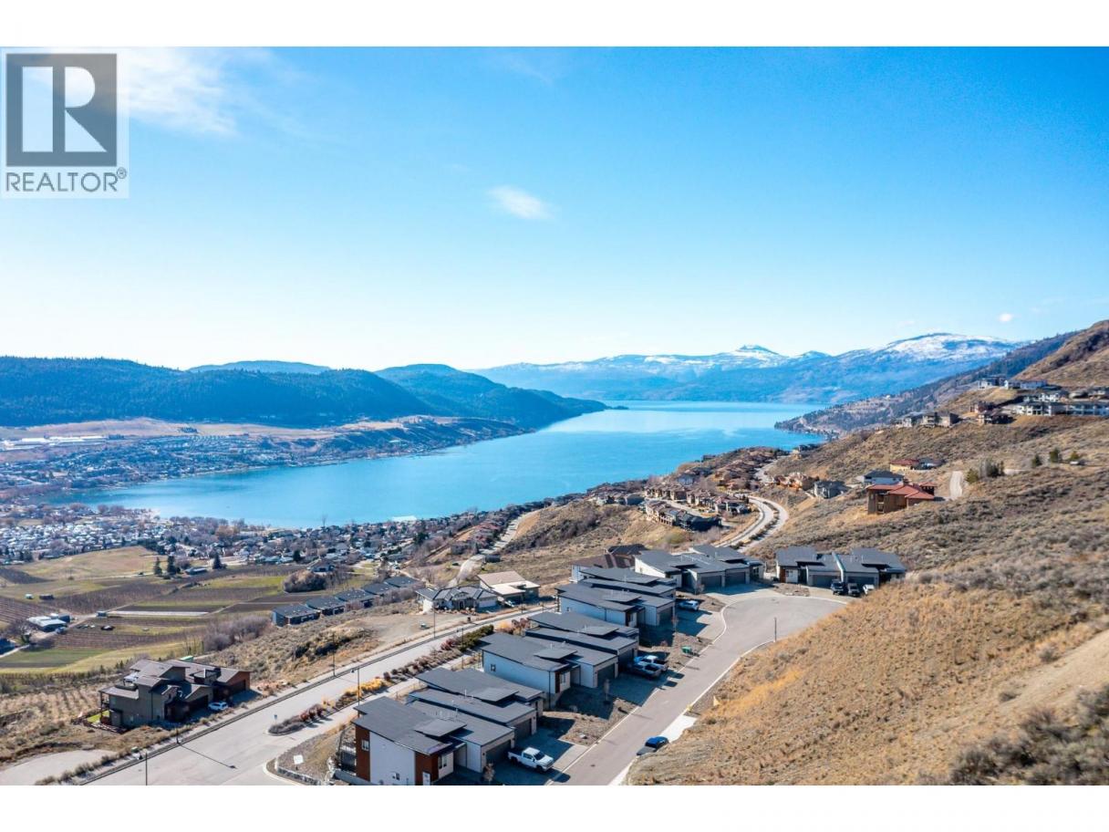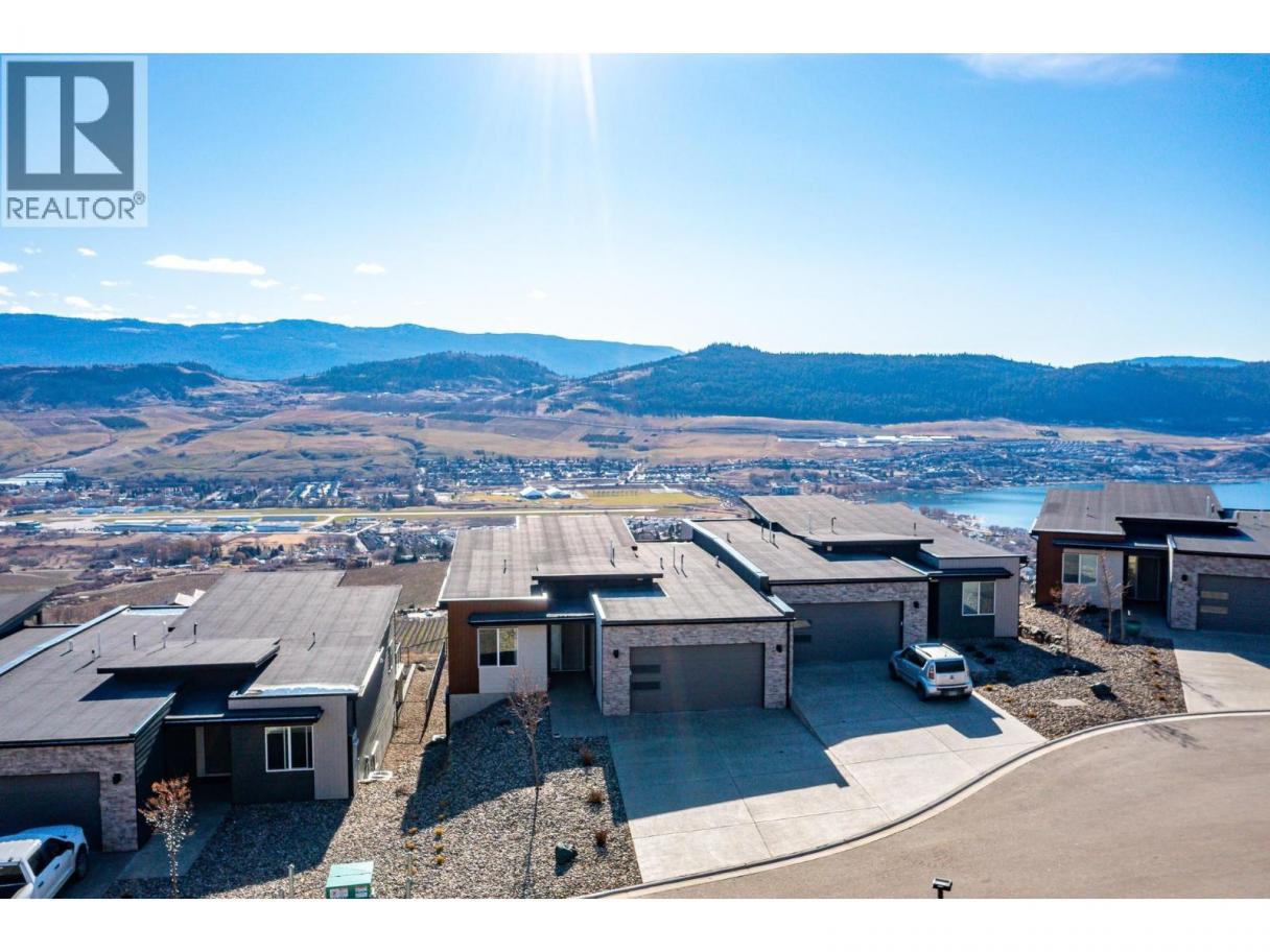 Spectacular 24-hour view! Panoramic valley and Okanagan Lake during the day and mesmerizing City of Vernon lights glittering at night. Located on a quiet cul-de-sac of only 10 homes, this townhome unit is perfect for an effortless lifestyle whether you are downsizing or just busy! The level entry main floor is designed for everyday convenience including open floor plan, primary suite & ensuite with heated floors plus second bedroom and bath and laundry! The great room includes a fabulous kitchen with quartz counters, huge island, butler’s pantry and high-end appliances! The walk-out lower offers 2 generous bedrooms, full bath, family room and loads of storage – perfect for family or guests! Nearly brand new with many thoughtful custom features through out! Soft white palette throughout enhances the view from the walls of windows and lofty ceilings on both levels! Full length, partially covered deck with automatic solar screens for sun and breezes. Full length covered patio that flows to the private greenscaped back yard. Many custom features! Vinyl flooring, all quartz counters, quality lighting, automated custom window blinds, hot water on demand, deep driveway and garage that will fit your truck! Scoot up to the Rise Golf Course and stop at The Edge restaurant for happy hour! (id:6769)