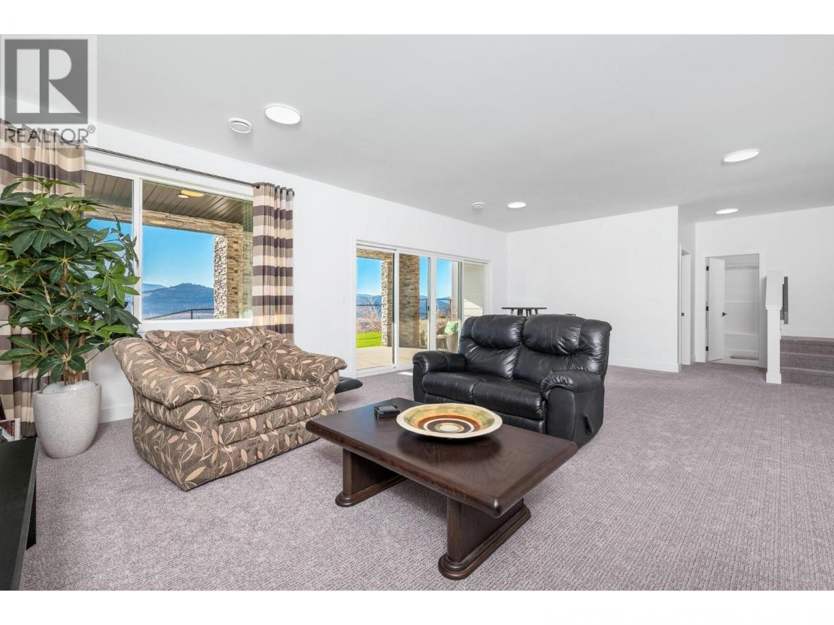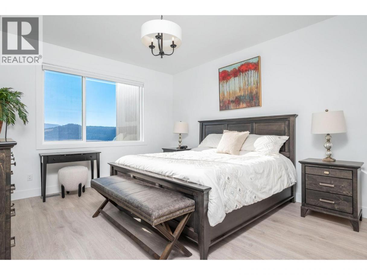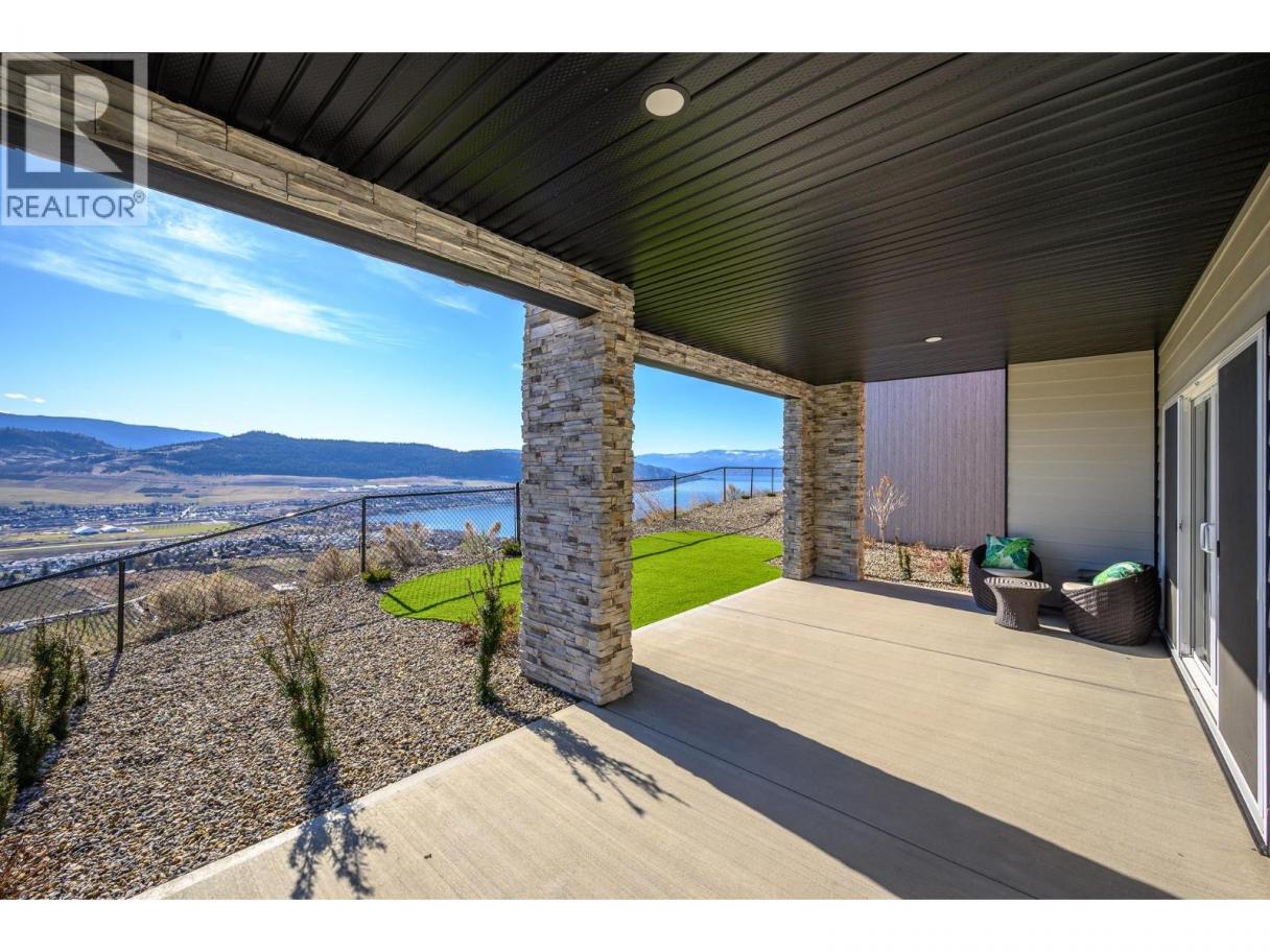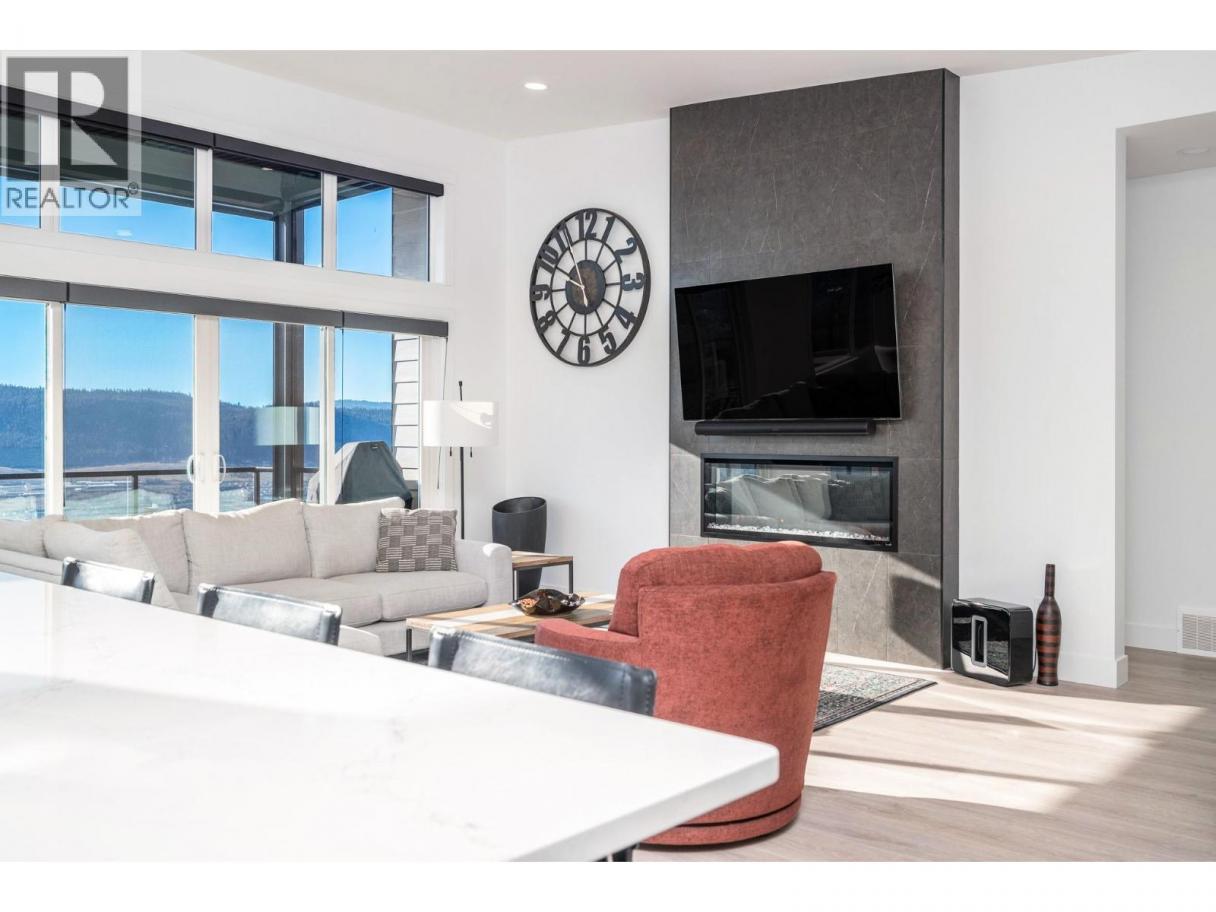 Spectacular 24-hour view! Panoramic valley and Okanagan Lake during the day and mesmerizing City of Vernon lights glittering at night. Located on a quiet cul-de-sac of only 10 homes, this townhome unit is perfect for an effortless lifestyle whether you are downsizing or just busy! The level entry main floor is designed for everyday convenience including open floor plan, primary suite & ensuite with heated floors plus second bedroom and bath and laundry! The great room includes a fabulous kitchen with quartz counters, huge island, butler’s pantry and high-end appliances! The walk-out lower offers 2 generous bedrooms, full bath, family room and loads of storage – perfect for family or guests! Nearly brand new with many thoughtful custom features through out! Soft white palette throughout enhances the view from the walls of windows and lofty ceilings on both levels! Full length, partially covered deck with automatic solar screens for sun and breezes. Full length covered patio that flows to the private greenscaped back yard. Many custom features! Vinyl flooring, all quartz counters, quality lighting, automated custom window blinds, hot water on demand, deep driveway and garage that will fit your truck! Scoot up to the Rise Golf Course and stop at The Edge restaurant for happy hour! (id:6769)