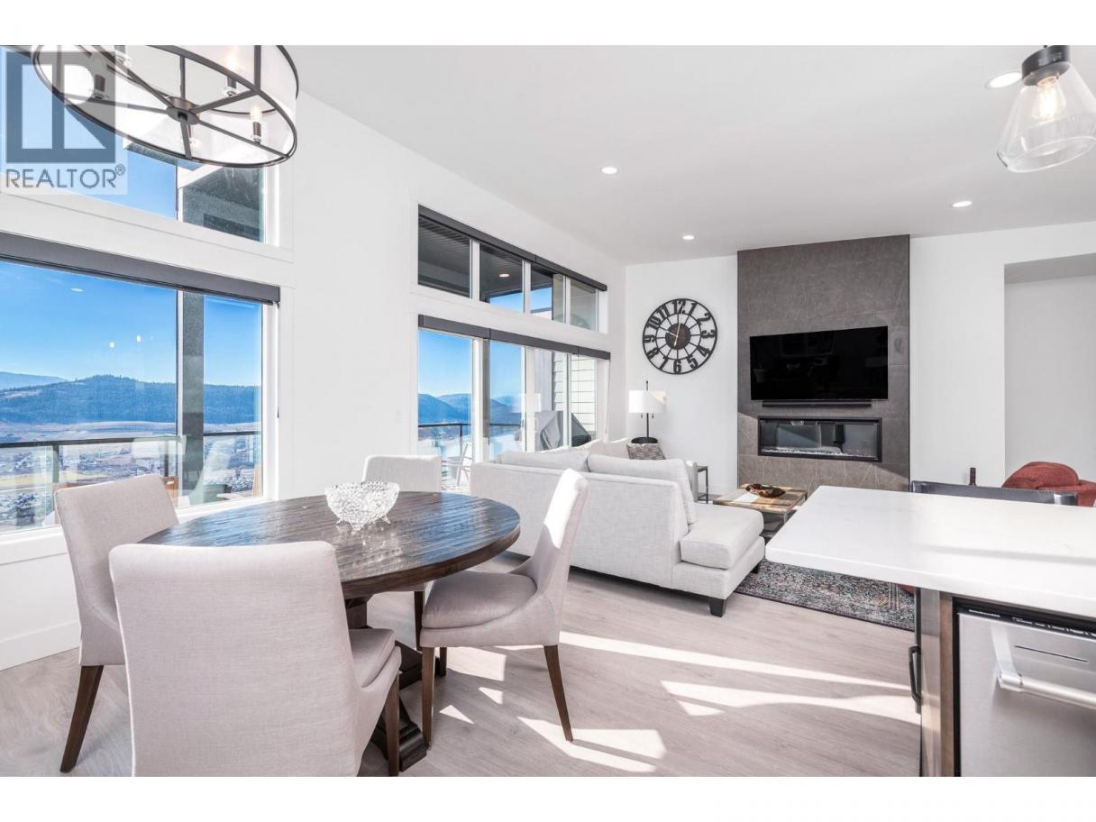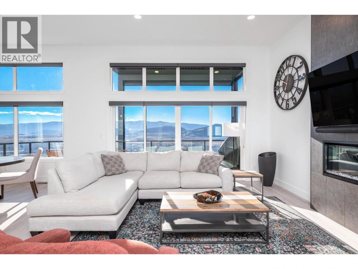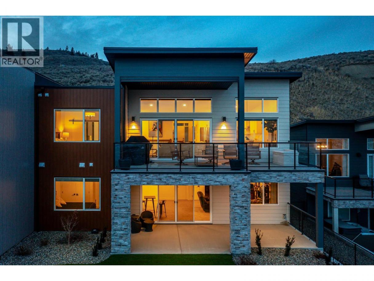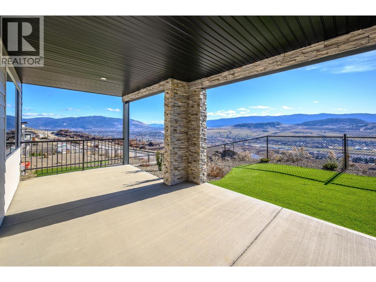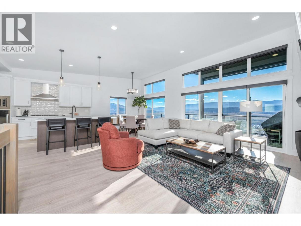 Spectacular 24-hour view! Panoramic valley and Okanagan Lake during the day and mesmerizing City of Vernon lights glittering at night. Located on a quiet cul-de-sac of only 10 homes, this townhome unit is perfect for an effortless lifestyle whether you are downsizing or just busy! The level entry main floor is designed for everyday convenience including open floor plan, primary suite & ensuite with heated floors plus second bedroom and bath and laundry! The great room includes a fabulous kitchen with quartz counters, huge island, butler’s pantry and high-end appliances! The walk-out lower offers 2 generous bedrooms, full bath, family room and loads of storage – perfect for family or guests! Nearly brand new with many thoughtful custom features through out! Soft white palette throughout enhances the view from the walls of windows and lofty ceilings on both levels! Full length, partially covered deck with automatic solar screens for sun and breezes. Full length covered patio that flows to the private greenscaped back yard. Many custom features! Vinyl flooring, all quartz counters, quality lighting, automated custom window blinds, hot water on demand, deep driveway and garage that will fit your truck! Scoot up to the Rise Golf Course and stop at The Edge restaurant for happy hour! (id:6769)