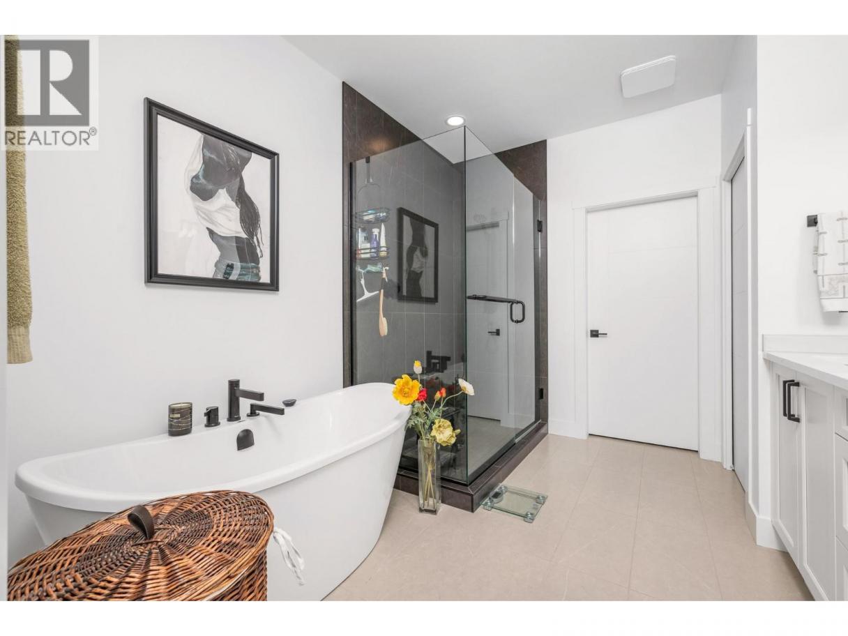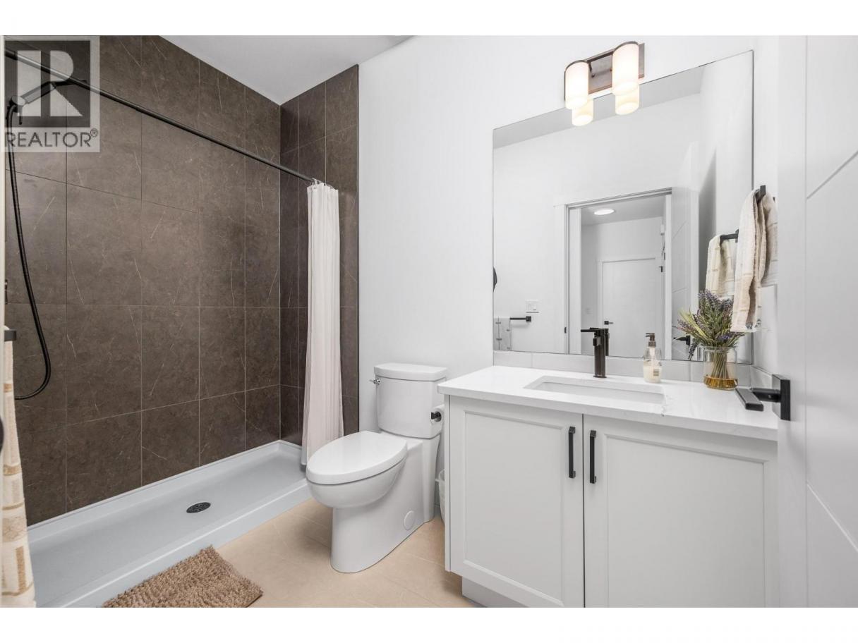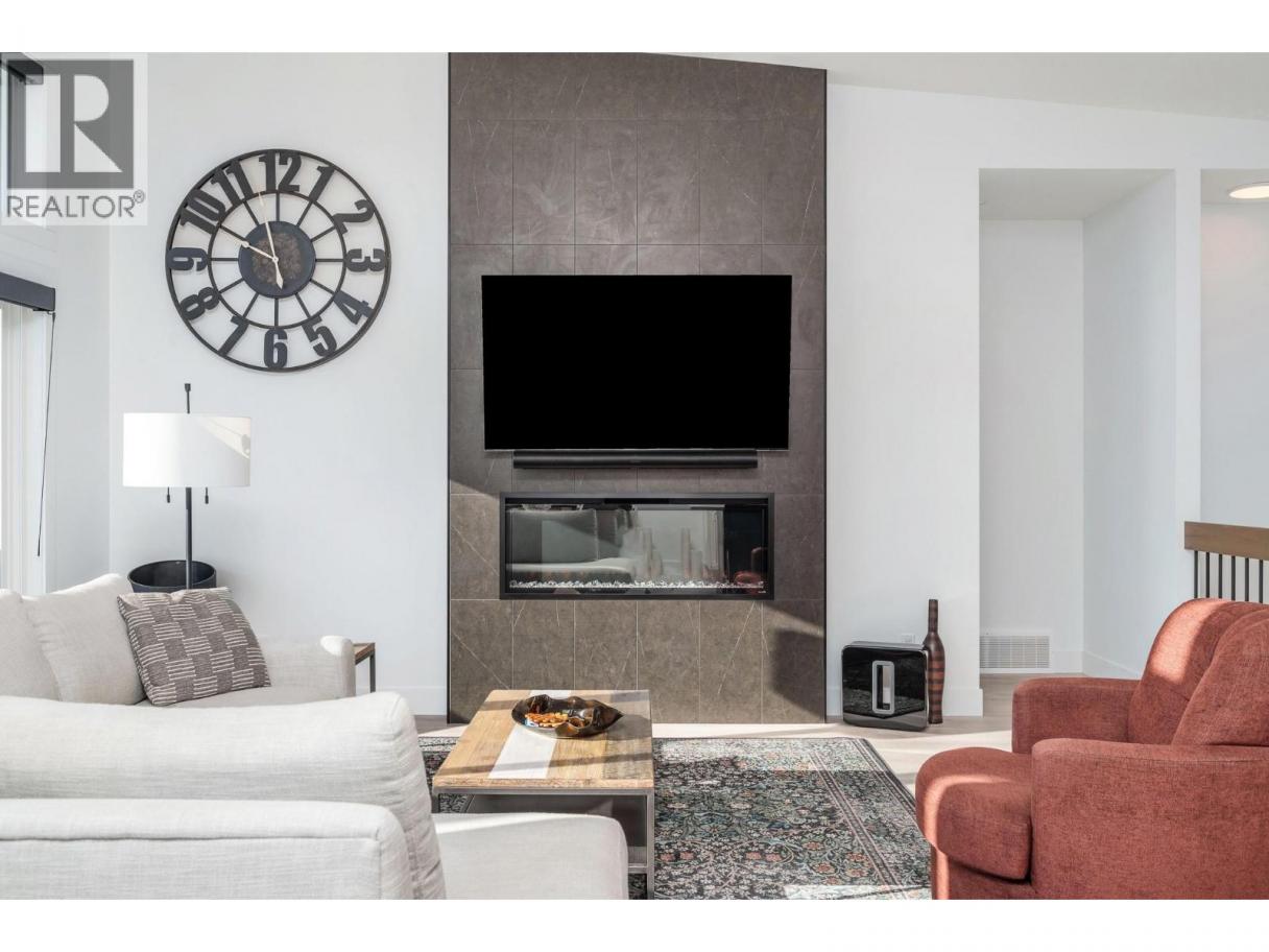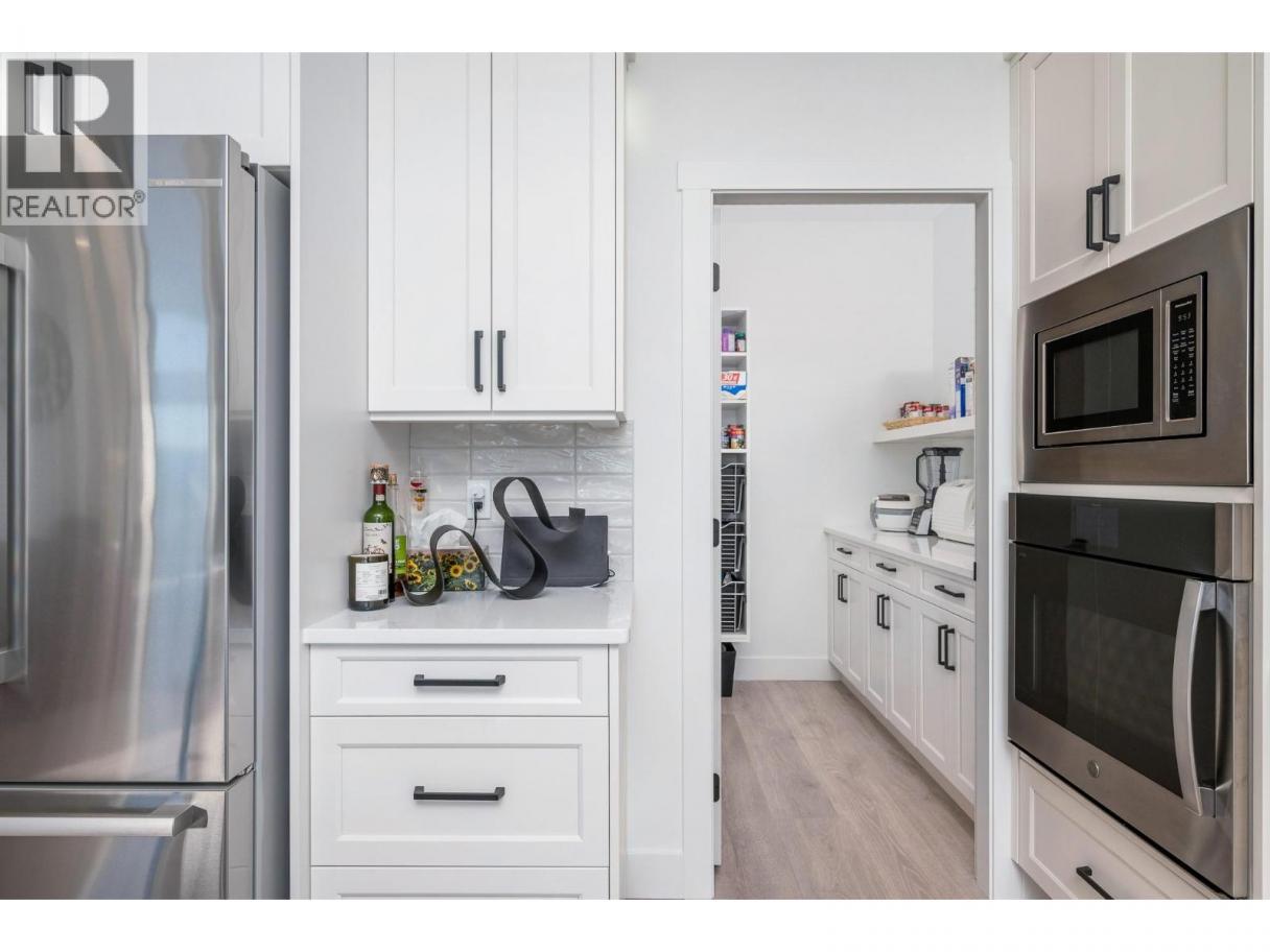 Spectacular 24-hour view! Panoramic valley and Okanagan Lake during the day and mesmerizing City of Vernon lights glittering at night. Located on a quiet cul-de-sac of only 10 homes, this townhome unit is perfect for an effortless lifestyle whether you are downsizing or just busy! The level entry main floor is designed for everyday convenience including open floor plan, primary suite & ensuite with heated floors plus second bedroom and bath and laundry! The great room includes a fabulous kitchen with quartz counters, huge island, butler’s pantry and high-end appliances! The walk-out lower offers 2 generous bedrooms, full bath, family room and loads of storage – perfect for family or guests! Nearly brand new with many thoughtful custom features through out! Soft white palette throughout enhances the view from the walls of windows and lofty ceilings on both levels! Full length, partially covered deck with automatic solar screens for sun and breezes. Full length covered patio that flows to the private greenscaped back yard. Many custom features! Vinyl flooring, all quartz counters, quality lighting, automated custom window blinds, hot water on demand, deep driveway and garage that will fit your truck! Scoot up to the Rise Golf Course and stop at The Edge restaurant for happy hour! (id:6769)