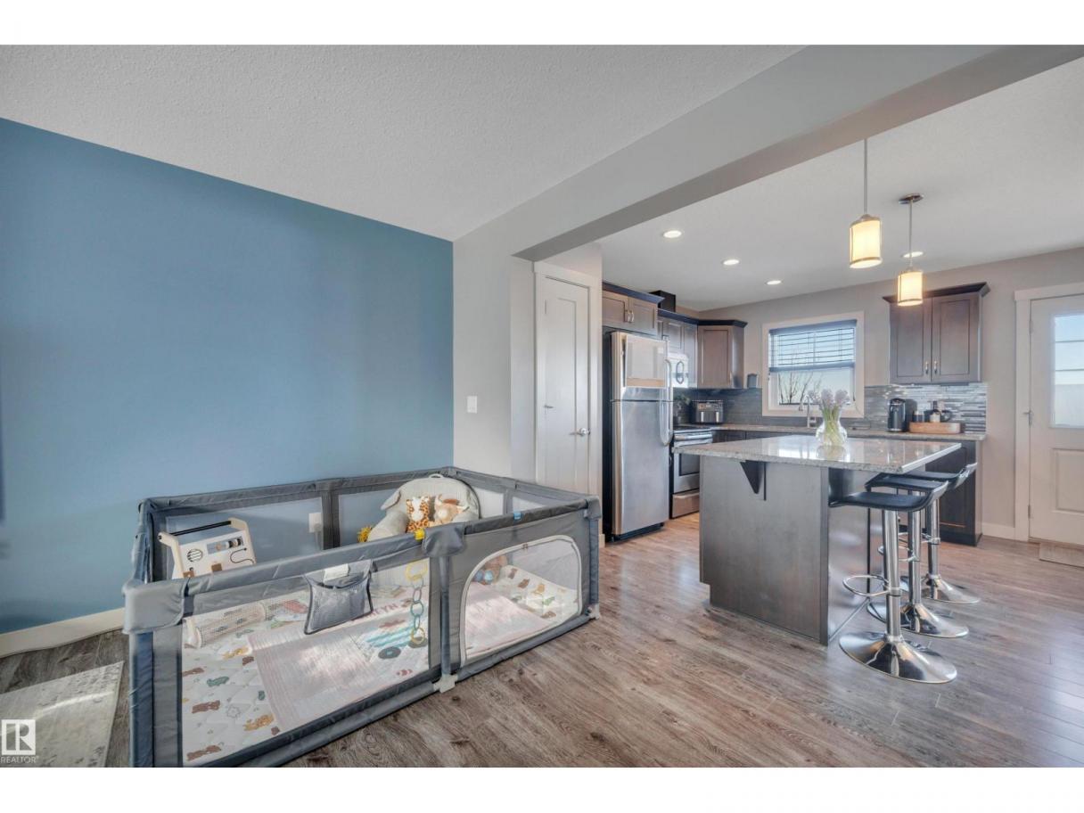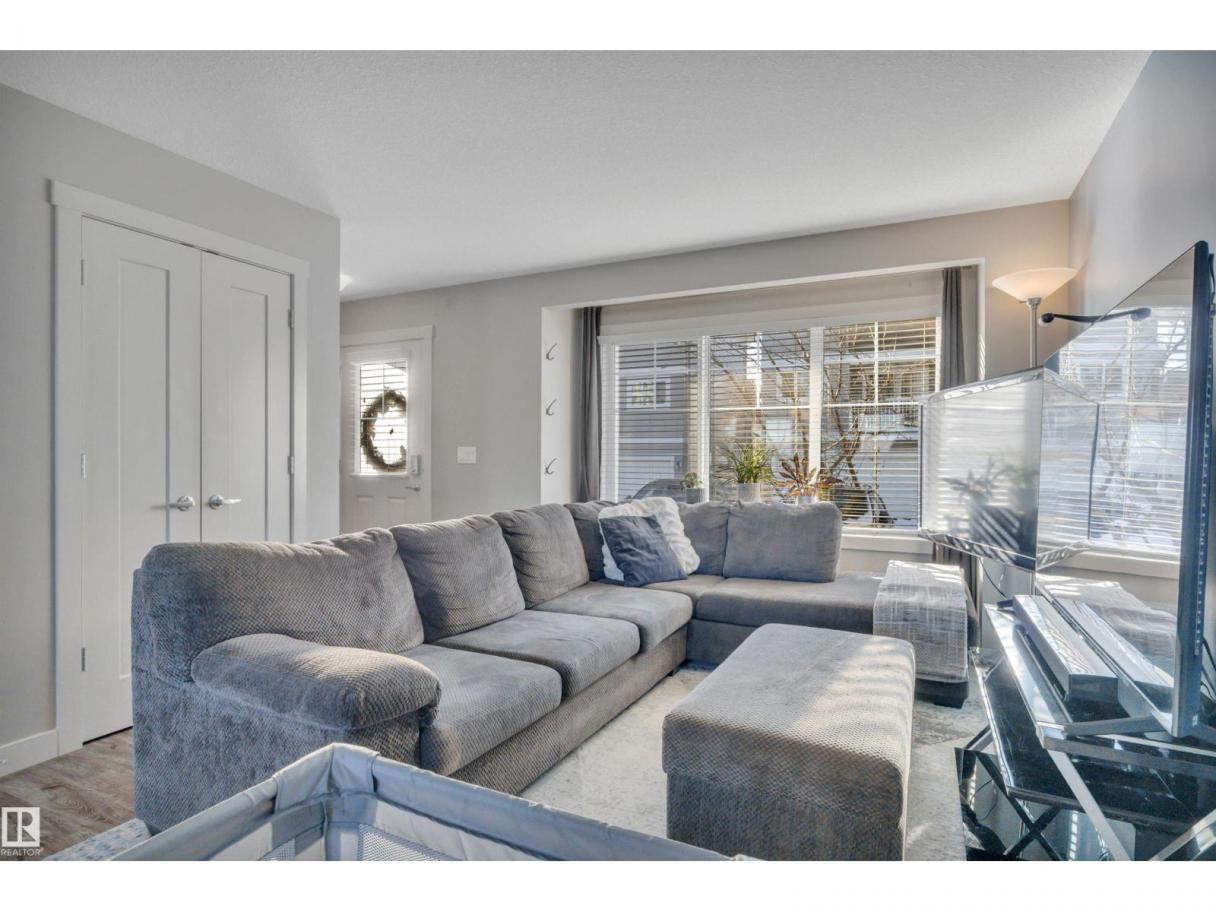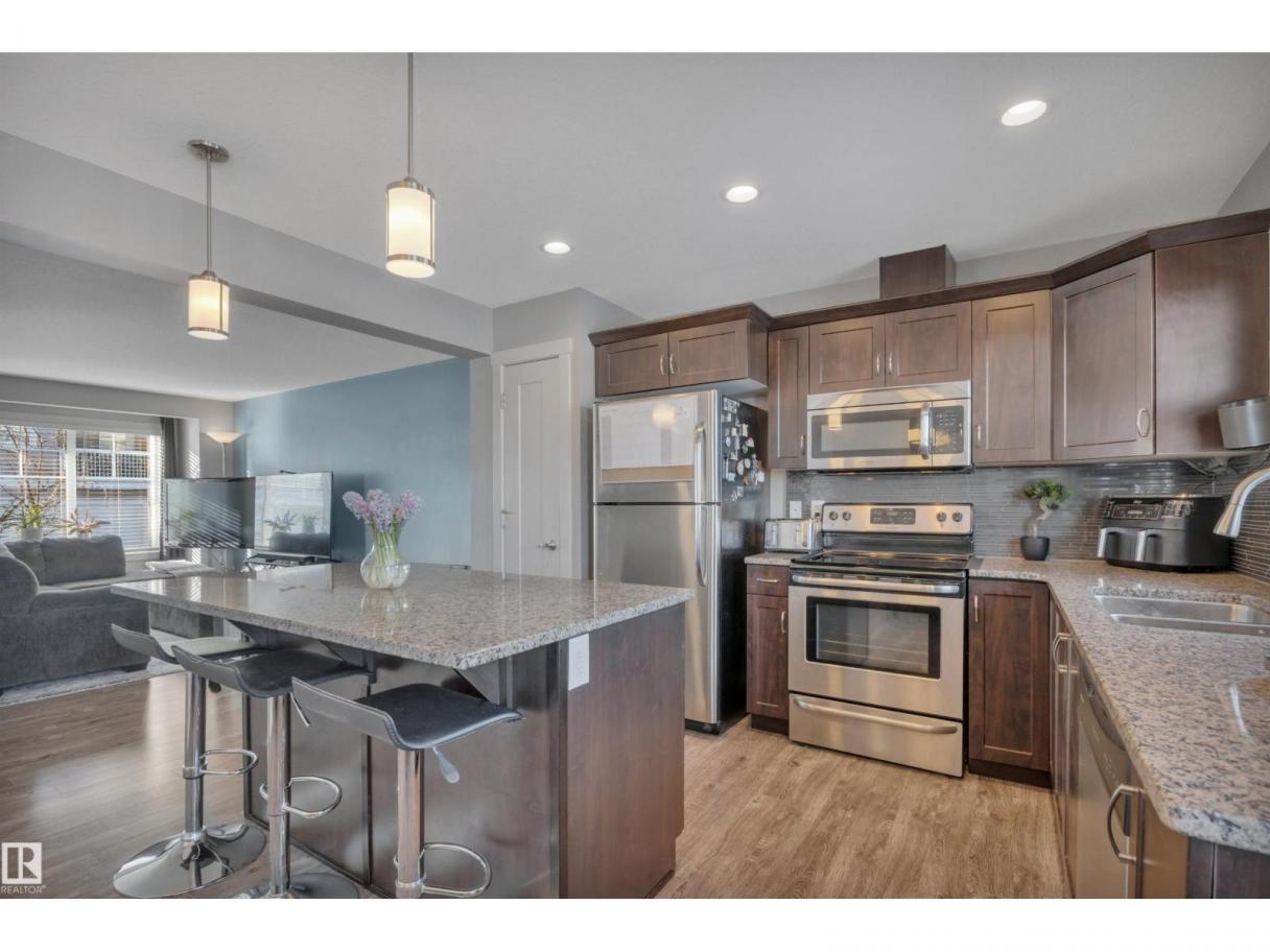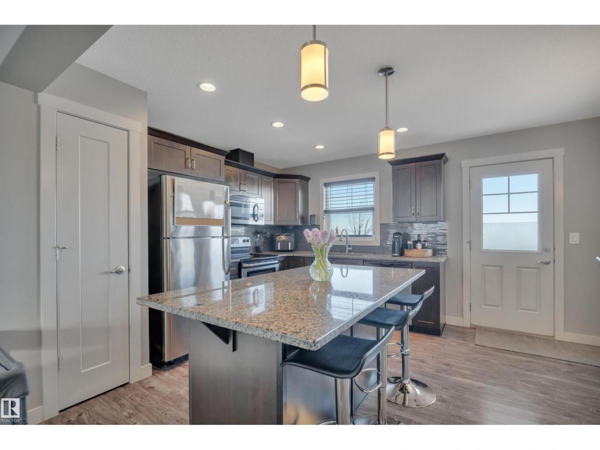Welcome to this beautifully maintained, bright & spacious end-unit townhouse offering comfort, style, and privacy. The open-concept main floor features a functional layout perfect for everyday living and entertaining. The modern kitchen is equipped with stainless steel appliances, granite countertops, a large island, and a convenient pantry. Upstairs you’ll find three well-sized bedrooms and a full bath, including a generous primary suite complete with a walk-in closet and cozy electric fireplace. With two full bathrooms, a new washer, and an unfinished basement ready for your personal touch, this home offers excellent flexibility. Enjoy added privacy with no rear neighbours as the unit backs onto a large green space and comes with a good sized deck. Two titled parking stalls are located right out front, as well as visitor parking for added convenience. With low condo fees and a prime location near schools, shopping, public transit, and major roadways, this is an opportunity you don’t want to miss! (id:6769)