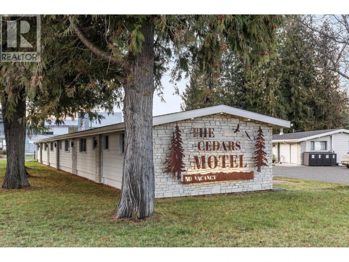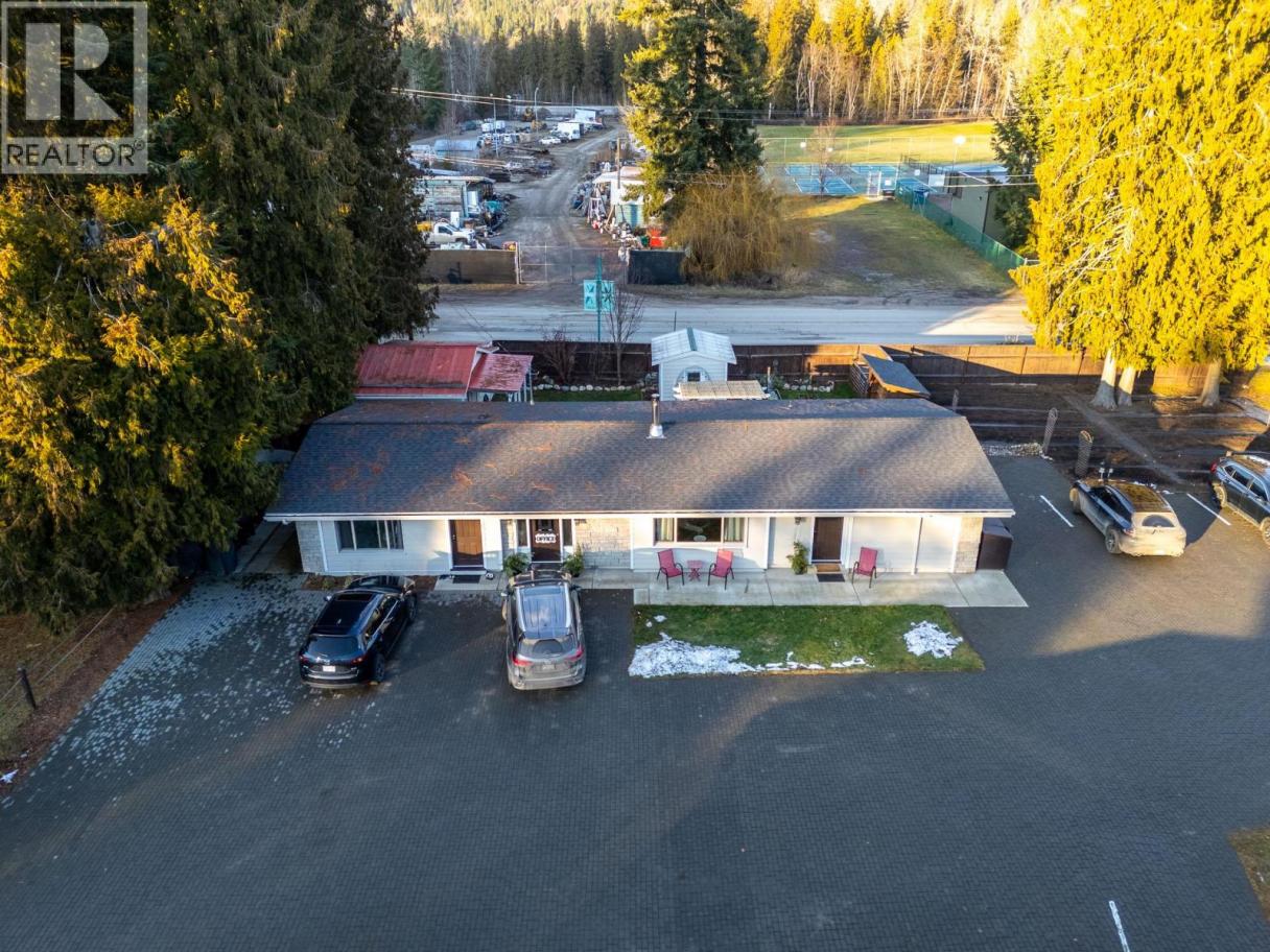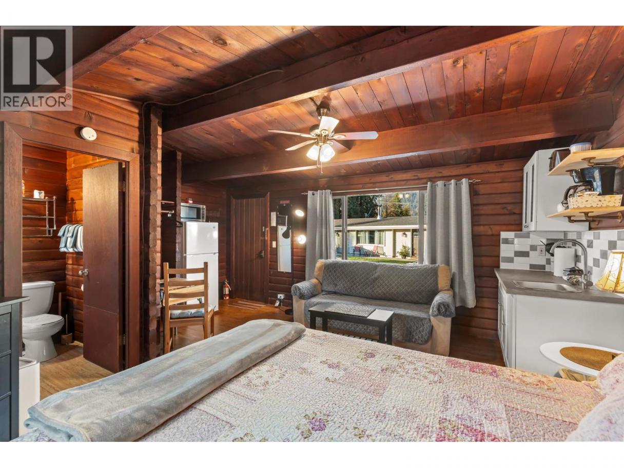 Exceptional turnkey motel investment opportunity, located in in the heart of Sicamous just two blocks from Shuswap Lake, this eight unit motel combines classic charm with modern updates and excellent rental income potential. The property features two separate buildings, including a caretaker suite, offering flexibility and convenience for both operators and guests. Units are thoughtfully designed with queen beds, pullout couches, Roku TVs, cable, window AC units, and kitchens or partial kitchens. Units 5–7 include full kitchens for guests seeking extended stays, while the caretaker suite boasts two bedrooms, a full bath with a double vanity, and a wood-burning stove for cozy comfort. Fully Renovated & Operational-Ready. Built in 1963 and upgraded extensively since 2022, the property features new wall insulation, hot water tanks servicing two units each, newer roofs (2021 & 2023), and Hardie exterior siding. Electrical and plumbing systems have been professionally reviewed and updated as needed. Guests enjoy city water and sewer service, while RV travelers have access to a connected sani-dump. Outdoor spaces include 20 uncovered parking stalls, a detached shed, and a greenhouse-like structure. Investment Highlights: The motel currently operates without a website, relying on phone bookings, creating room for growth in digital marketing and online reservations. High season runs June 15 – September 15, with a mix of short-term and a few informal long-term rentals. The business license and all operational contacts transfer with sale, making this a true turnkey opportunity. A caretaker is currently employed and would likely continue, ensuring smooth operations from day one. GST is applicable. (id:6769)