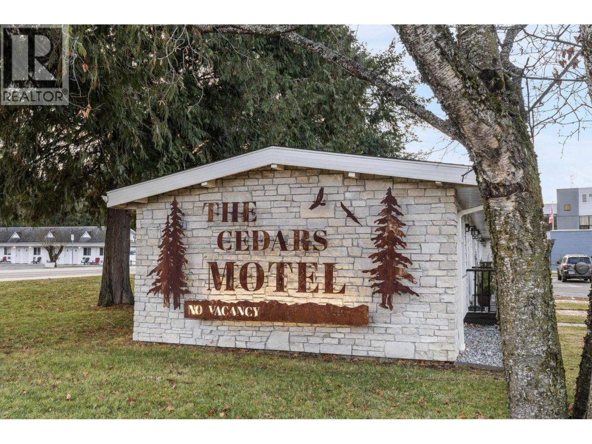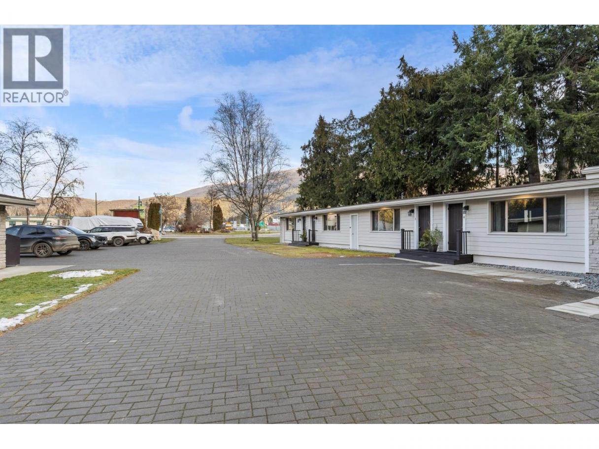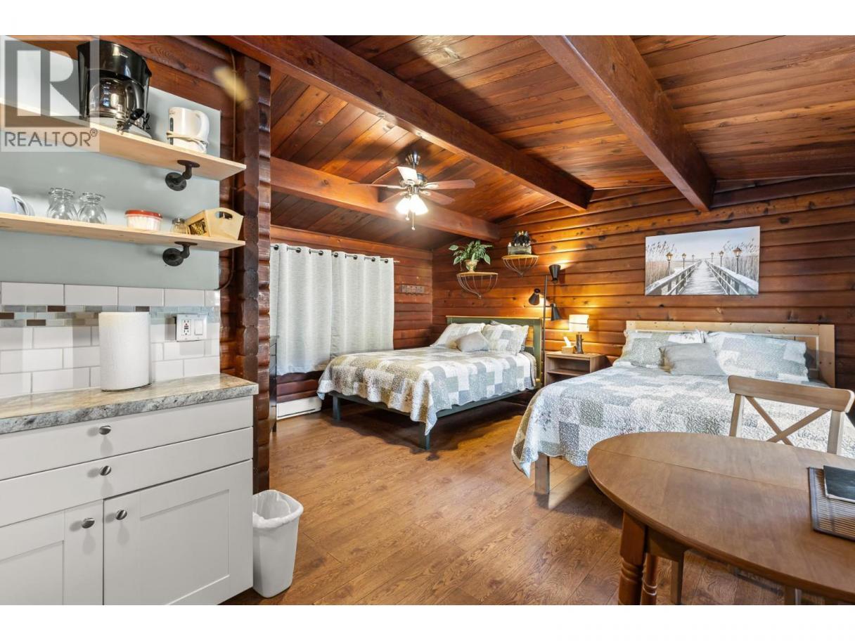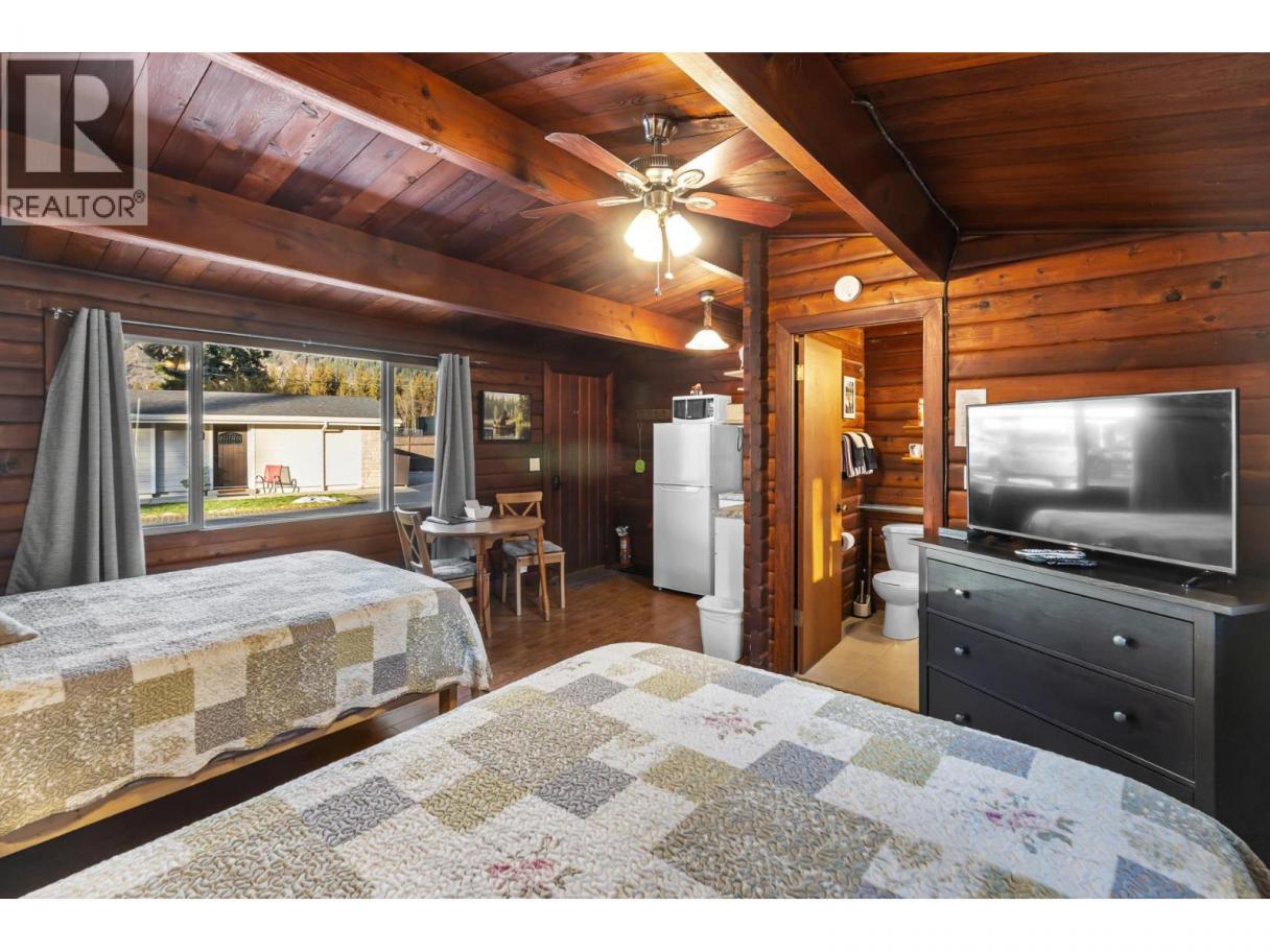 Exceptional turnkey motel investment opportunity, located in in the heart of Sicamous just two blocks from Shuswap Lake, this eight unit motel combines classic charm with modern updates and excellent rental income potential. The property features two separate buildings, including a caretaker suite, offering flexibility and convenience for both operators and guests. Units are thoughtfully designed with queen beds, pullout couches, Roku TVs, cable, window AC units, and kitchens or partial kitchens. Units 5–7 include full kitchens for guests seeking extended stays, while the caretaker suite boasts two bedrooms, a full bath with a double vanity, and a wood-burning stove for cozy comfort. Fully Renovated & Operational-Ready. Built in 1963 and upgraded extensively since 2022, the property features new wall insulation, hot water tanks servicing two units each, newer roofs (2021 & 2023), and Hardie exterior siding. Electrical and plumbing systems have been professionally reviewed and updated as needed. Guests enjoy city water and sewer service, while RV travelers have access to a connected sani-dump. Outdoor spaces include 20 uncovered parking stalls, a detached shed, and a greenhouse-like structure. Investment Highlights: The motel currently operates without a website, relying on phone bookings, creating room for growth in digital marketing and online reservations. High season runs June 15 – September 15, with a mix of short-term and a few informal long-term rentals. The business license and all operational contacts transfer with sale, making this a true turnkey opportunity. A caretaker is currently employed and would likely continue, ensuring smooth operations from day one. GST is applicable. (id:6769)