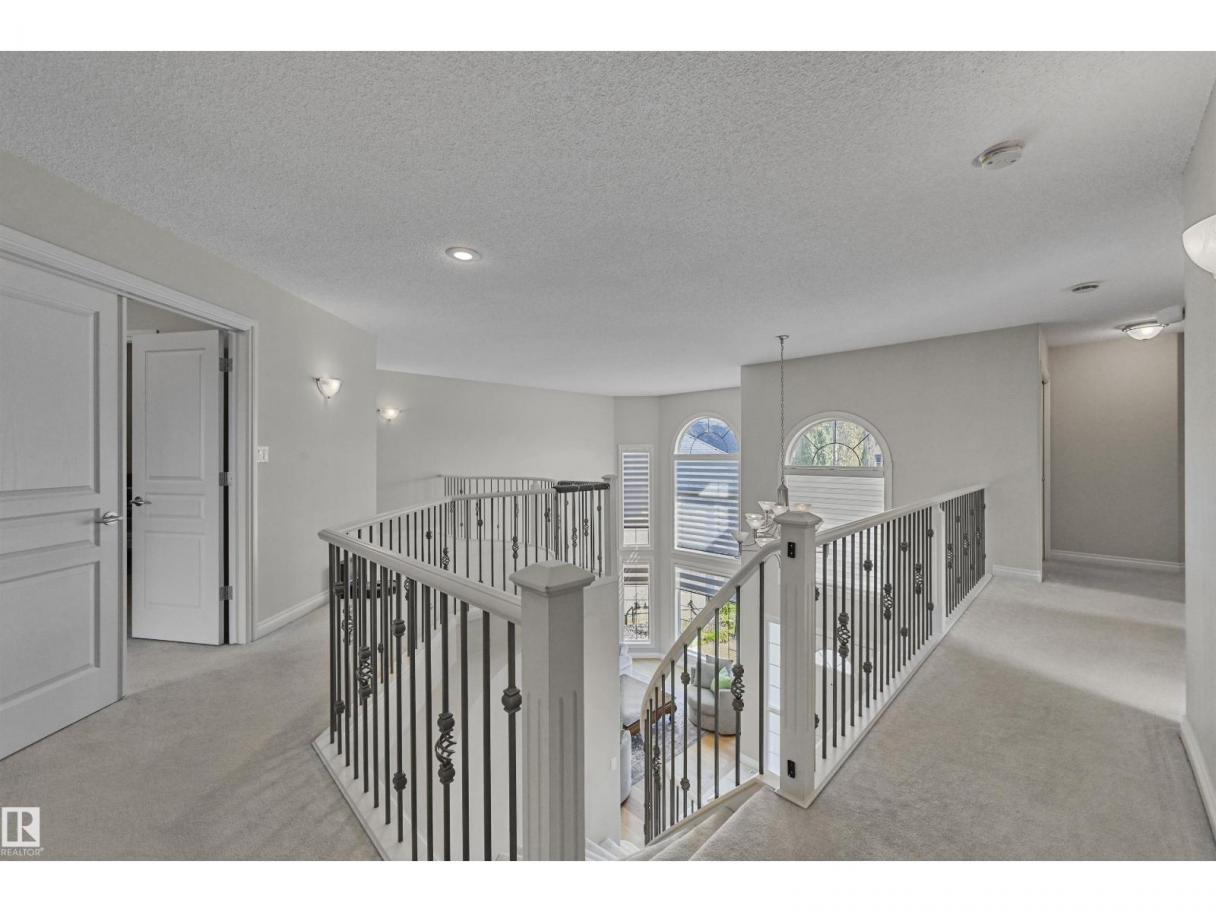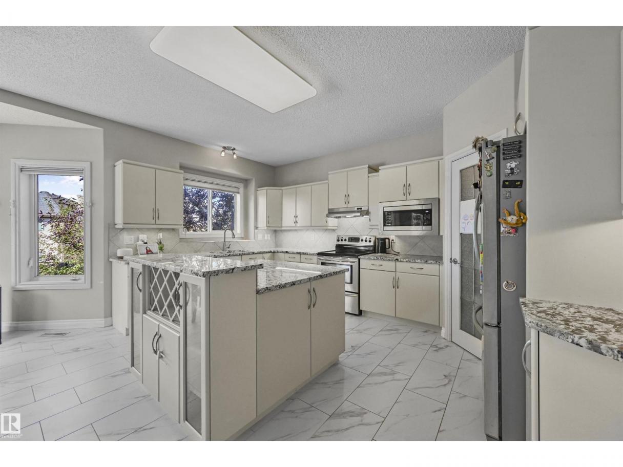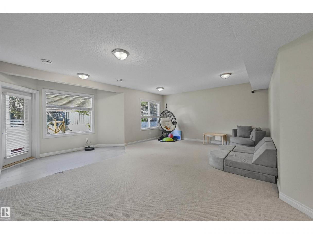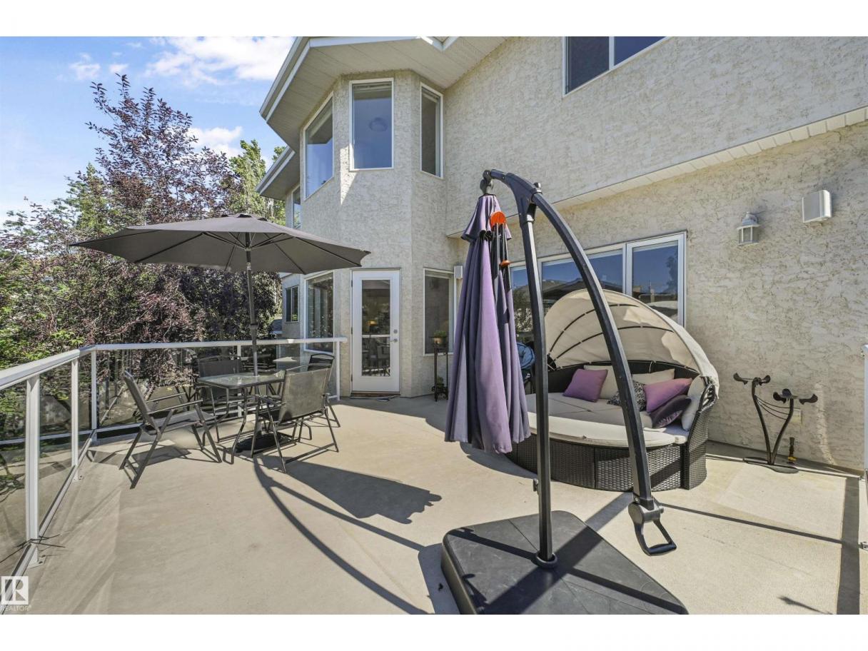 WALKOUT in Terwillegar Gardens w/ 5 BEDROOMS, built by Hillview, cul-de-sac location & close to all amenities. Open concept plan has streams of natural light through the soaring, oversized windows. Enjoy a grand entry w/curved stairs & high ceilings. Neutral contemporary color tones too. MAIN FLR BDRM/DEN w/a FULL BATHRM. Sleek bone white slab cabinets & a huge island. Newer S/S fridge & D/W. Nook opens to the family rm w/wetbar & a massive upper deck w/glass railings. Formal dining & living rm. Upstairs has FIVE LARGE BDRMS. Primary suite boasts a beautiful ensuite, fireplace & W/I closet. F/Fin WALKOUT bsmt includes a Games area, rec rm w/ fireplace & full bthrm. 2 addtl rooms can be completed for a bedrm & exercise area. Massive 8900sf SW pie yard w/mature trees for privacy. Plus huge upper deck. Oversized double garage 22X26. Upgrades: AC (2024), NEW engineered hardwood & tile, NEW granite & quartz counters, 2024 Bathroom updates, new washer/dryer, irrigation system, some blinds updated & more! (id:6769)