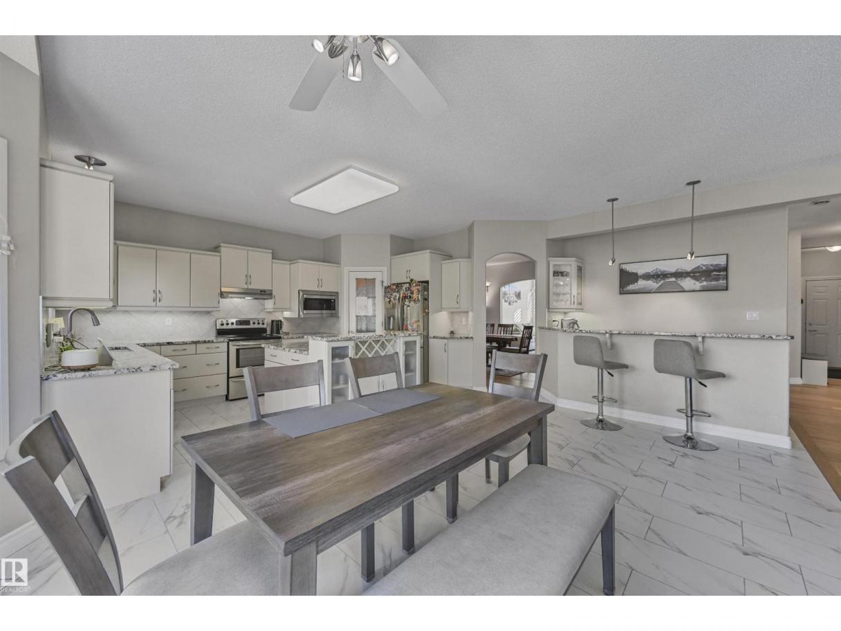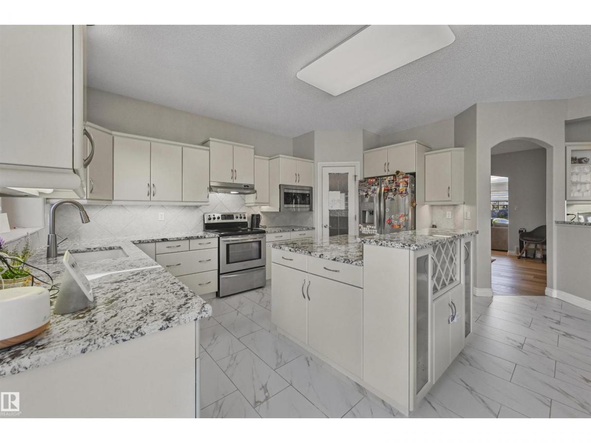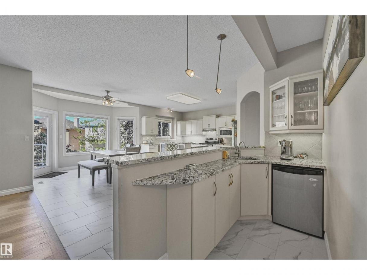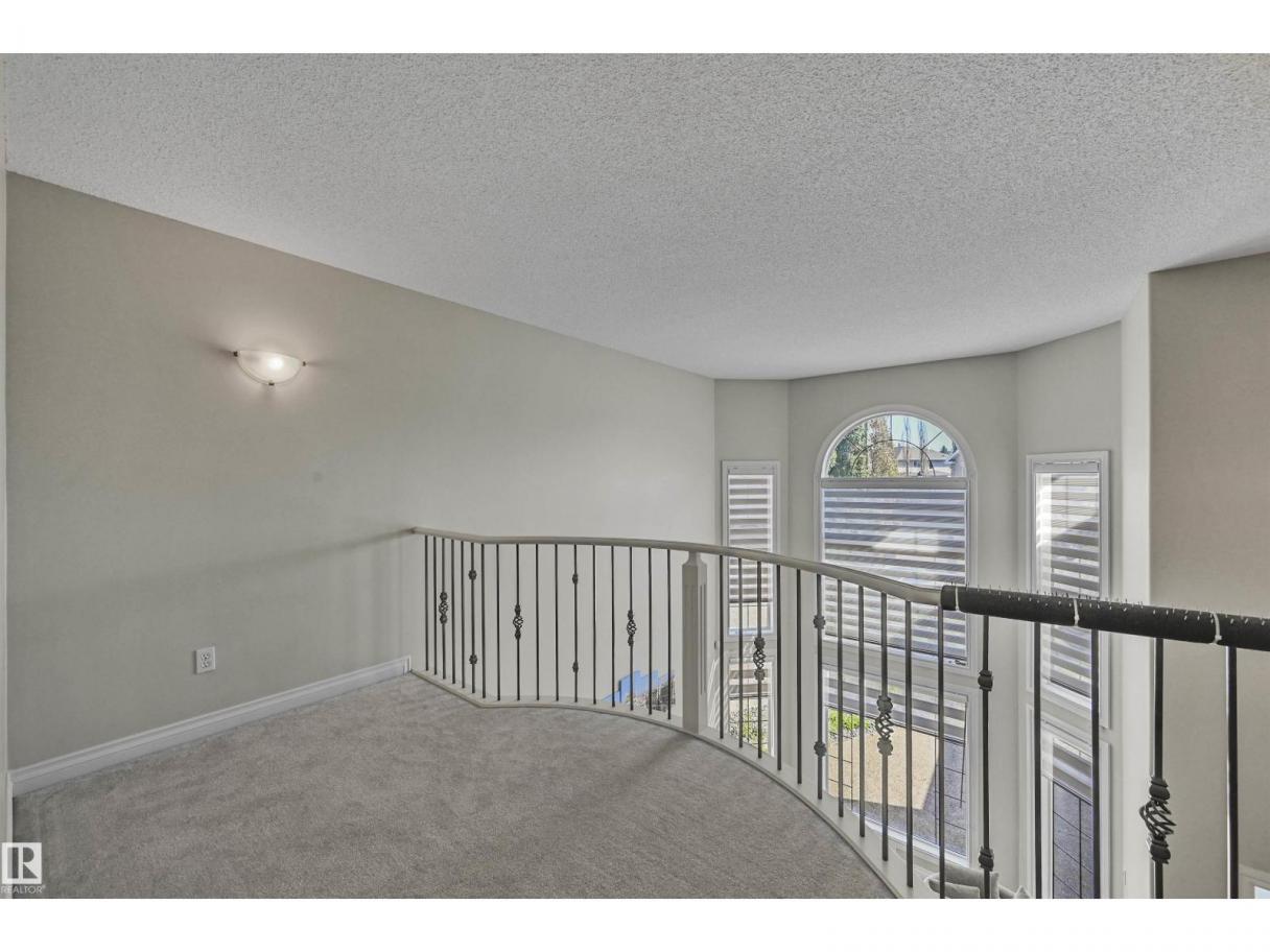 WALKOUT in Terwillegar Gardens w/ 5 BEDROOMS, built by Hillview, cul-de-sac location & close to all amenities. Open concept plan has streams of natural light through the soaring, oversized windows. Enjoy a grand entry w/curved stairs & high ceilings. Neutral contemporary color tones too. MAIN FLR BDRM/DEN w/a FULL BATHRM. Sleek bone white slab cabinets & a huge island. Newer S/S fridge & D/W. Nook opens to the family rm w/wetbar & a massive upper deck w/glass railings. Formal dining & living rm. Upstairs has FIVE LARGE BDRMS. Primary suite boasts a beautiful ensuite, fireplace & W/I closet. F/Fin WALKOUT bsmt includes a Games area, rec rm w/ fireplace & full bthrm. 2 addtl rooms can be completed for a bedrm & exercise area. Massive 8900sf SW pie yard w/mature trees for privacy. Plus huge upper deck. Oversized double garage 22X26. Upgrades: AC (2024), NEW engineered hardwood & tile, NEW granite & quartz counters, 2024 Bathroom updates, new washer/dryer, irrigation system, some blinds updated & more! (id:6769)
