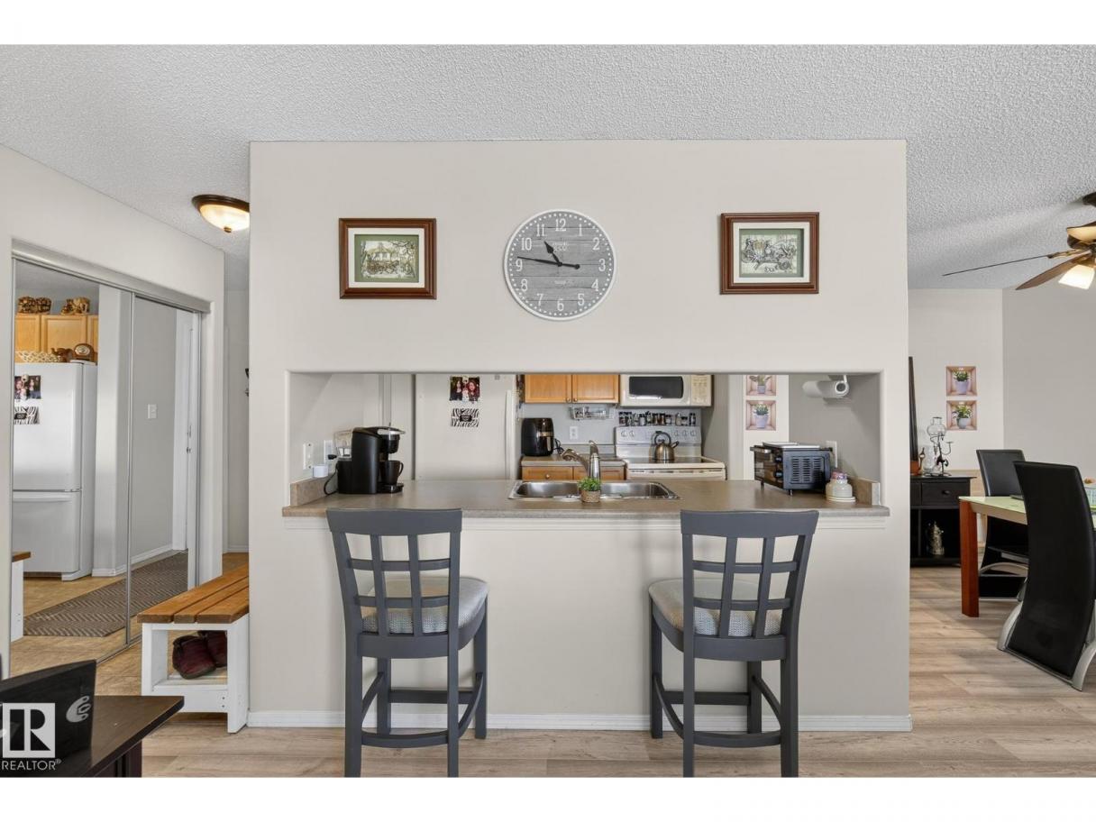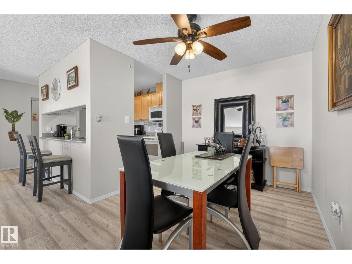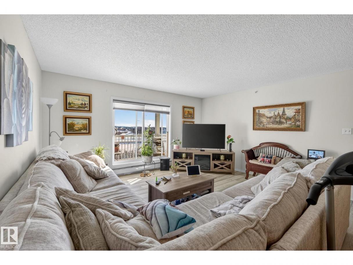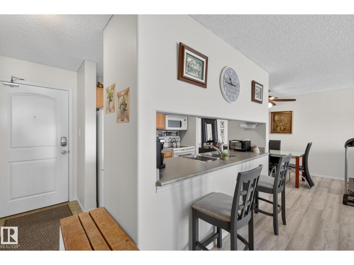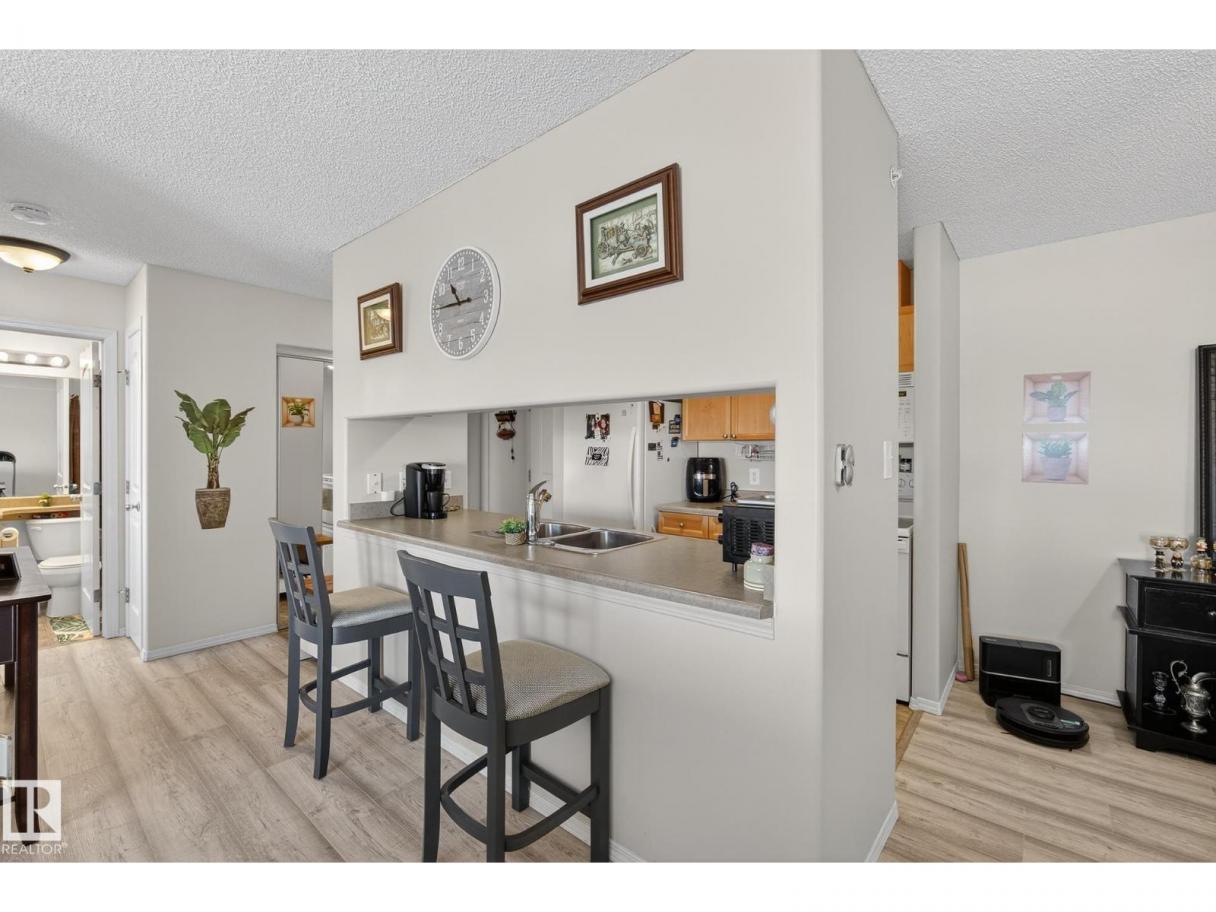 Welcome to top floor living at its best! Featuring 1 bedroom and 1 bathroom this unit is well sized at 751 sq ft. It holds a galley style kitchen with lots of cupboard space, and fills up with morning sunlight from the east facing balcony windows and patio door. With a LARGE living room and ample dedicated dining space this apartment truly feels like a home. New vinyl plank has been professionally laid down throughout. This unit features in suite laundry with a new washer and dryer that have been installed and are held in a large storage room. Included in the condo fees, is access to the fitness center across the parking lot in building 50! This property is in great proximity to Sherwood Park via highway access and has great walkability to public transportation within the city. (id:6769)