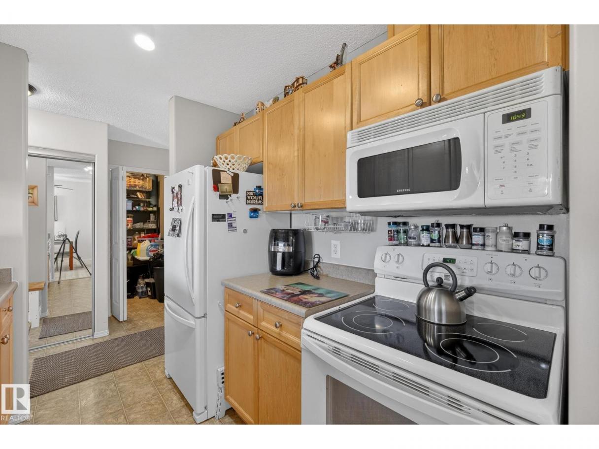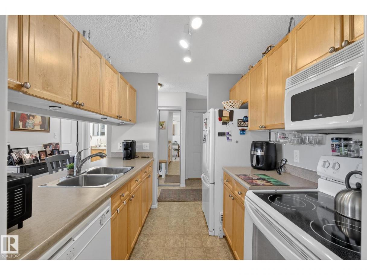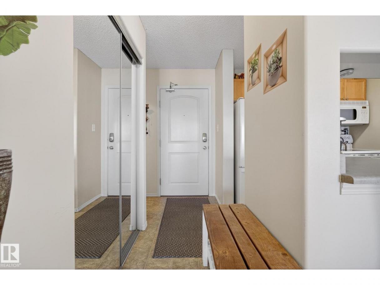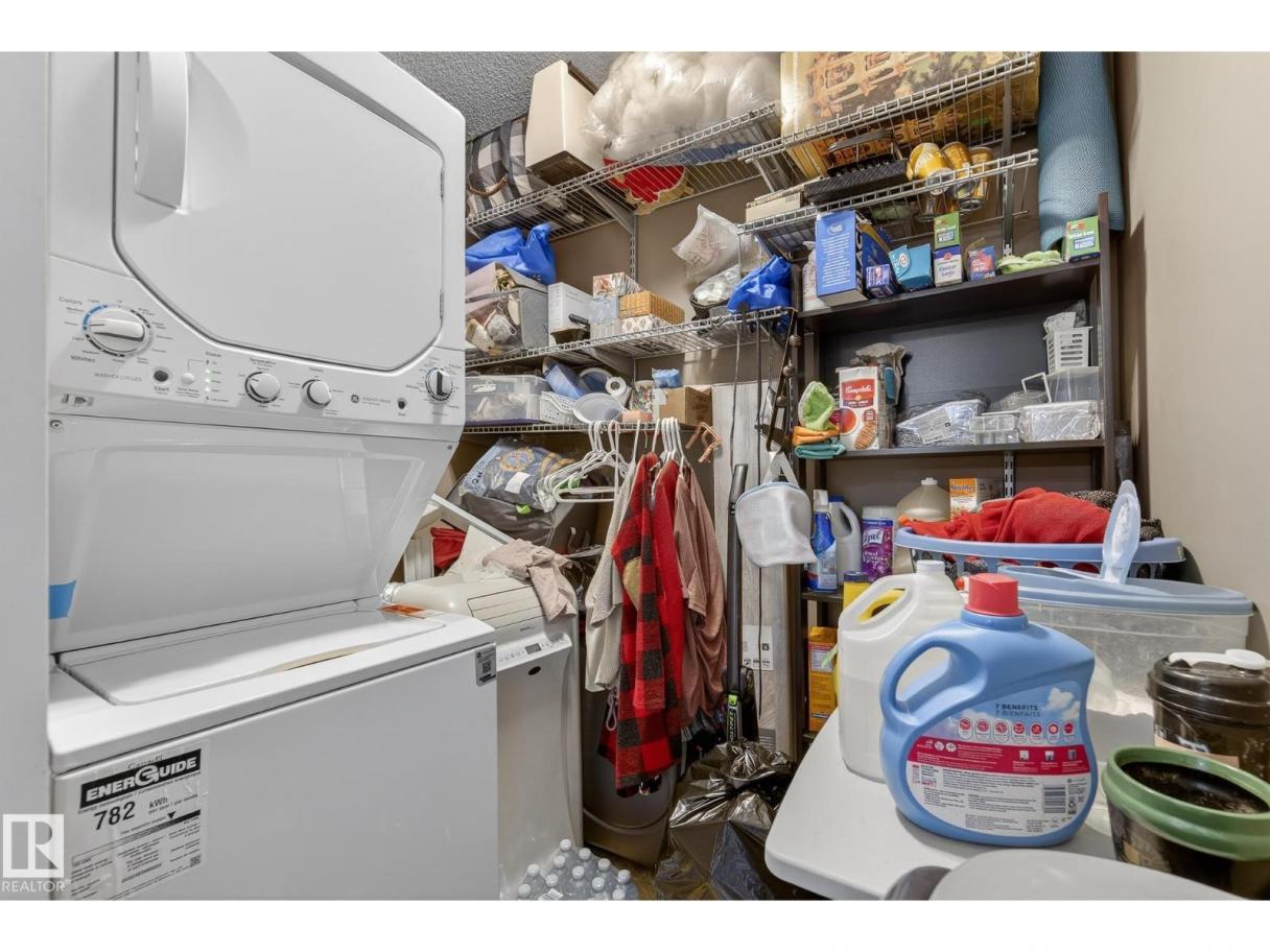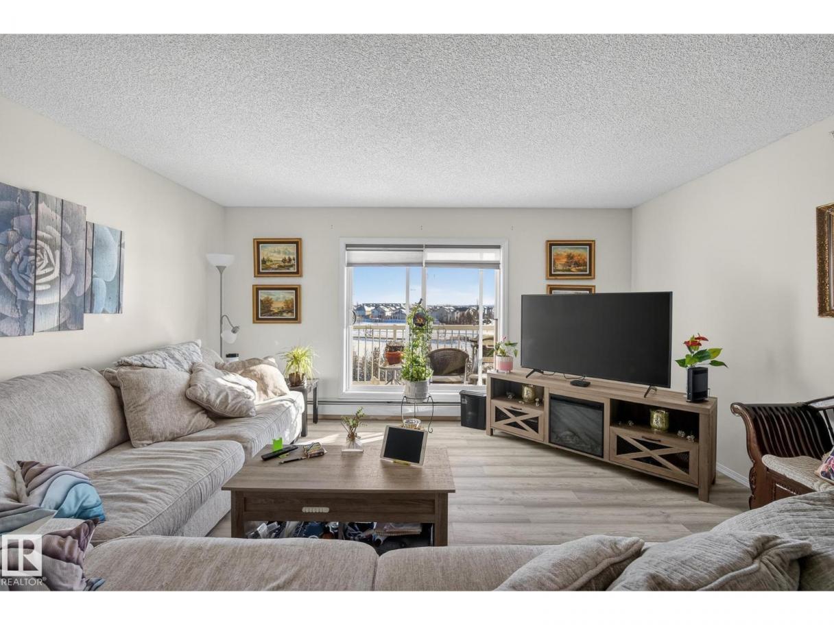 Welcome to top floor living at its best! Featuring 1 bedroom and 1 bathroom this unit is well sized at 751 sq ft. It holds a galley style kitchen with lots of cupboard space, and fills up with morning sunlight from the east facing balcony windows and patio door. With a LARGE living room and ample dedicated dining space this apartment truly feels like a home. New vinyl plank has been professionally laid down throughout. This unit features in suite laundry with a new washer and dryer that have been installed and are held in a large storage room. Included in the condo fees, is access to the fitness center across the parking lot in building 50! This property is in great proximity to Sherwood Park via highway access and has great walkability to public transportation within the city. (id:6769)