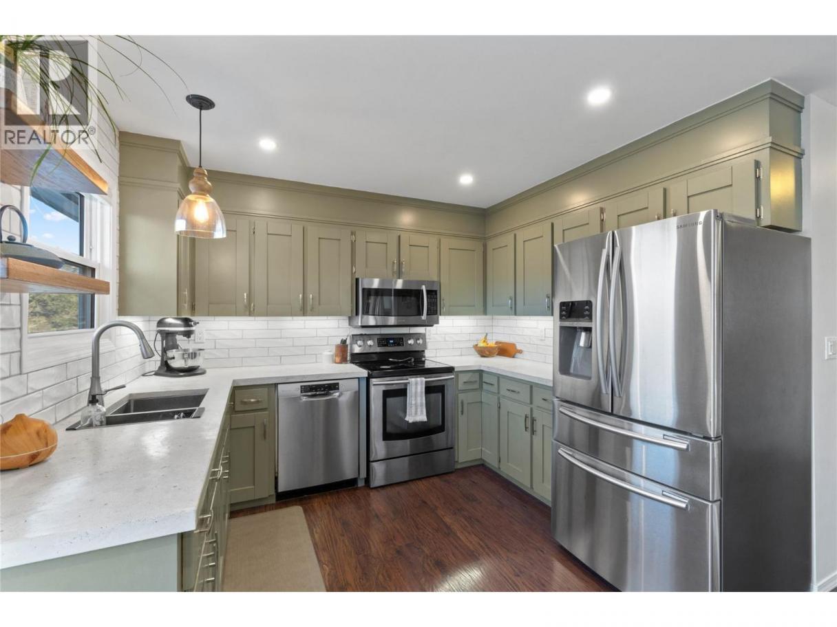 Beautiful Rancher w/ WO Basement in JH Community. Perfectly positioned on a view lot that enjoys sunshine all year round. Backing onto grn space w/ sweeping panoramic views, this home offers both tranquility & convenience. A short walk to JR Elementary, dog park, family park & local store. Step inside to a spacious/inviting foyer that leads into a bright open-concept main level flooded w/ natural light. The well-designed kitchen has been tastefully updated w/ concrete countertops, new hardware, tile backsplash, fresh paint & SS appliances. A leg pantry + ample cabinetry provide plenty of storage & the kitchen flows easily into the generous dining area perfect for family meals or entertaining. French drs off the lvrm lead to a leg deck that spans entire back of the home ideal for barbecues, gatherings or simply soaking in the stunning views. Enjoy cozy evenings around the gas fireplace w/ custom built-ins. Throughout the main level you'll find updated paint, easy-care laminate flring & thoughtful touches like a custom wine cabinet. 3 brms are located on the main level including a spacious primary suite featuring “his & hers” closets + 3-piece ensuite. A beautifully updated 4-piece main bath includes a deep soaker tub. Downstairs offers even more flexible living space w/ a log rec rm & 2nd gas fireplace, a 4th bedrm w/ a modern ensuite w/ heated tile flrs & a walk-in shower. This level is perfect for teens, guests, or hobbies. Lrg work workshop, a laundry rm & abundant storage. (id:6769)