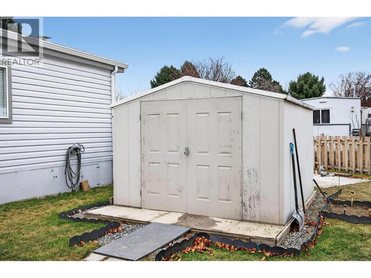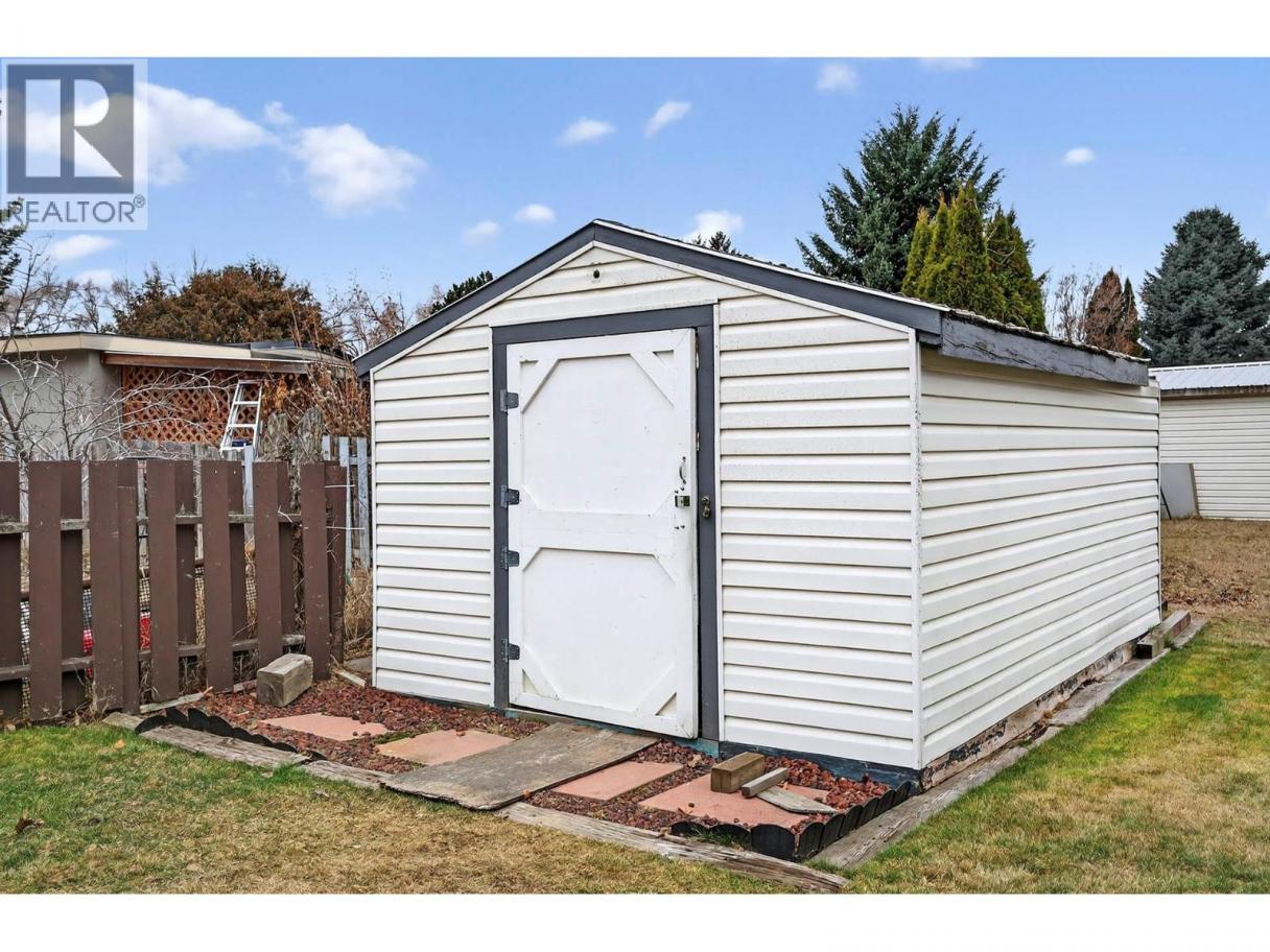 Clean and tidy 1 bedroom 1 bathroom manufactured home in the family section of Brock Estates. Bright living room, dining room, kitchen with large pantry, good sized bedroom, 4 piece main bathroom, 2 dens, great storage, and potential for a second bedroom. Outside has a carport with space for two vehicles, large partially-fenced yard with 2 sheds including one being wired and great for a workshop. Many updates including hot water tank, some windows and flooring. Centrally location within the park and is move-in ready with quick possession possible! (id:6769)